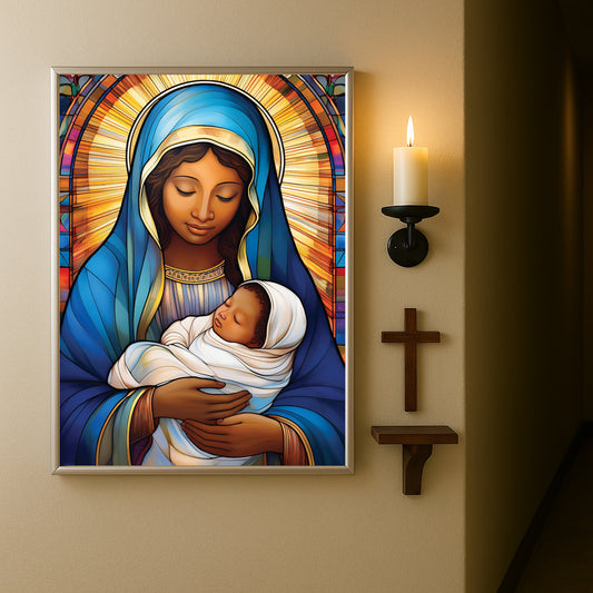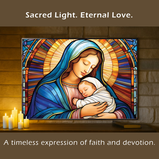 Virgin Mary and Baby Jesus Wall Art – Stained Glass Christian Décor