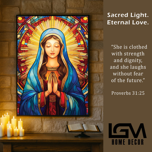 Gentle Mary in Prayer, Stained Glass Wall Art – Holy Virgin Icon