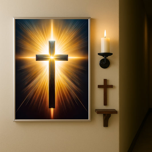 Radiant Cross Wall Art – Golden Light Christian Décor