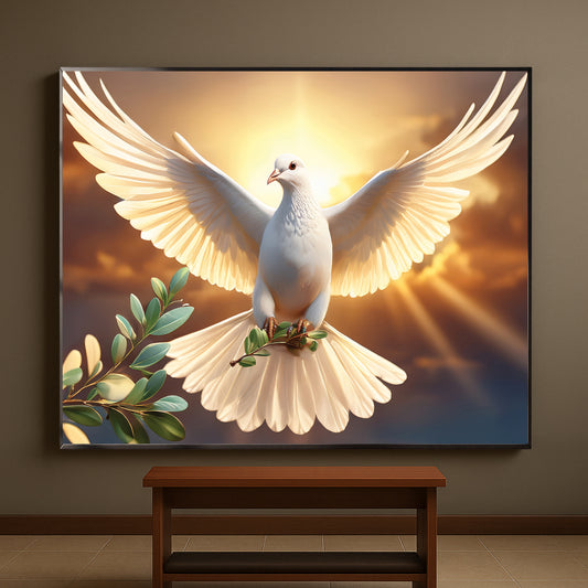 White Dove with Olive Branch – Symbol of Peace & Hope Wall Art