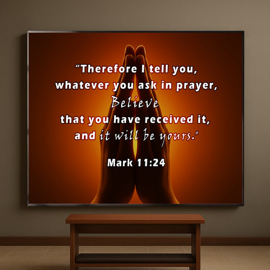 Praying Hands Scripture Wall Art – Mark 11:24 Christian Décor