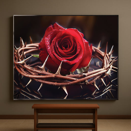 Rose with Crown of Thorns Wall Art – Christian Symbolism Décor