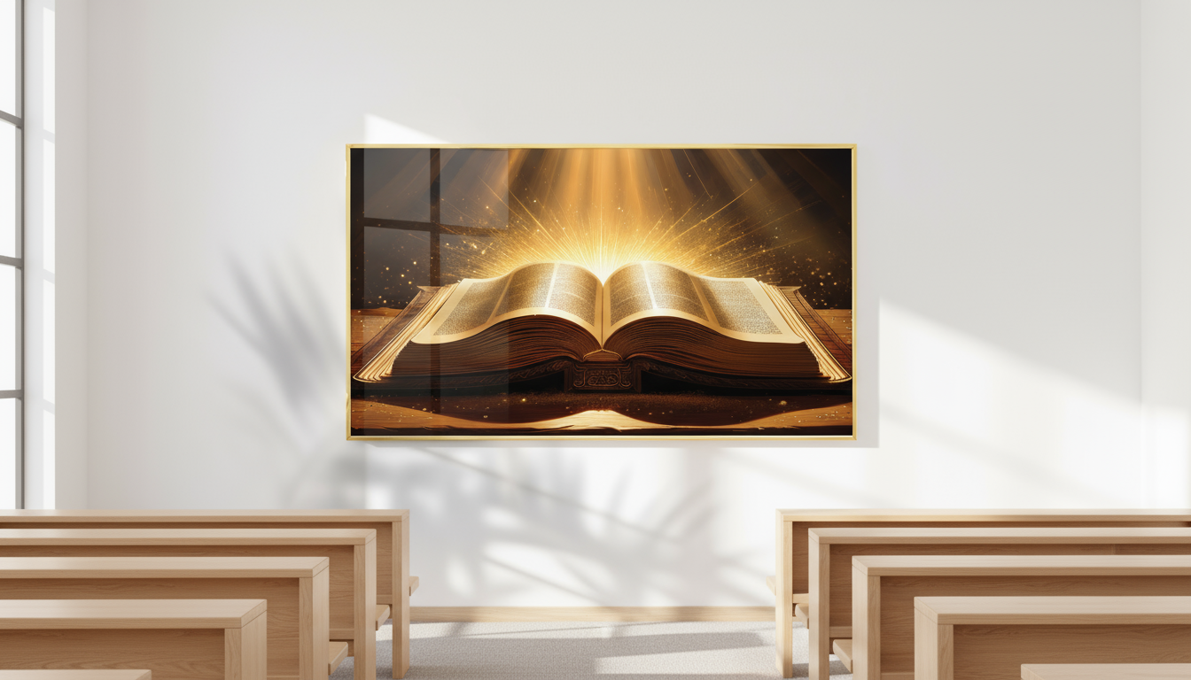 Holy Bible Illuminated Wall Art – Radiant Spiritual Décor