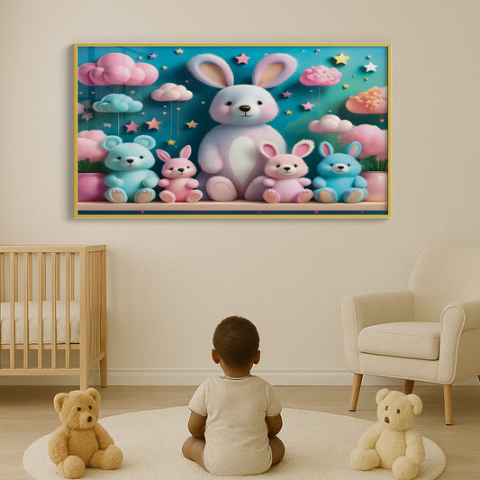 Bunny & Bear Plush Parade – 3D Pastel Nursery Wall Art