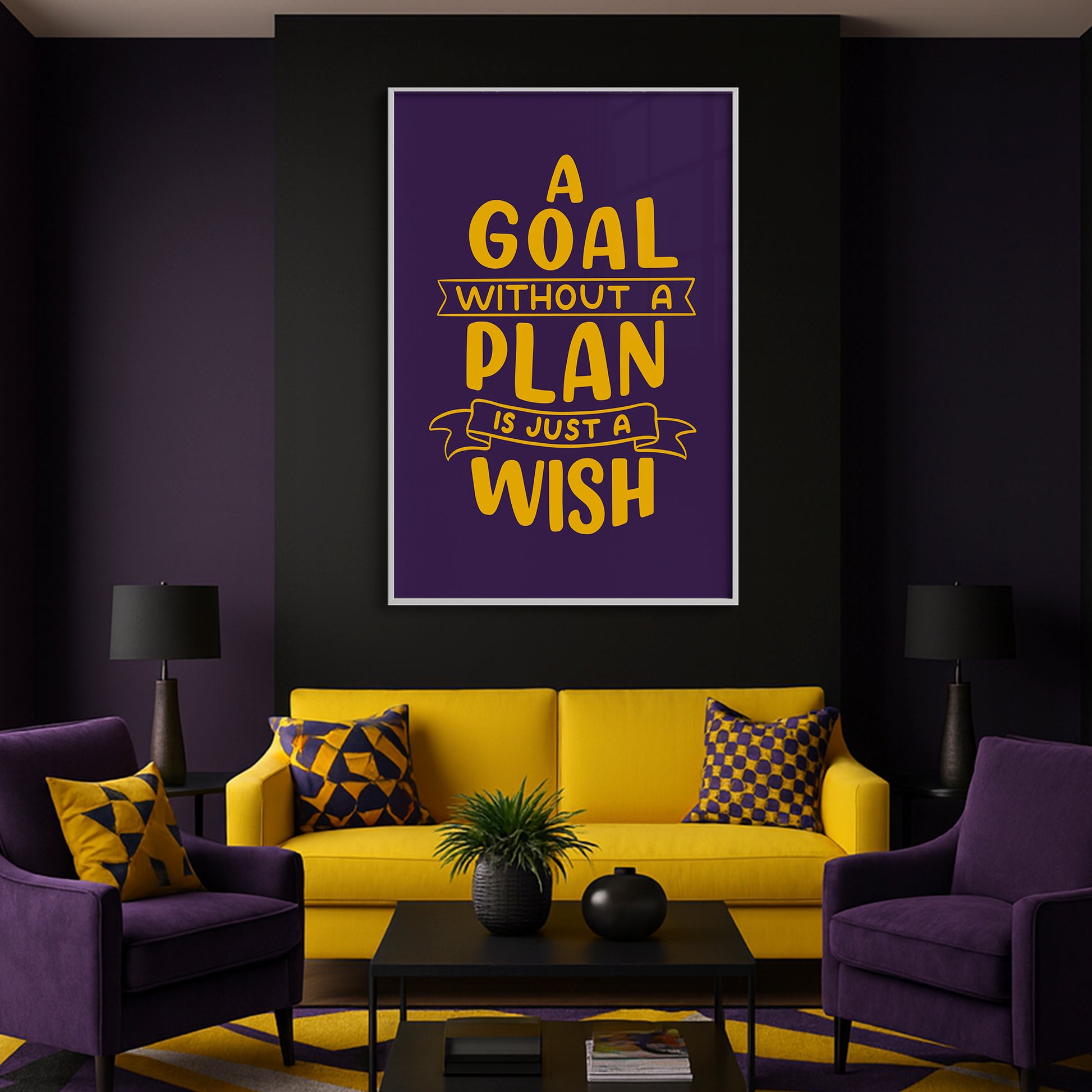 Frame Color: Black / S: 50x70cm / 19x27in / Purple and Yellow