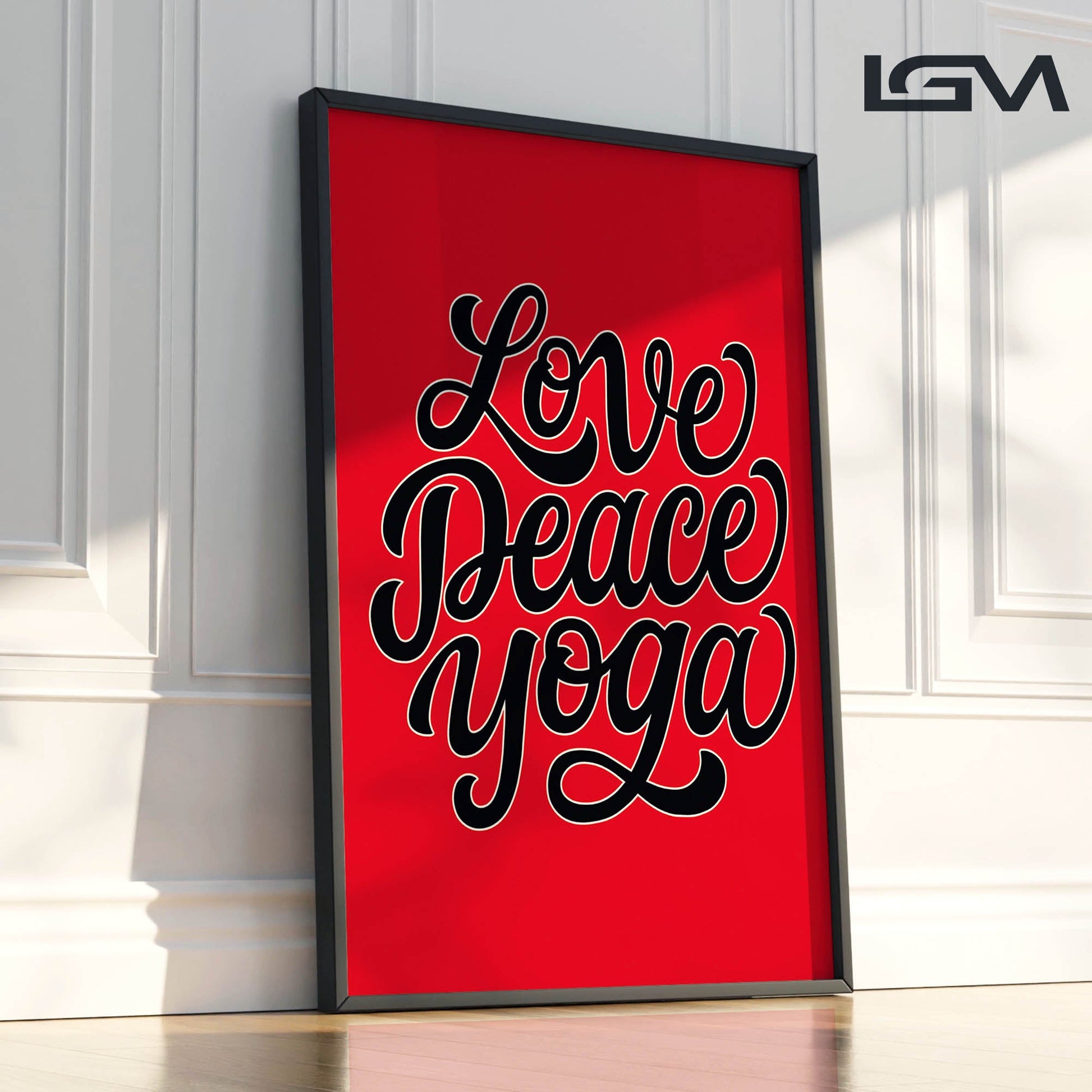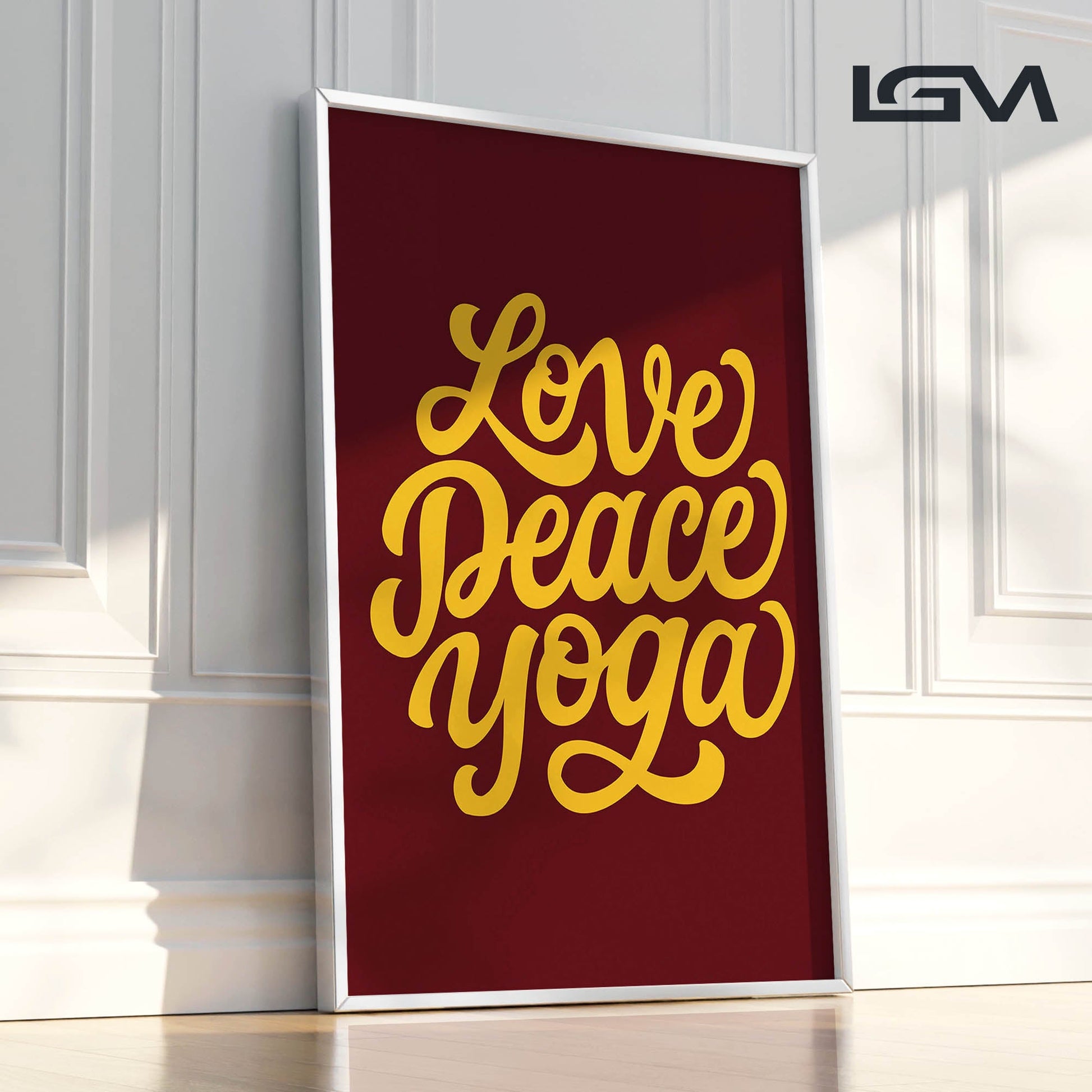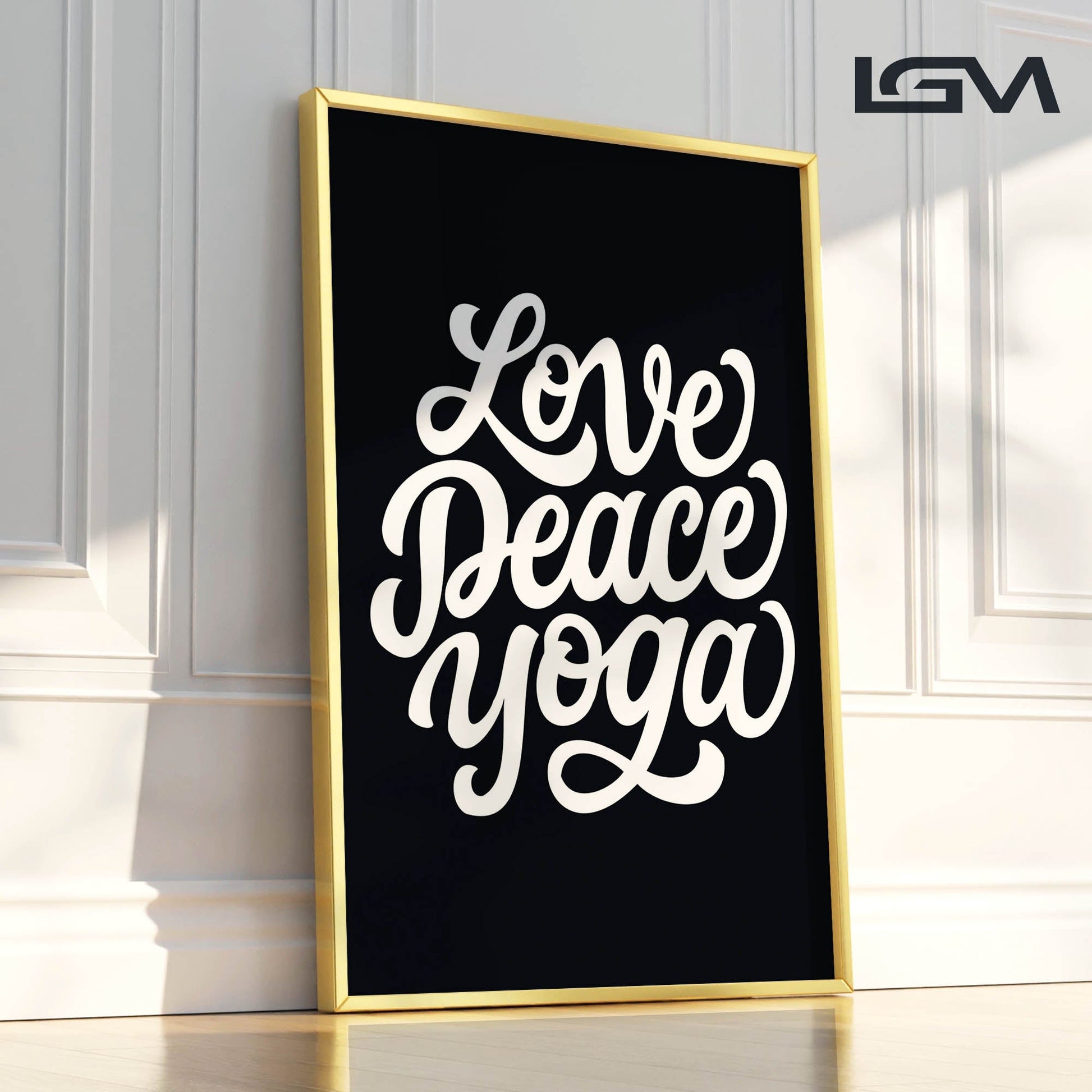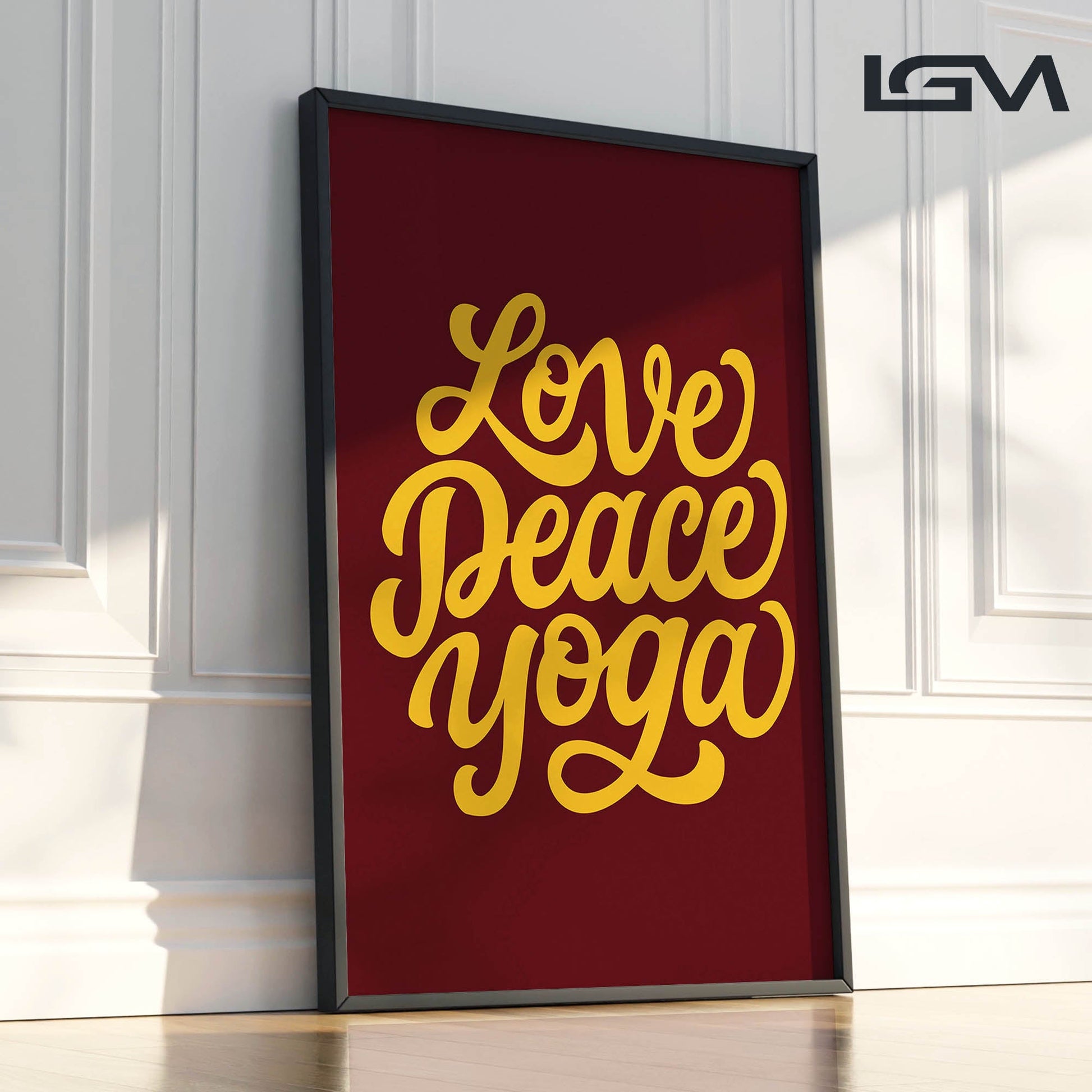 Embrace tranquility and mindfulness with this elegant hand-lettered typography design that embodies the spirit of love, peace, and yoga. Whether you're setting up your meditation corner, yoga studio, or simply creating a peaceful sanctuary at home, this piece adds a calming yet stylish touch to your space.