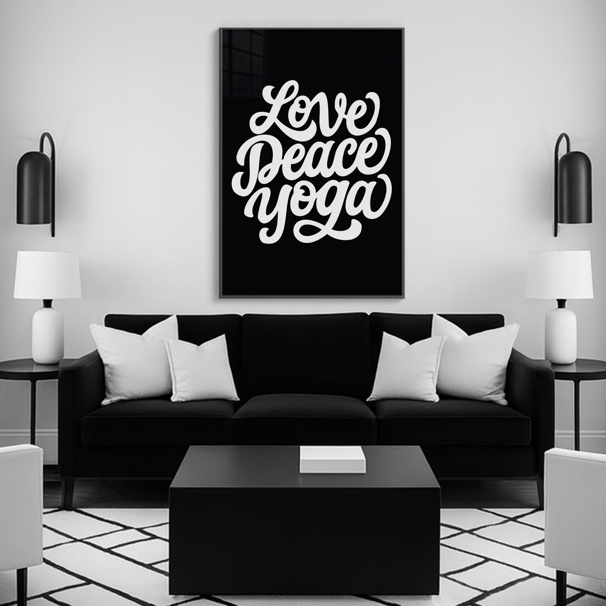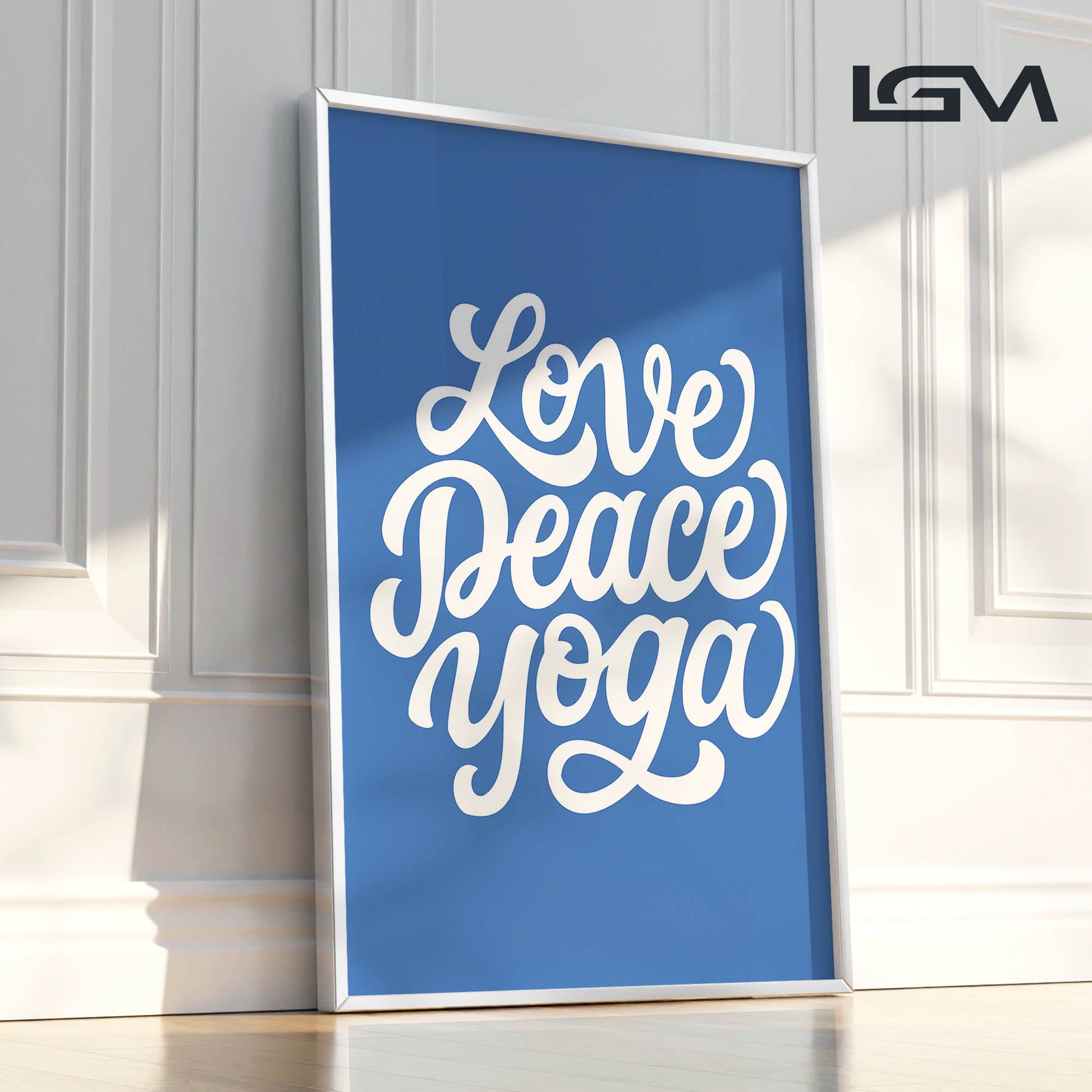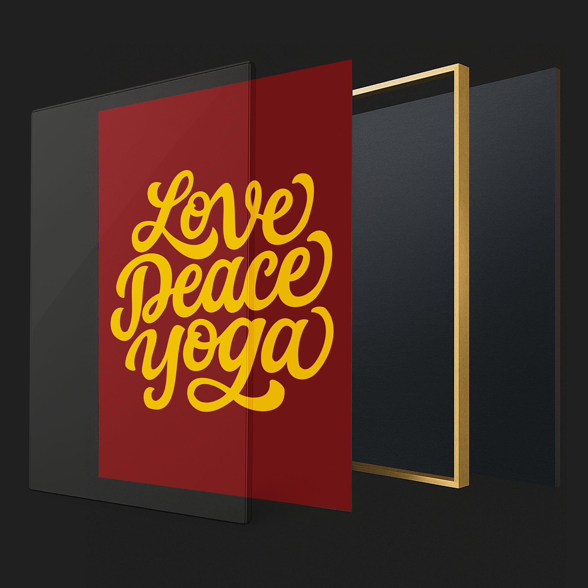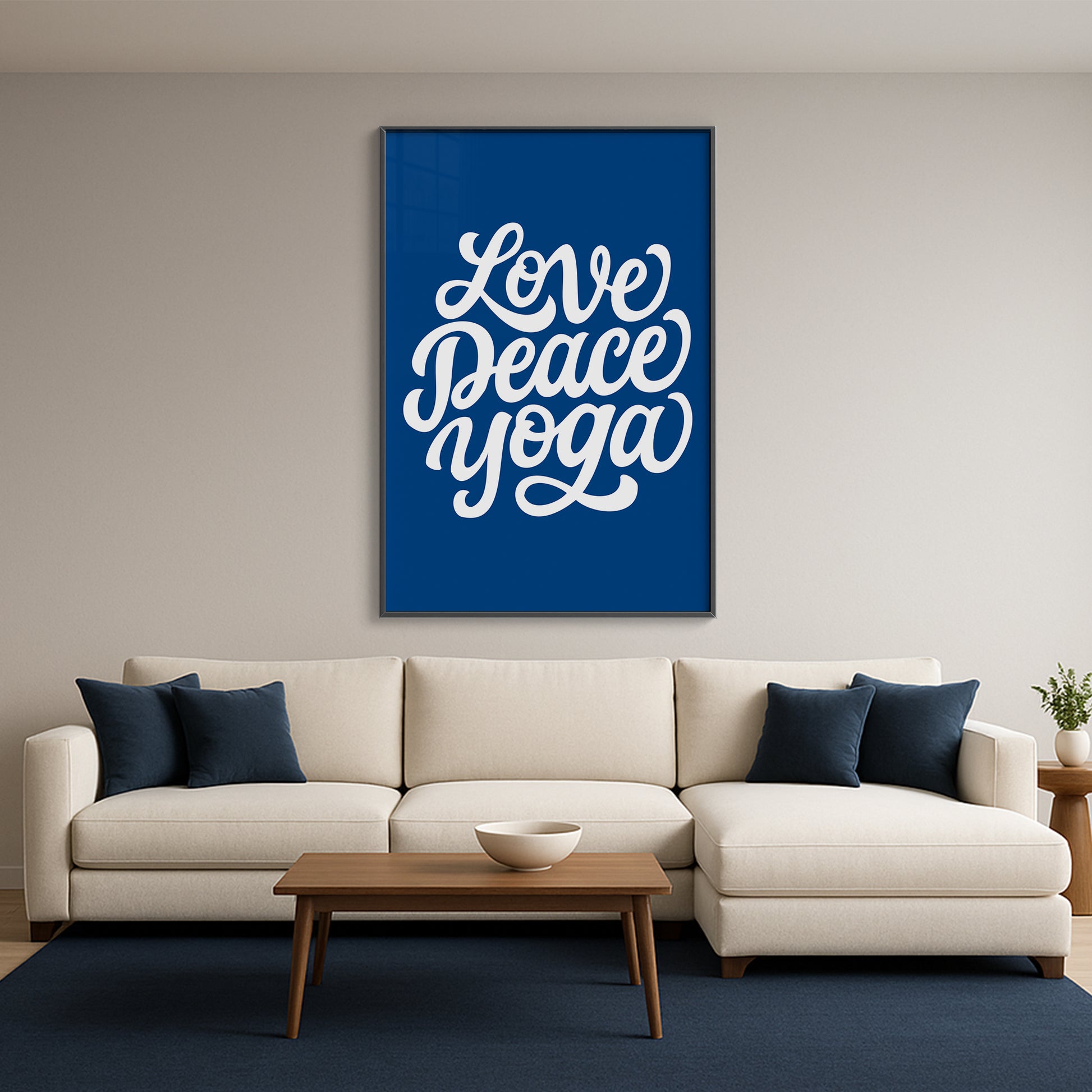 Embrace tranquility and mindfulness with this elegant hand-lettered typography design that embodies the spirit of love, peace, and yoga. Whether you're setting up your meditation corner, yoga studio, or simply creating a peaceful sanctuary at home, this piece adds a calming yet stylish touch to your space.