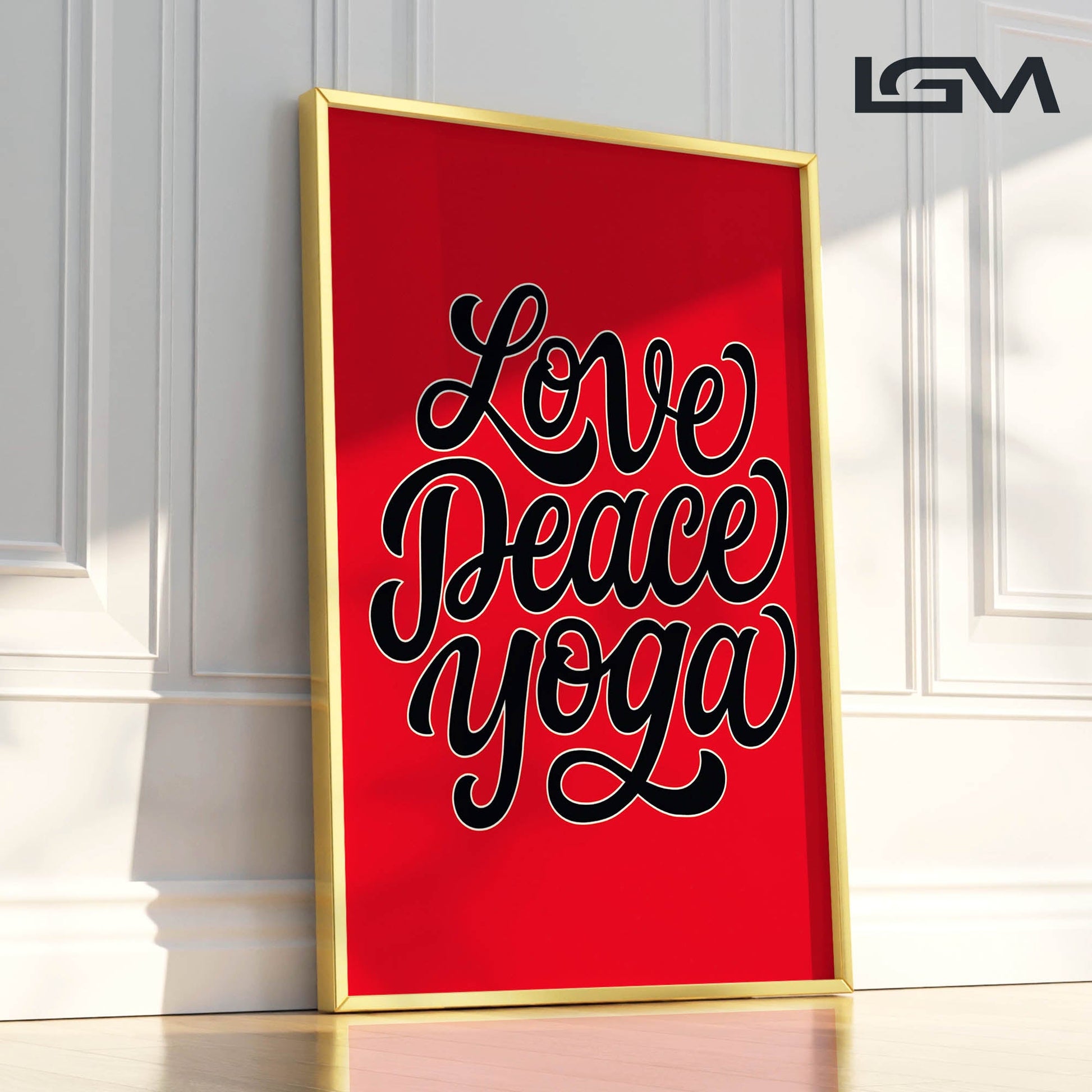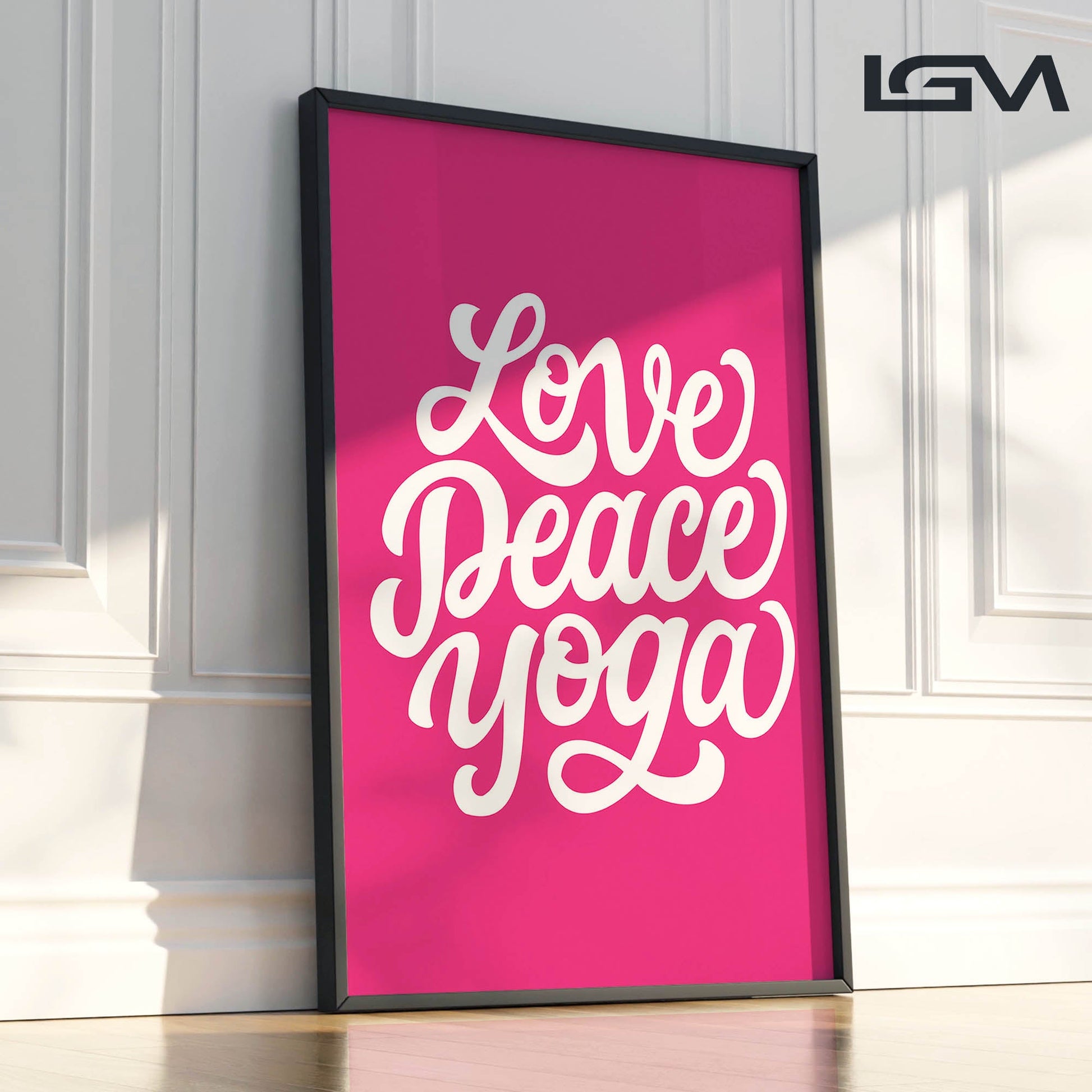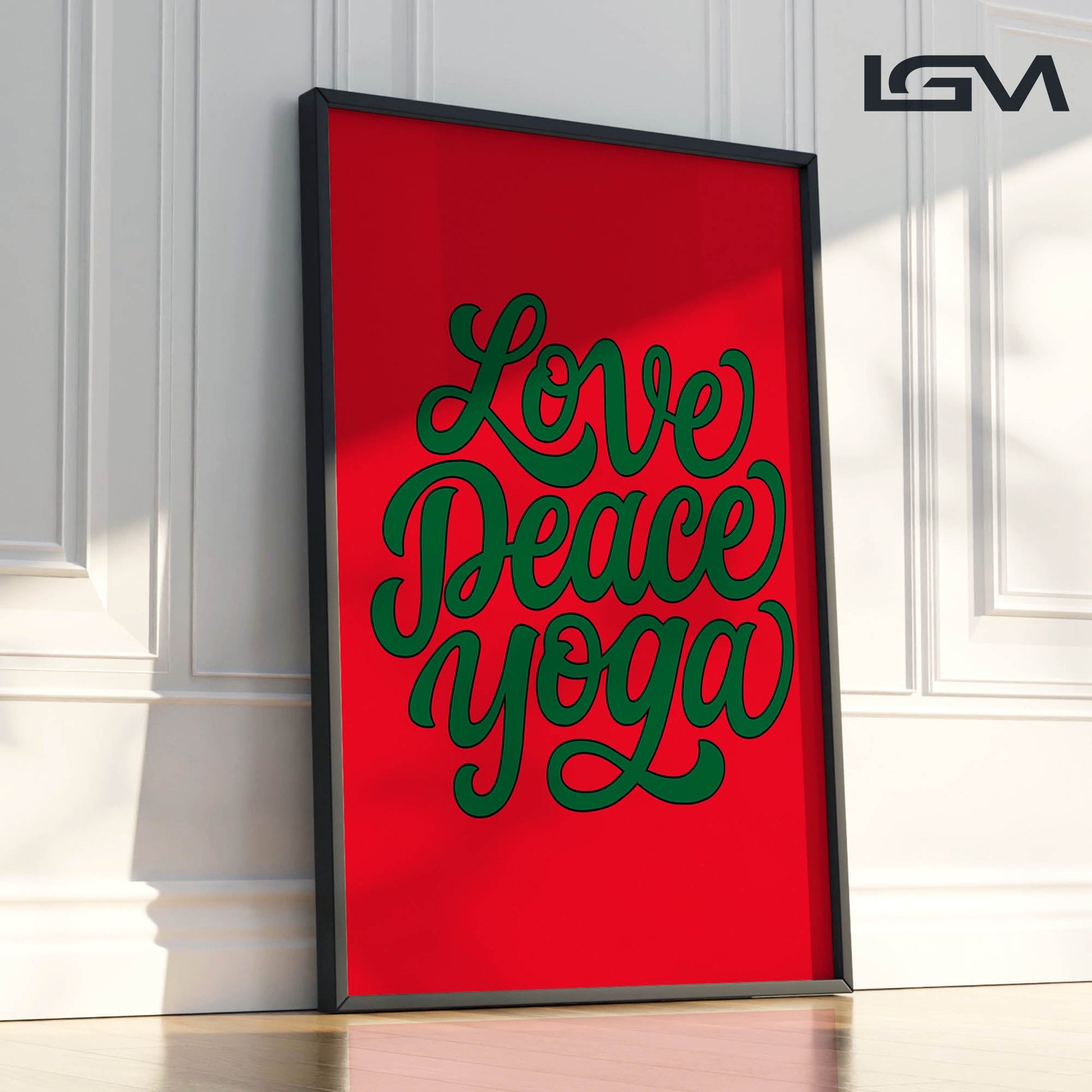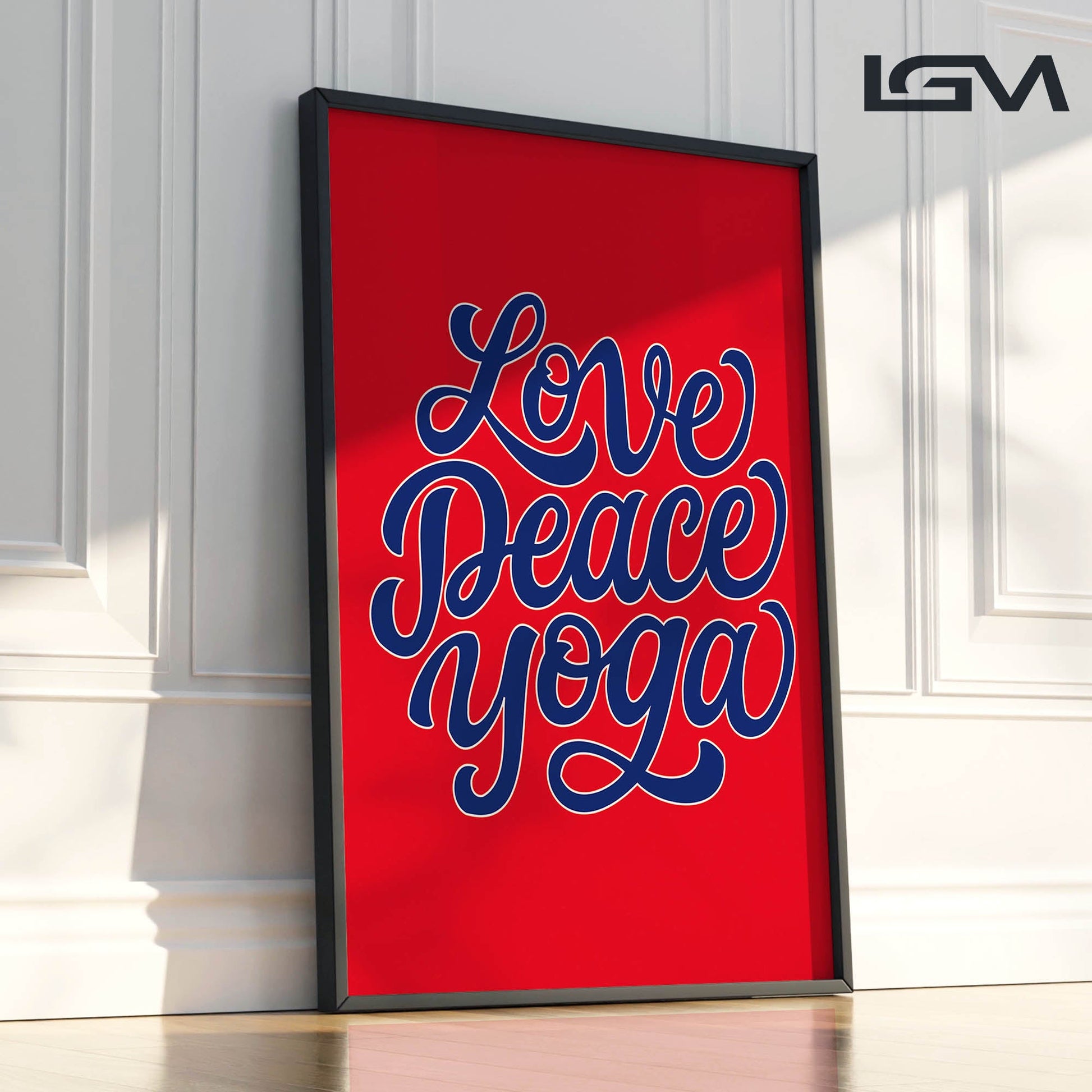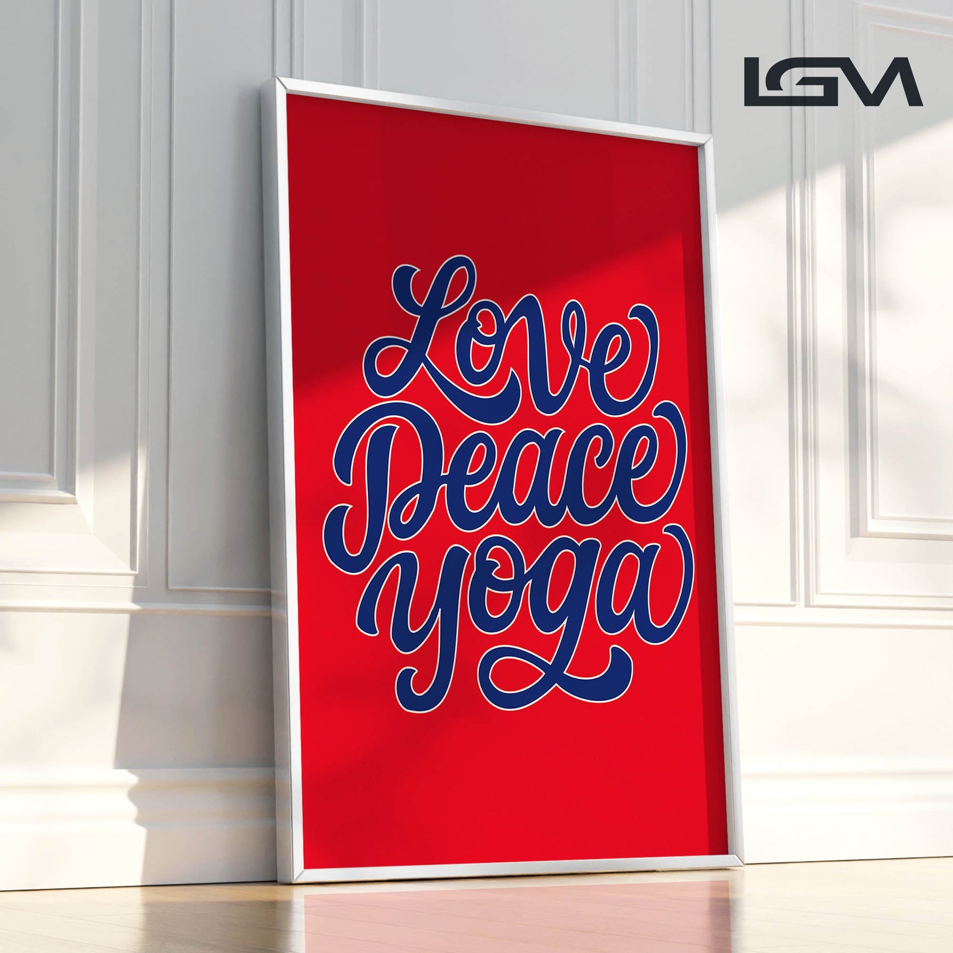 Embrace tranquility and mindfulness with this elegant hand-lettered typography design that embodies the spirit of love, peace, and yoga. Whether you're setting up your meditation corner, yoga studio, or simply creating a peaceful sanctuary at home, this piece adds a calming yet stylish touch to your space.