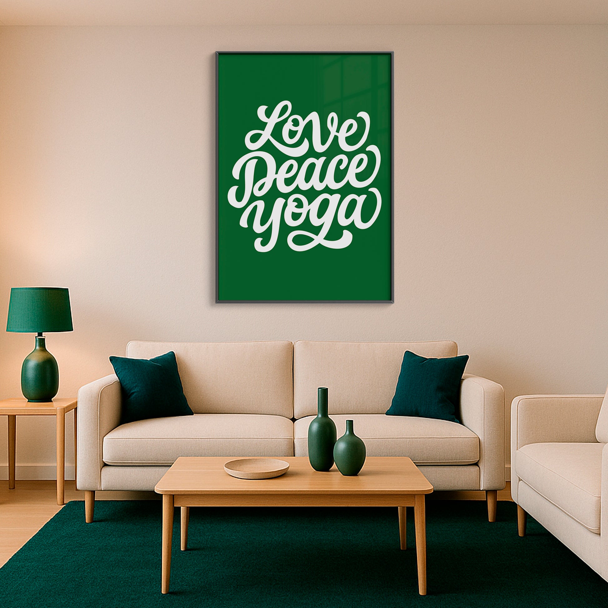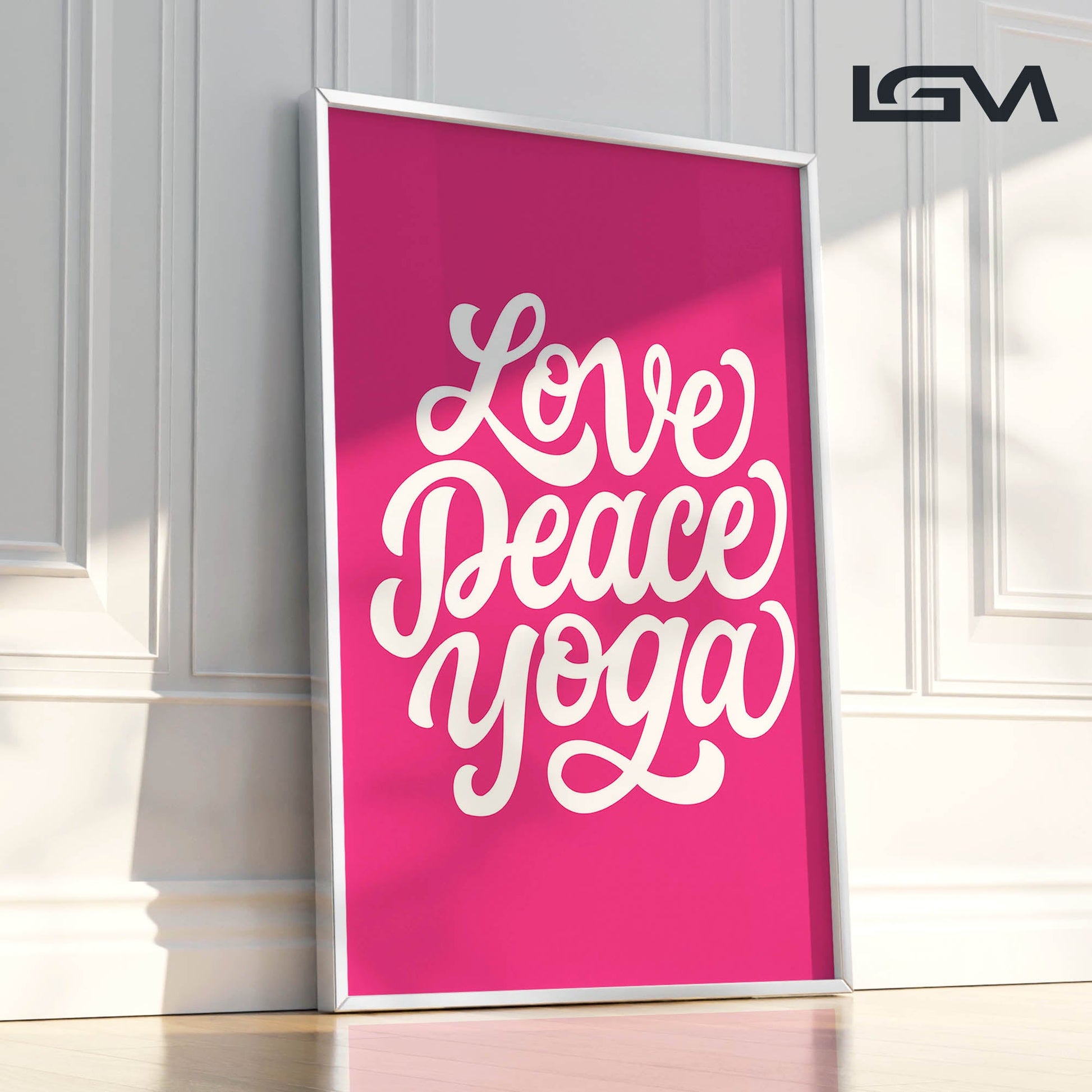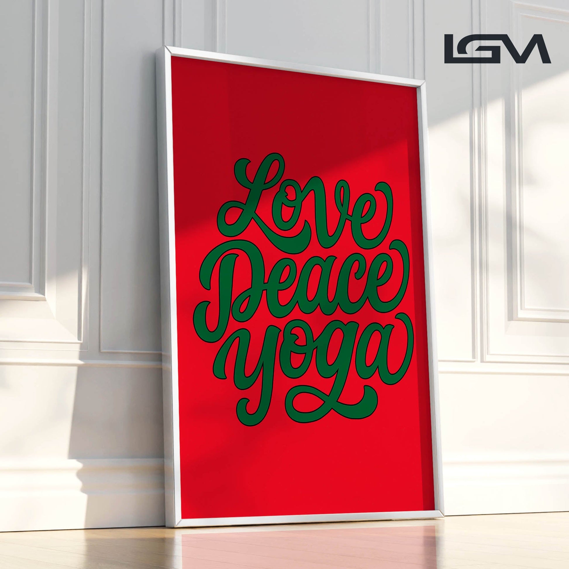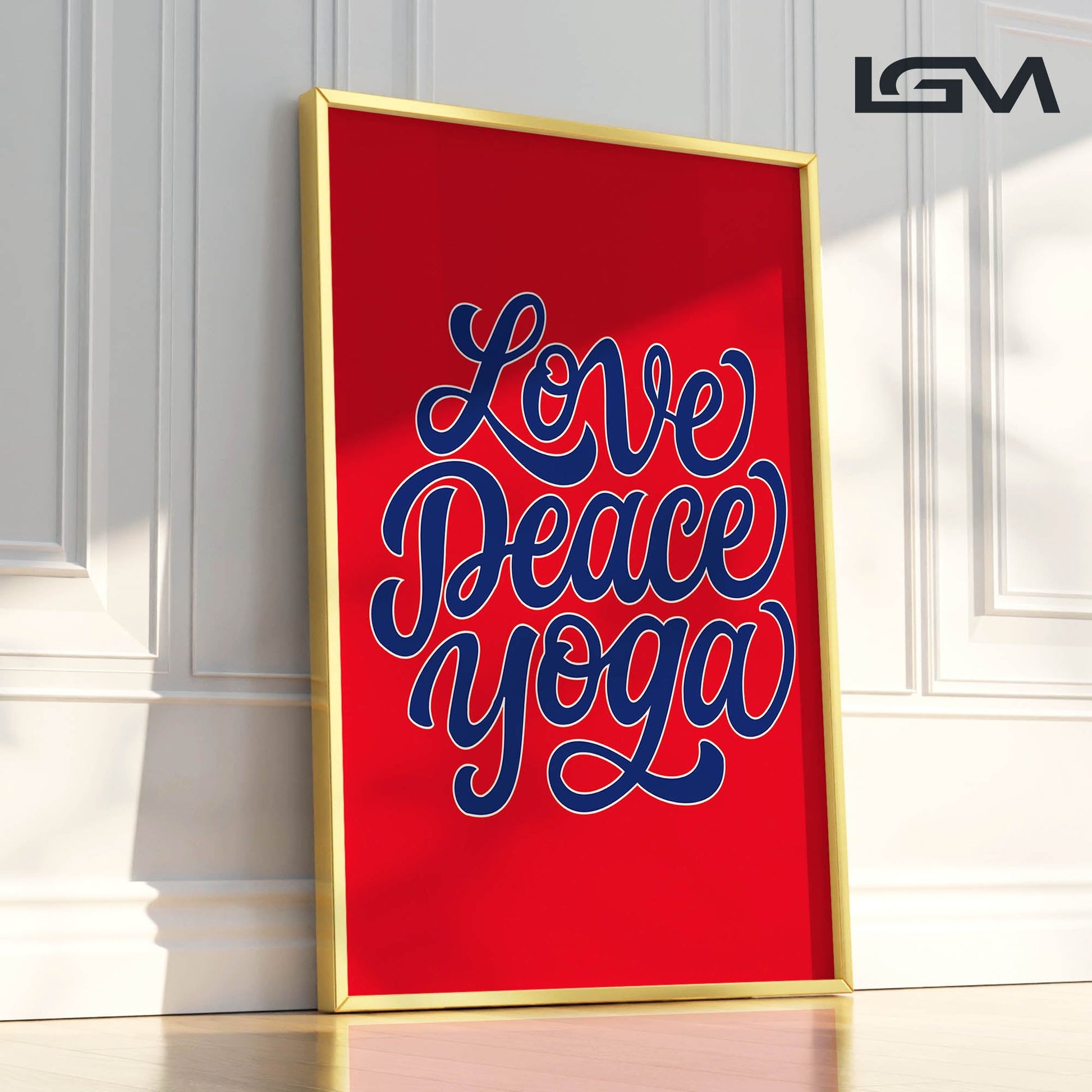 Embrace tranquility and mindfulness with this elegant hand-lettered typography design that embodies the spirit of love, peace, and yoga. Whether you're setting up your meditation corner, yoga studio, or simply creating a peaceful sanctuary at home, this piece adds a calming yet stylish touch to your space.