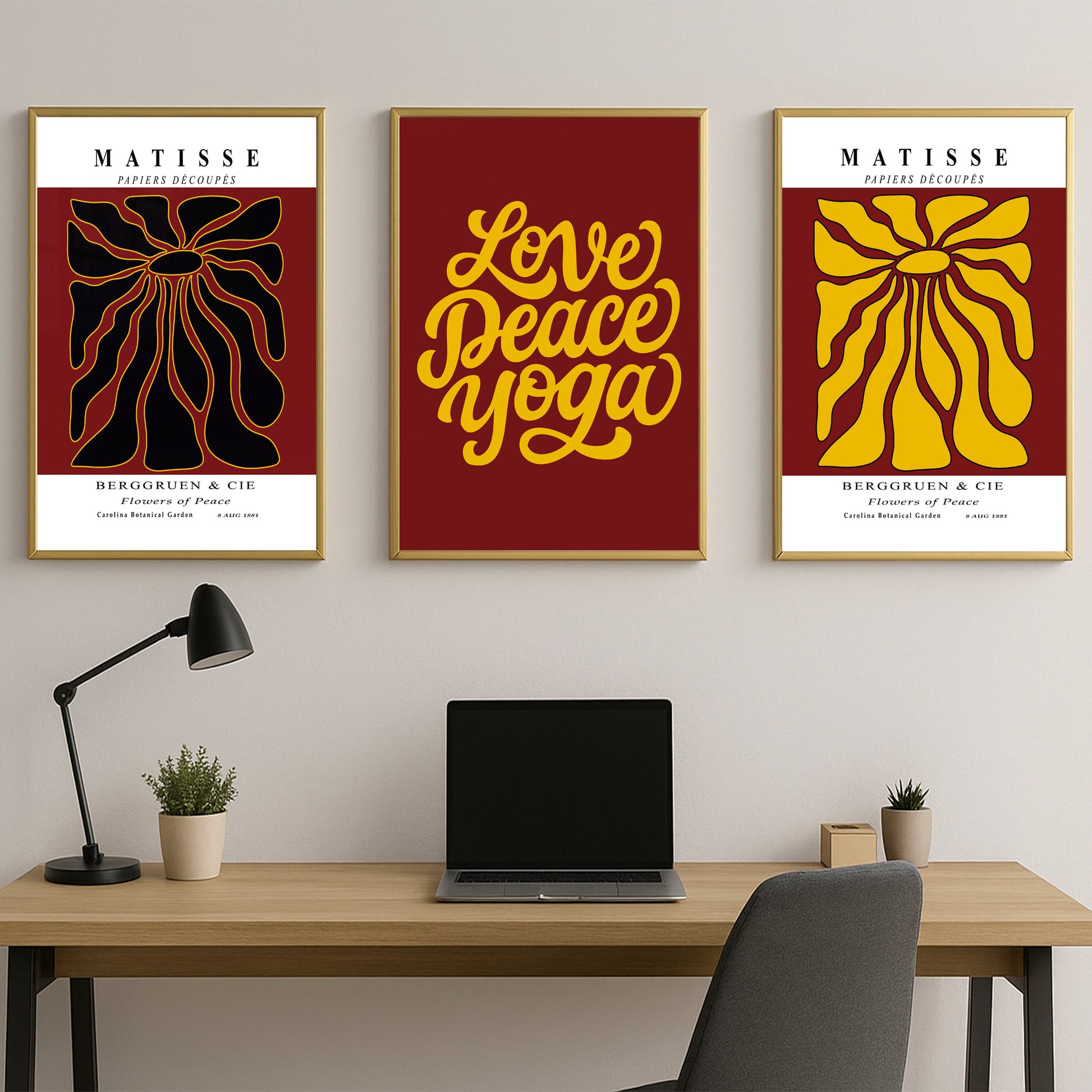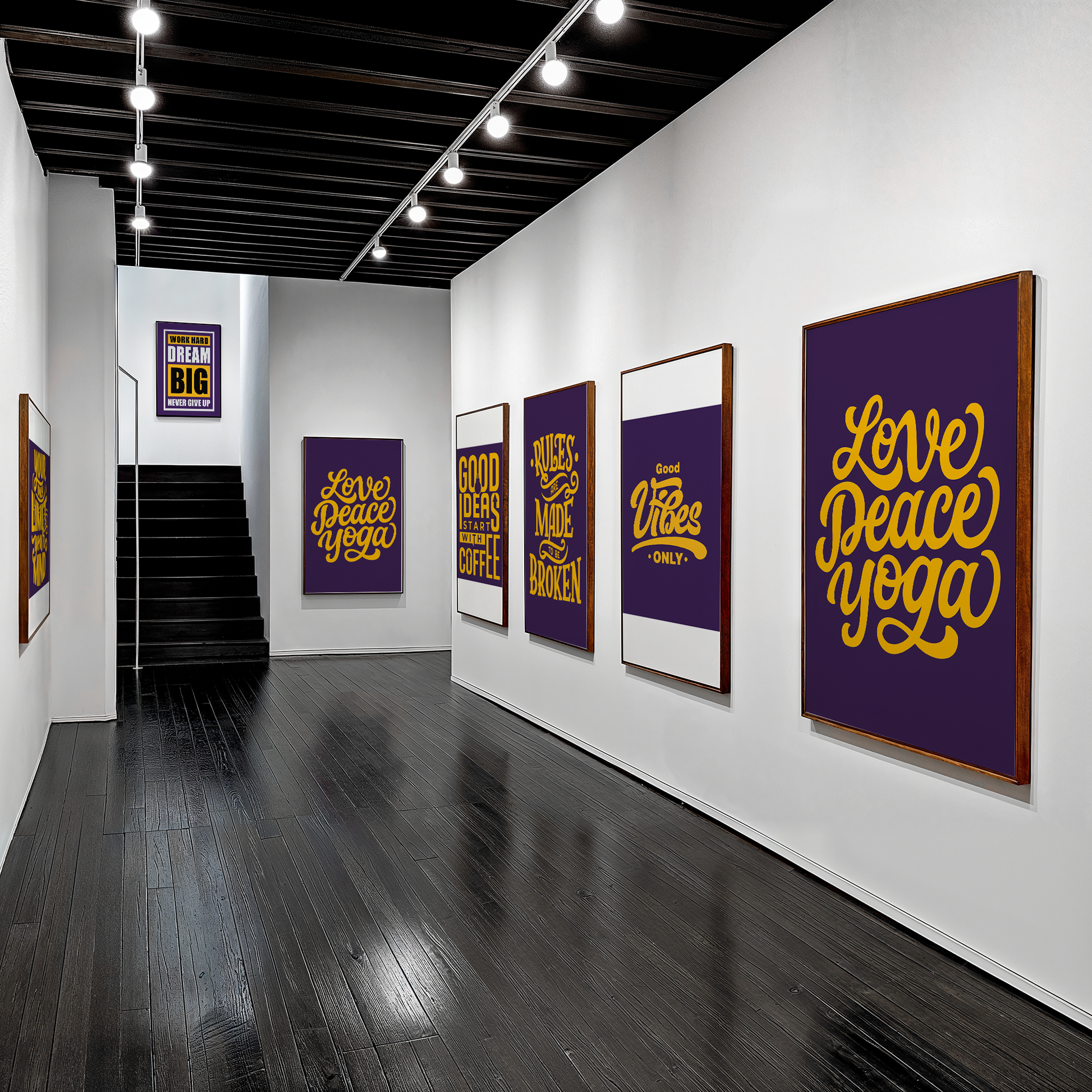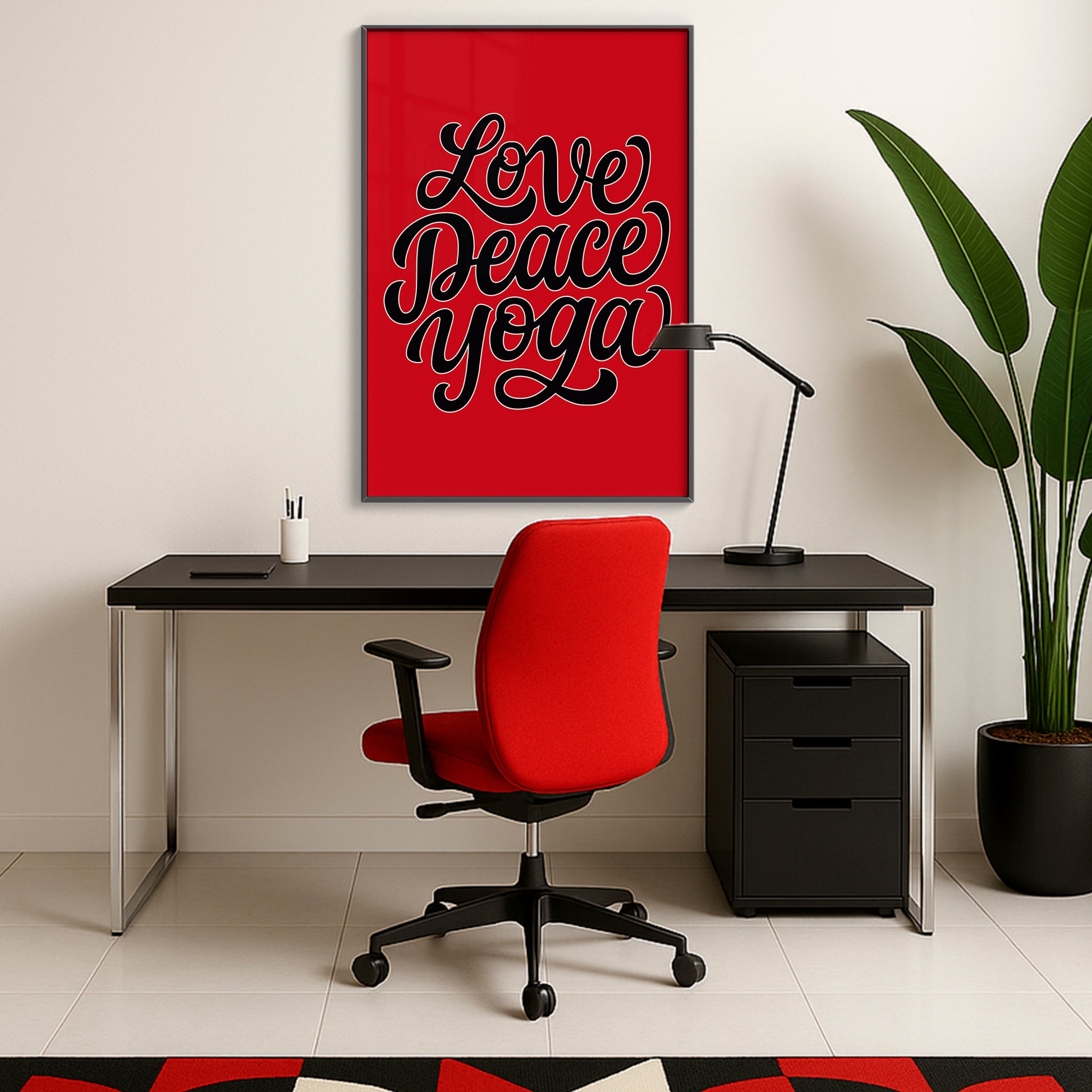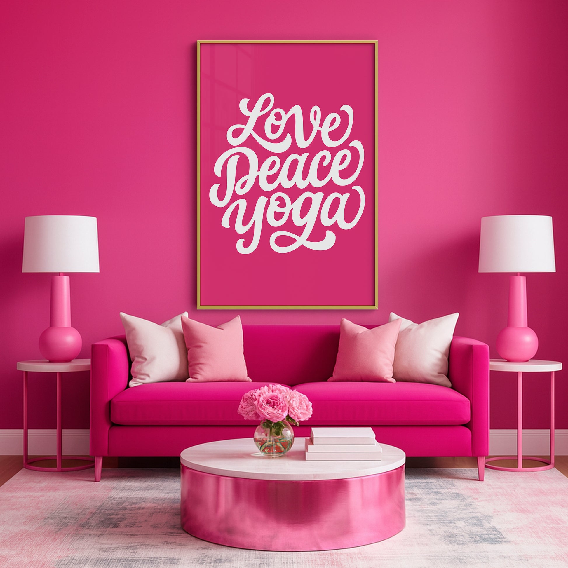 Embrace tranquility and mindfulness with this elegant hand-lettered typography design that embodies the spirit of love, peace, and yoga. Whether you're setting up your meditation corner, yoga studio, or simply creating a peaceful sanctuary at home, this piece adds a calming yet stylish touch to your space.