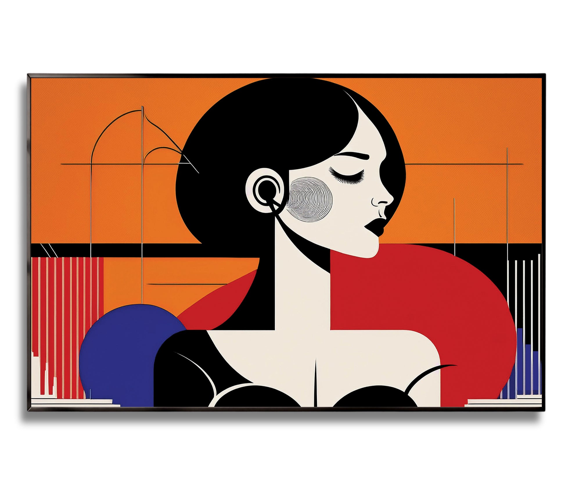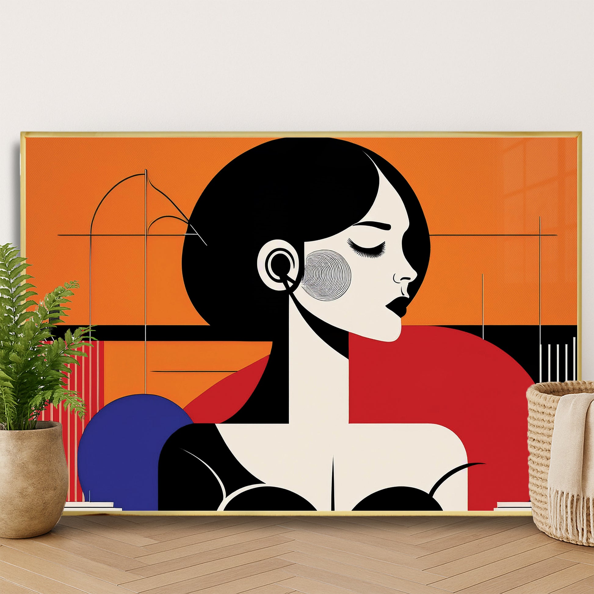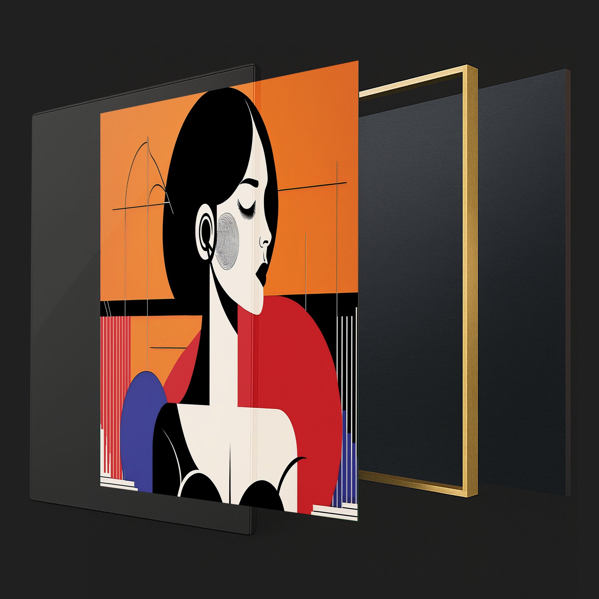 πŸ–€ Strength meets serenity in this refined composition of modern elegance. With eyes gently closed and lips composed, this portrait channels inner peace and quiet sophistication. Bold curves contrast with structured lines and color blocks, radiating calm amid complexity.