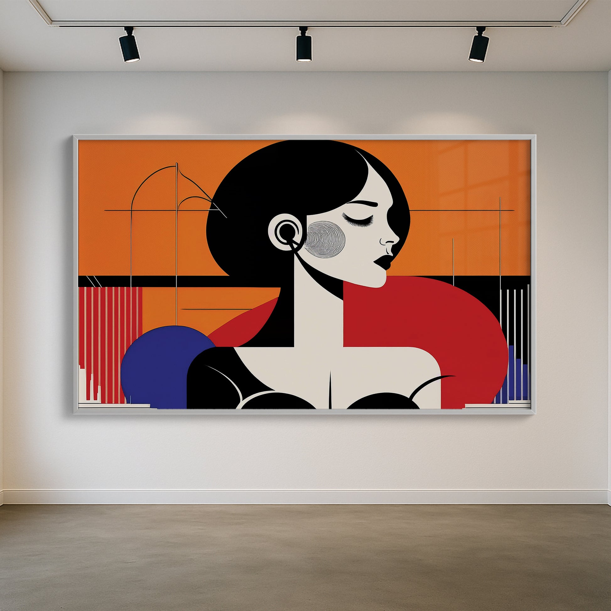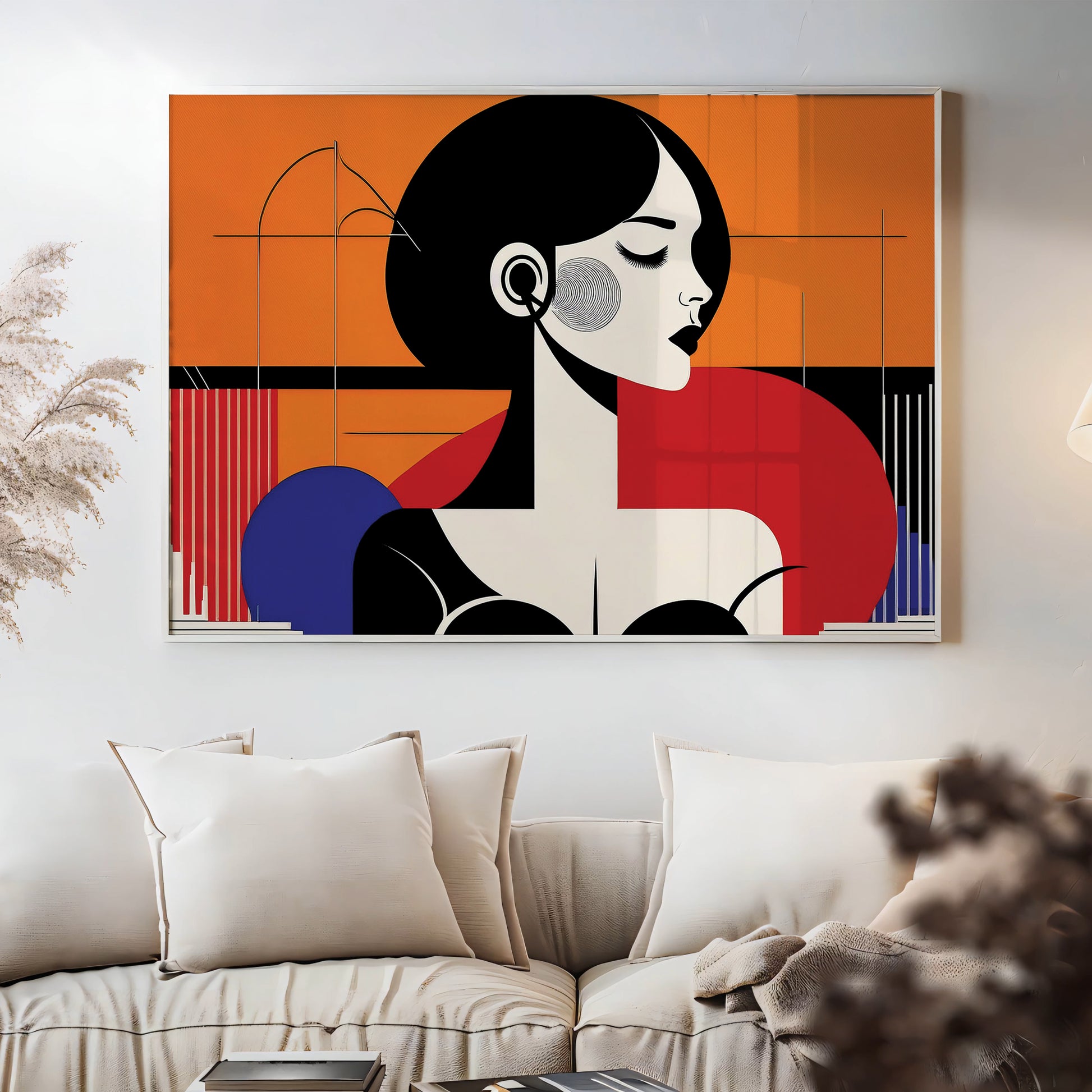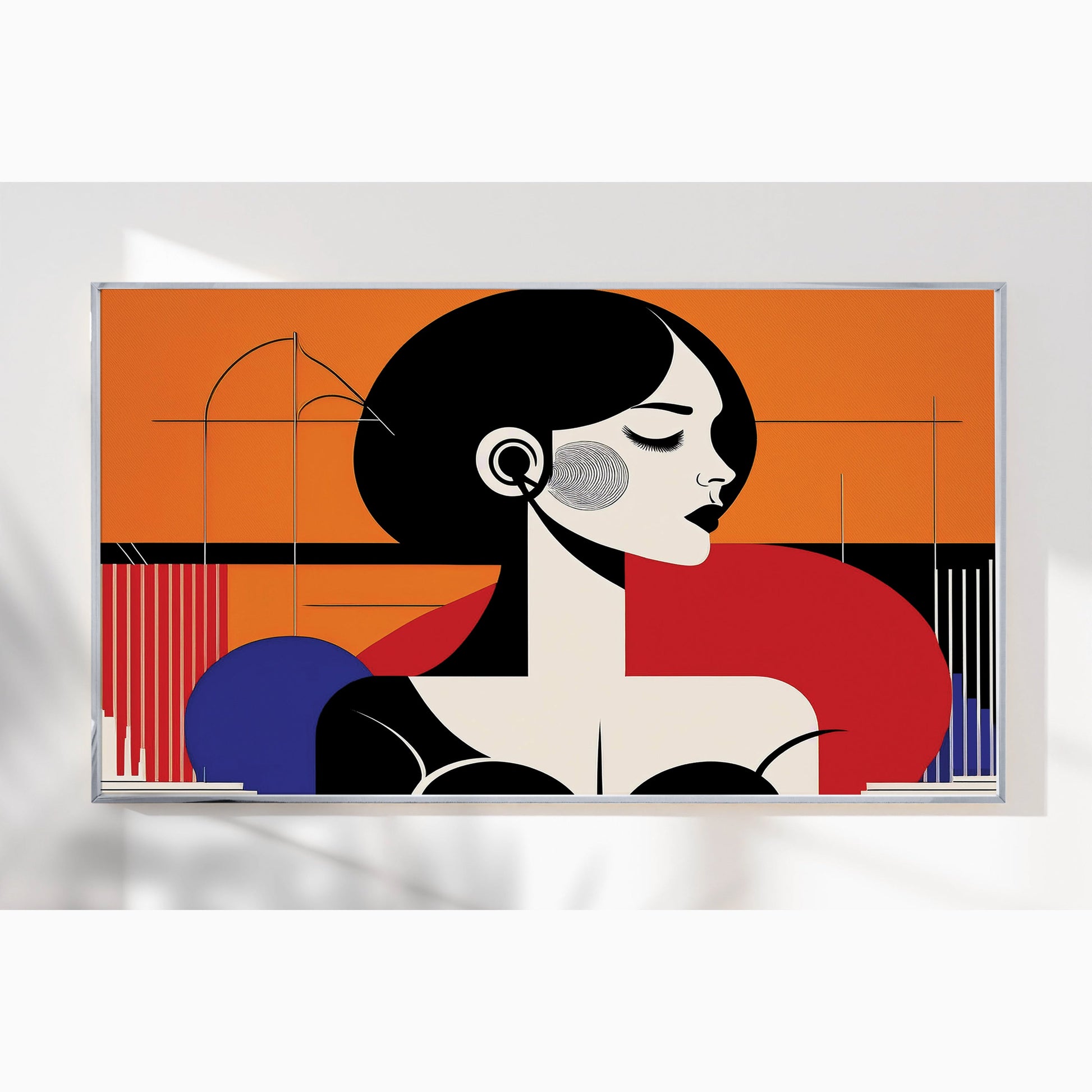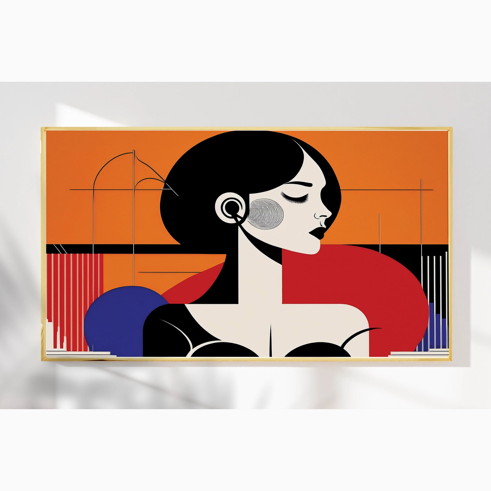 πŸ–€ Strength meets serenity in this refined composition of modern elegance. With eyes gently closed and lips composed, this portrait channels inner peace and quiet sophistication. Bold curves contrast with structured lines and color blocks, radiating calm amid complexity.