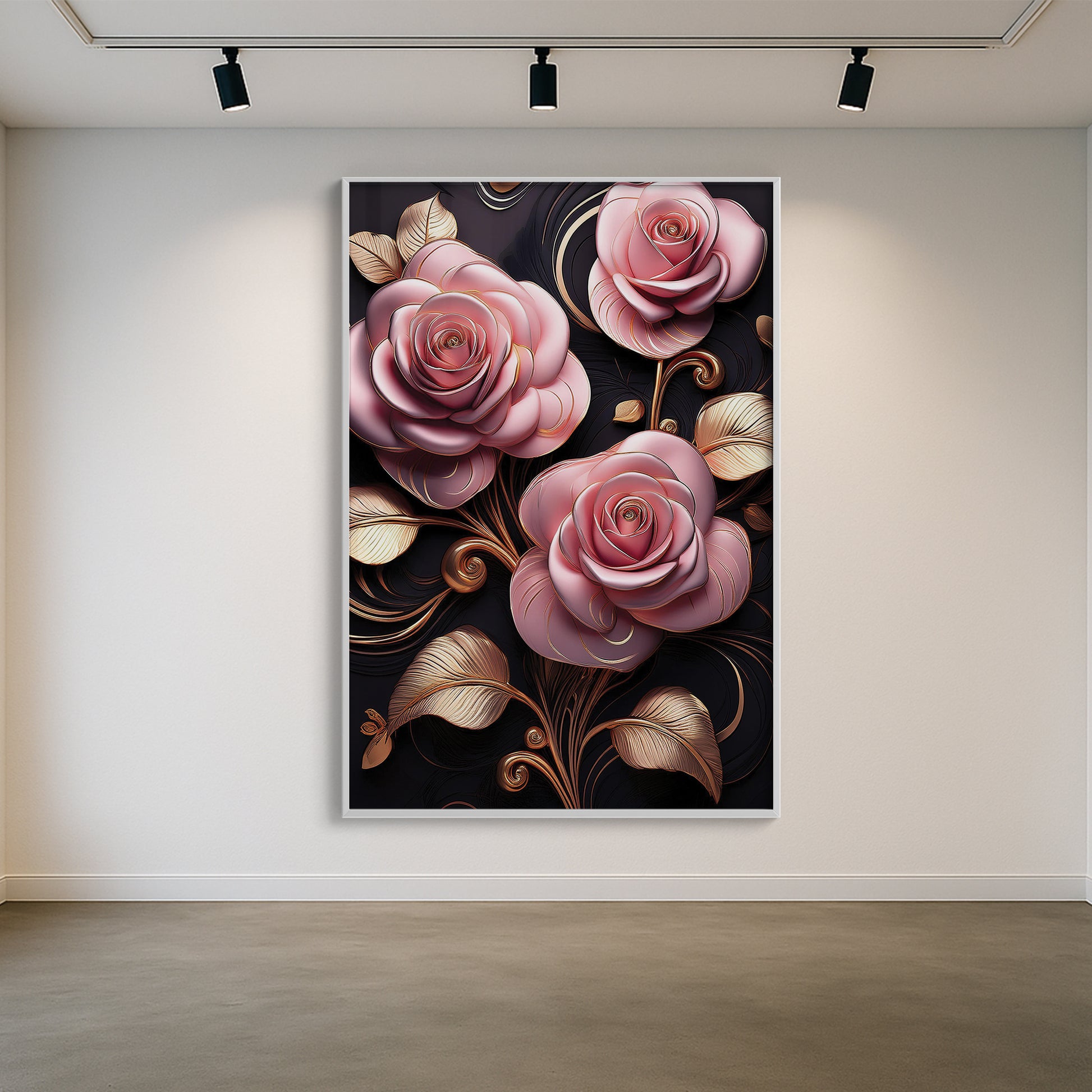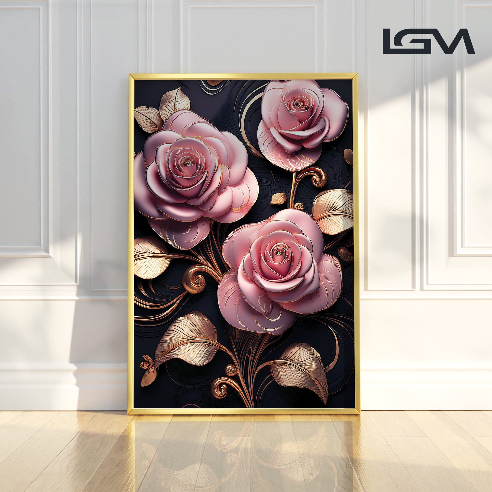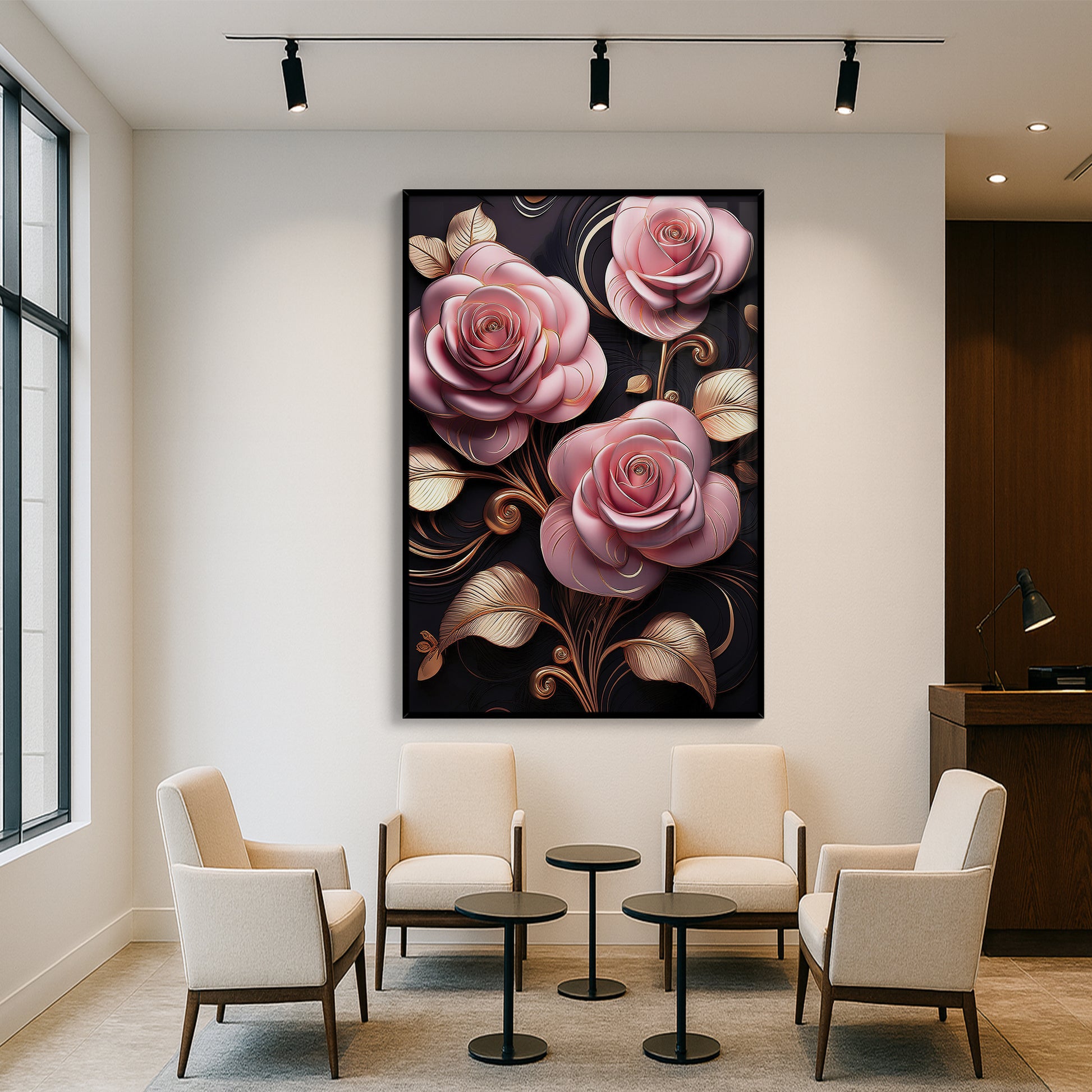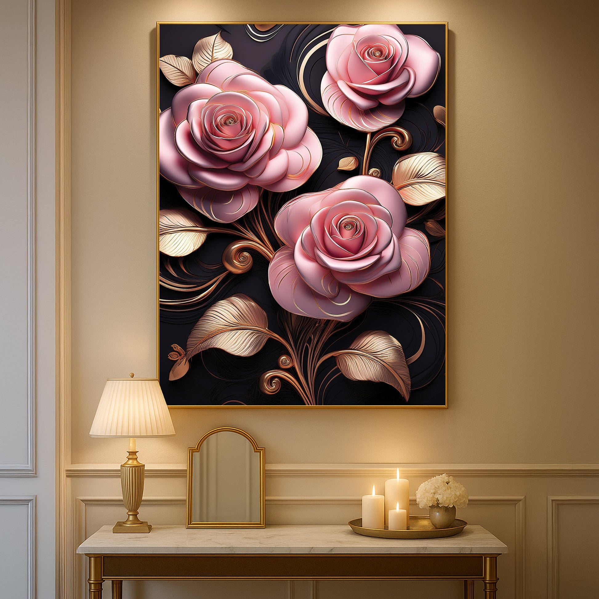 Enhance your space with this Light Pink Rose Metal Framed Wall Art. Featuring soft pink roses with golden highlights set against a dramatic dark backdrop, this artwork blends romance and elegance. The detailed petals and metallic accents add depth and sophistication, making it a striking centerpiece for bedrooms, living rooms, or luxury offices. Professionally framed in durable metal, it’s designed to bring timeless beauty to your home.