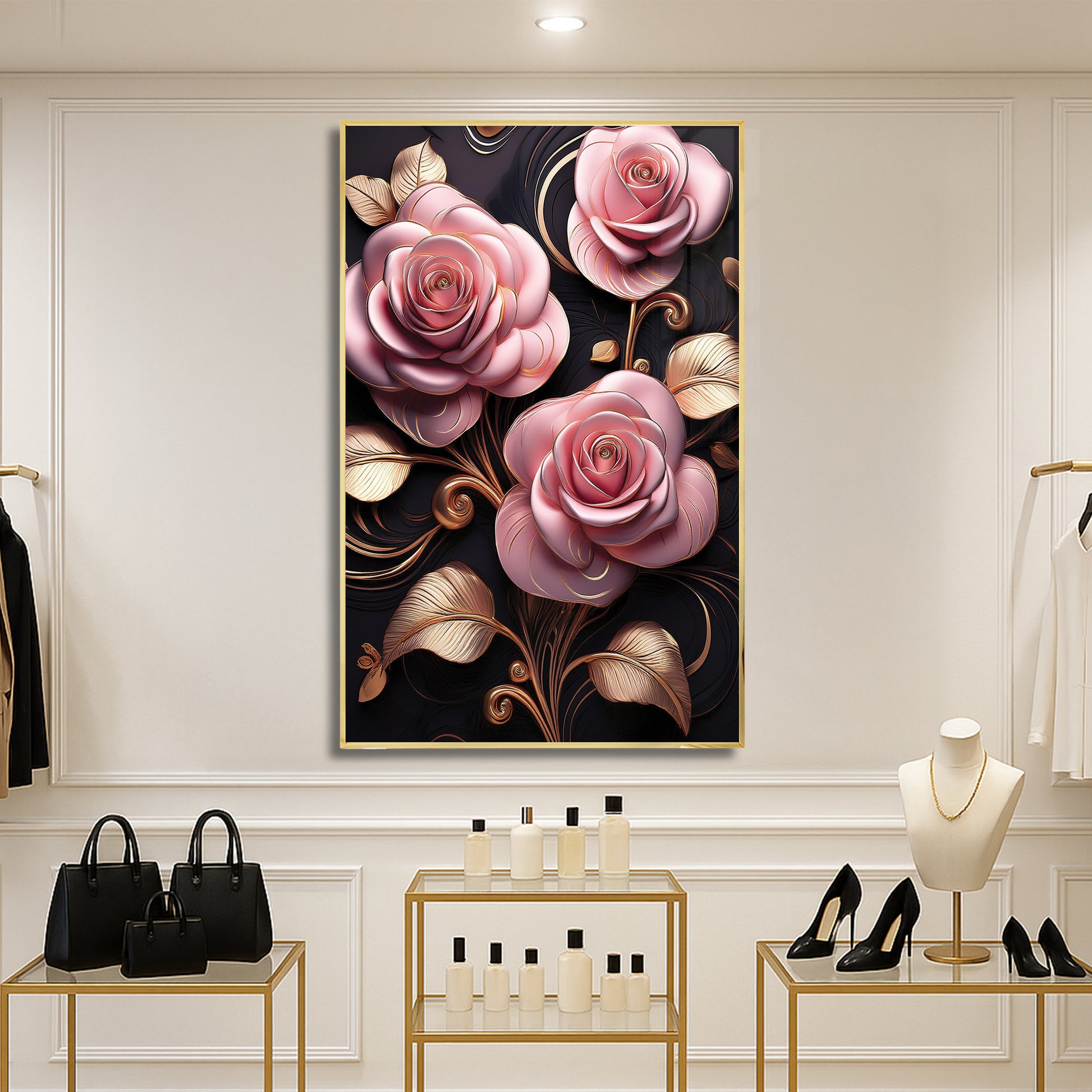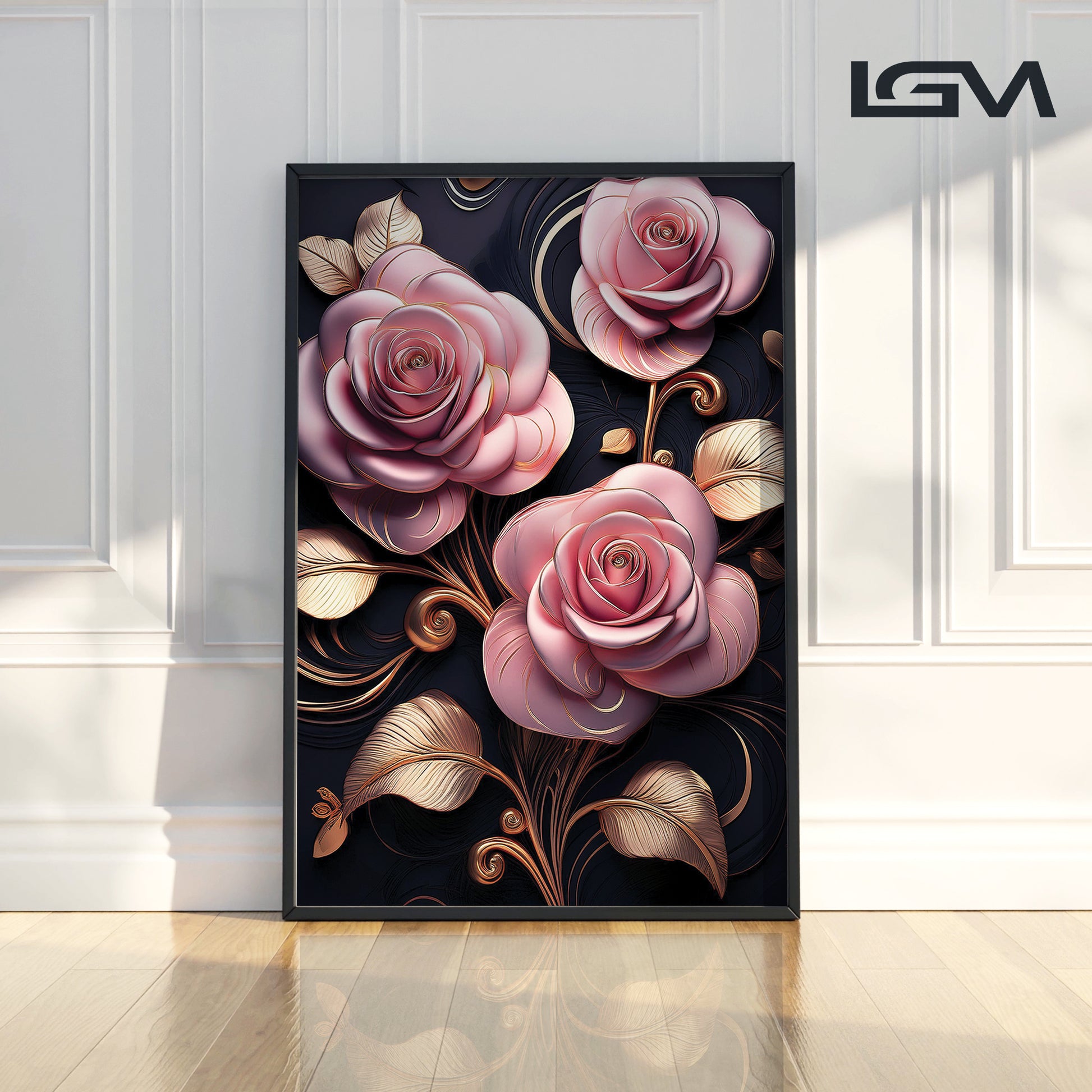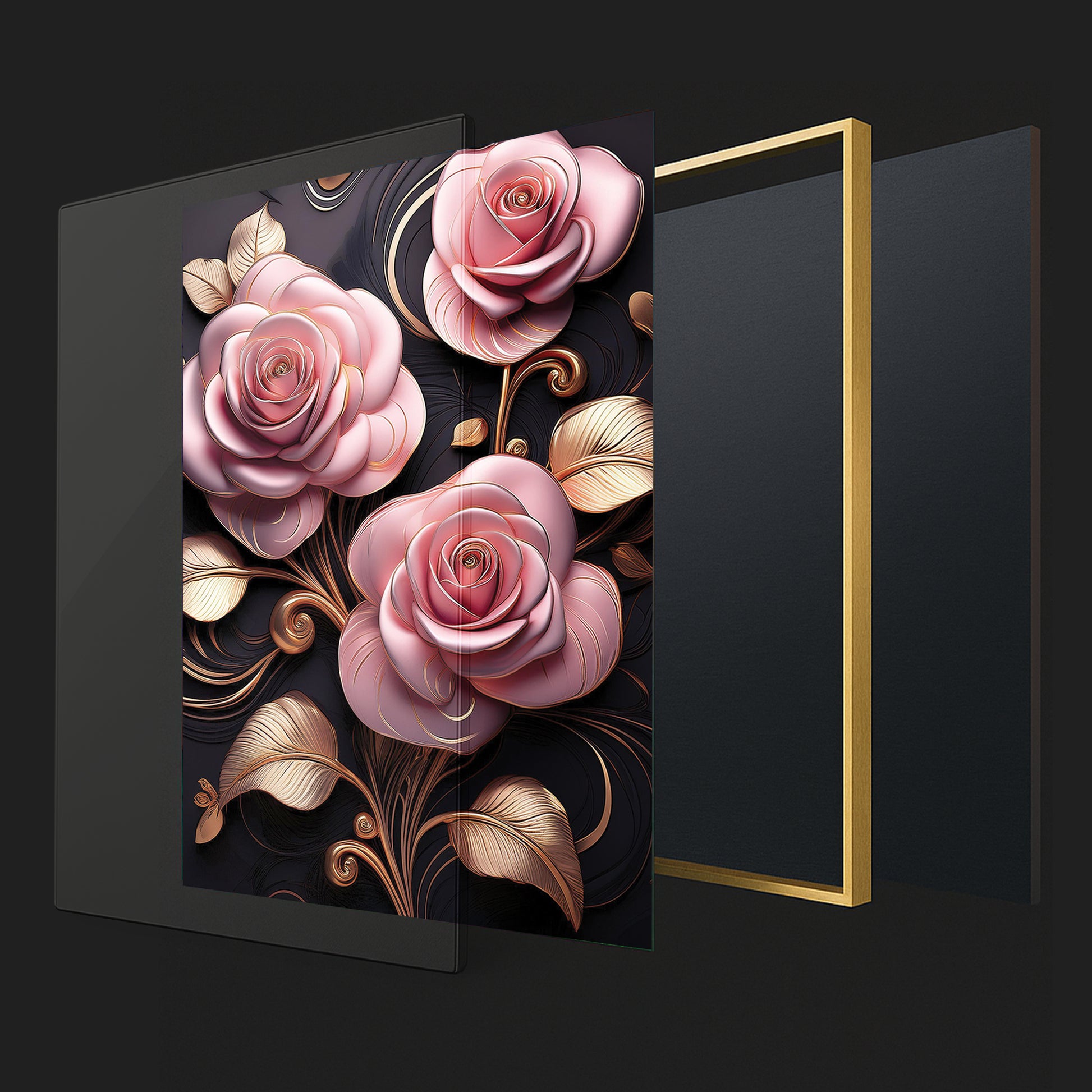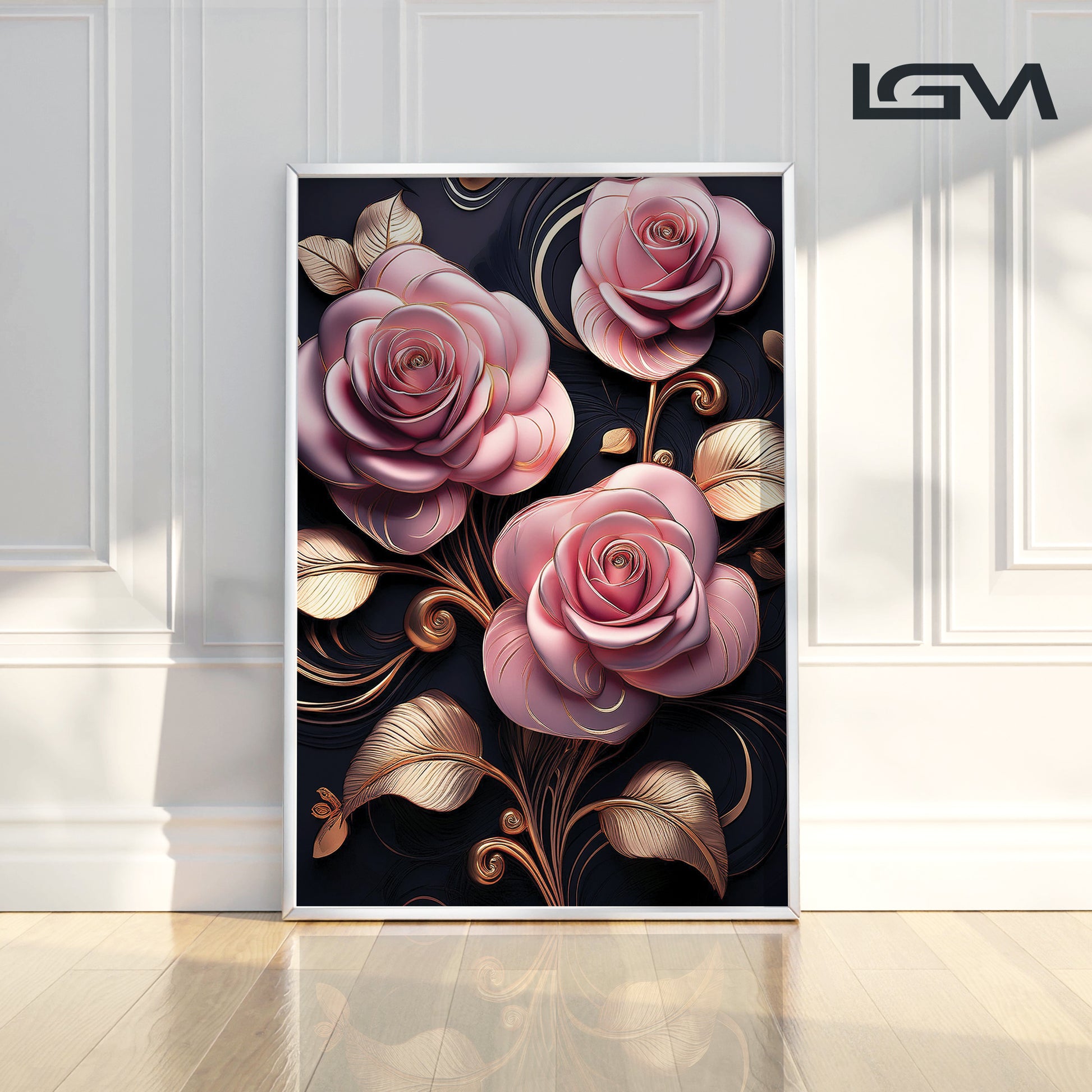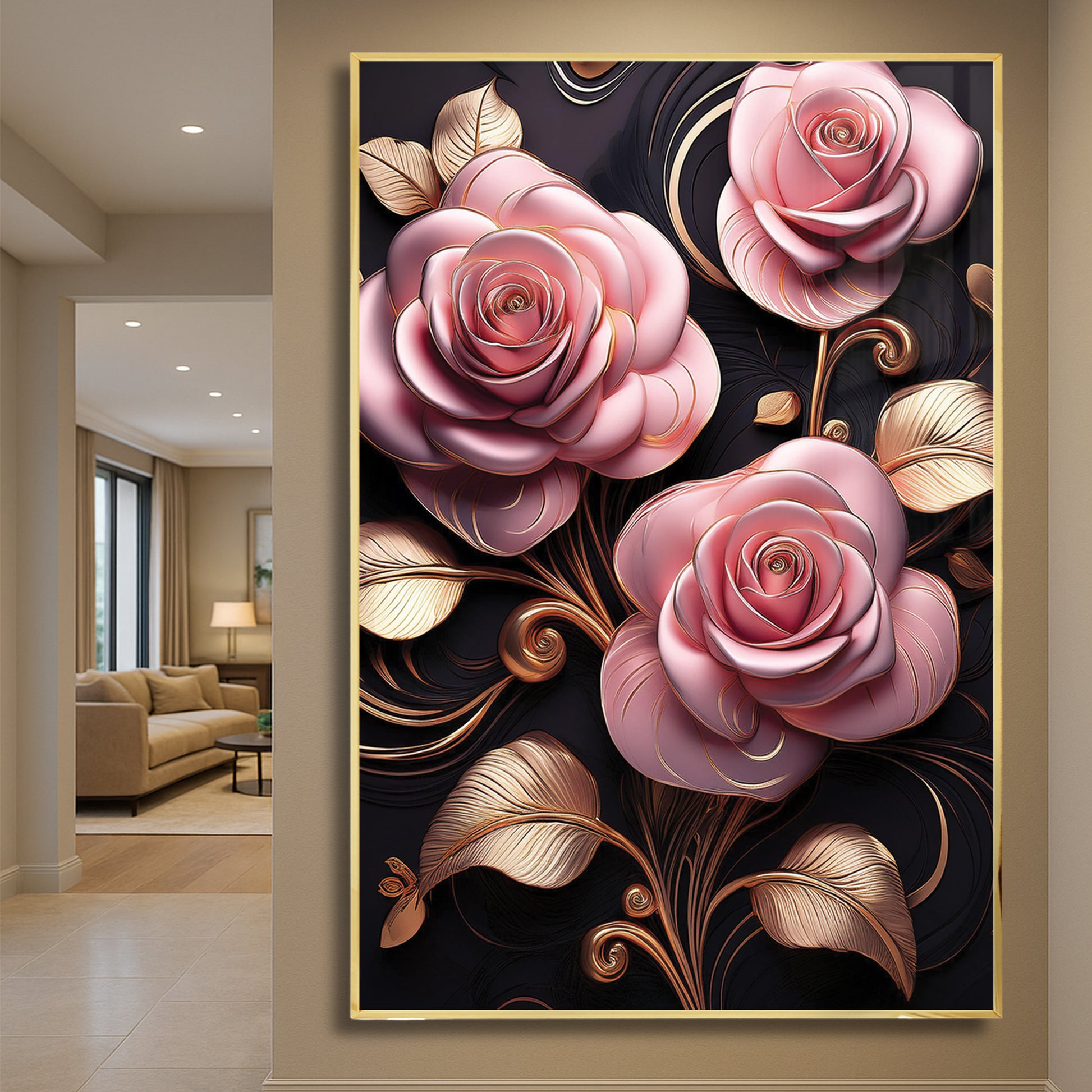 Enhance your space with this Light Pink Rose Metal Framed Wall Art. Featuring soft pink roses with golden highlights set against a dramatic dark backdrop, this artwork blends romance and elegance. The detailed petals and metallic accents add depth and sophistication, making it a striking centerpiece for bedrooms, living rooms, or luxury offices. Professionally framed in durable metal, it’s designed to bring timeless beauty to your home.