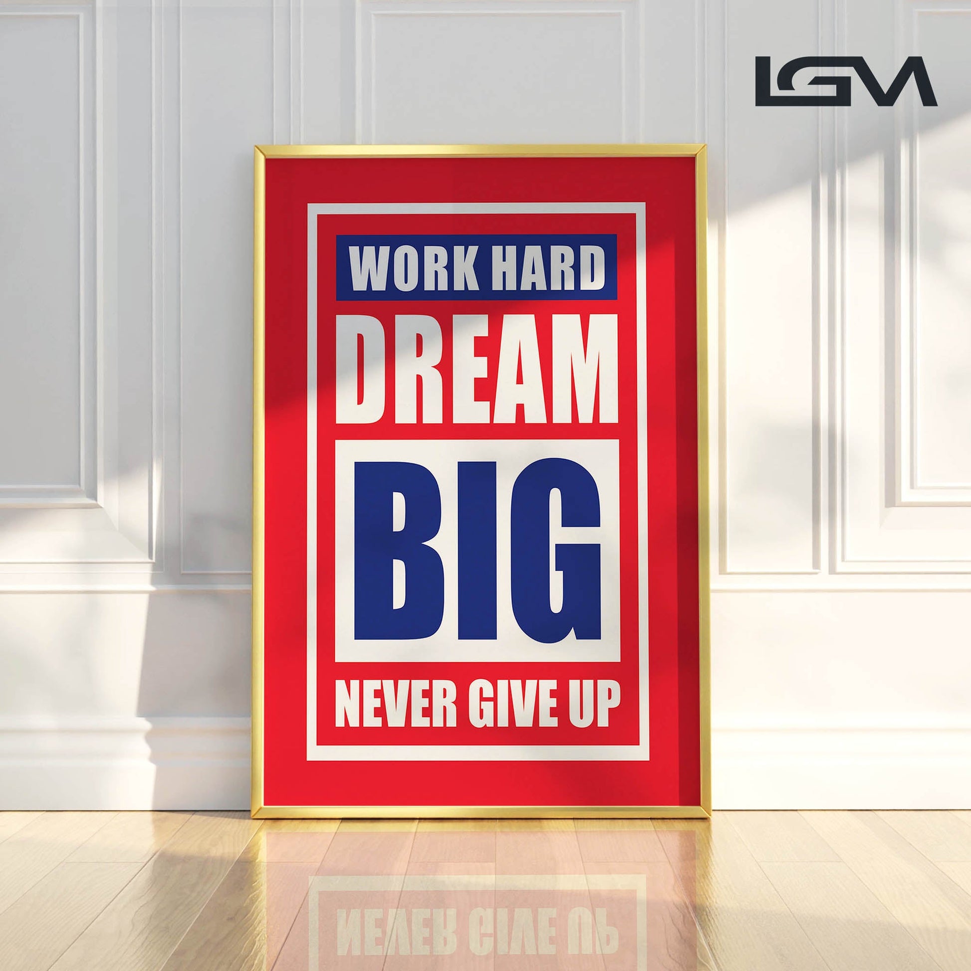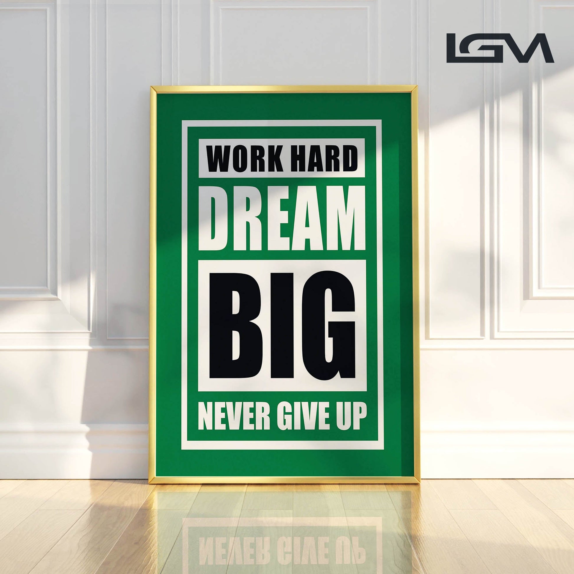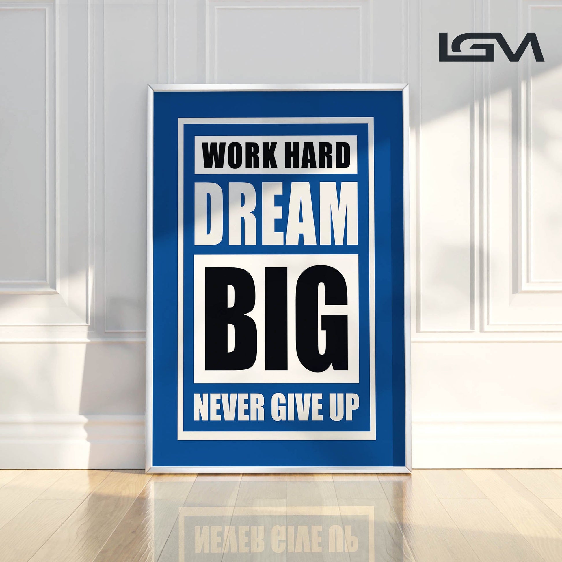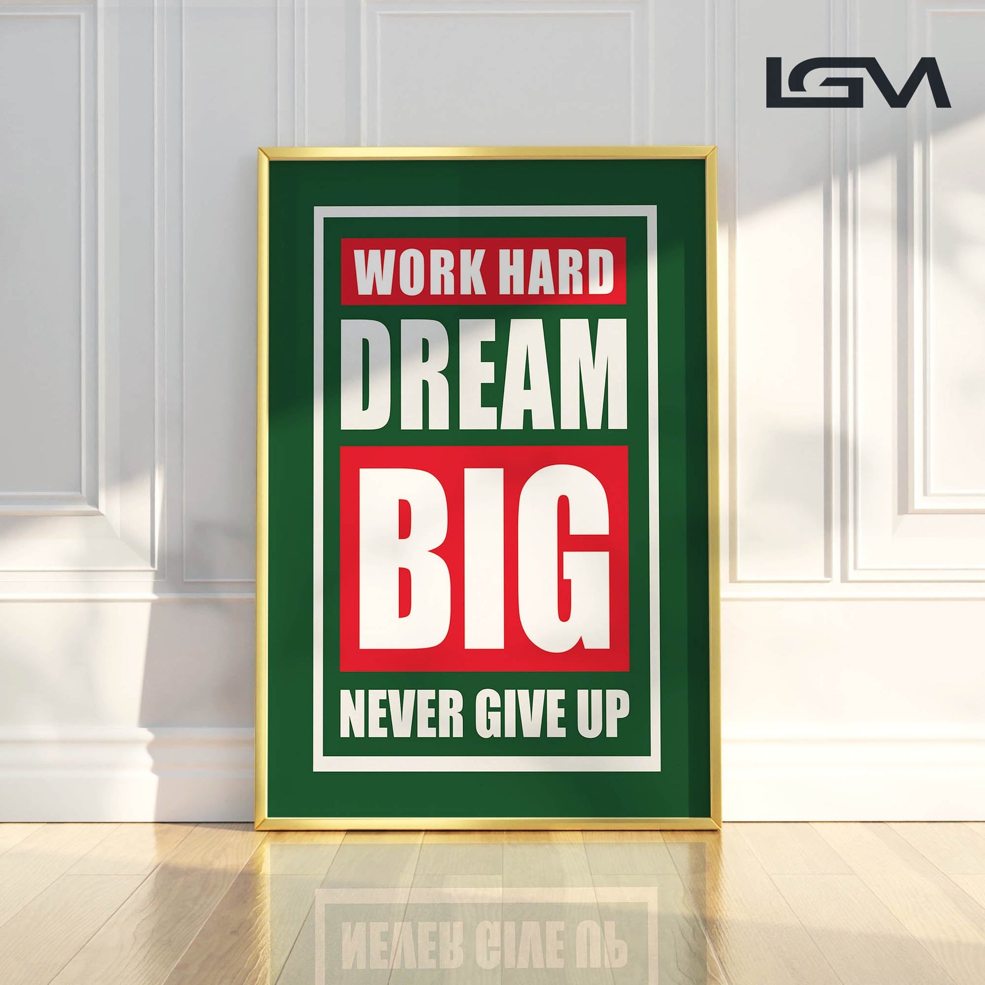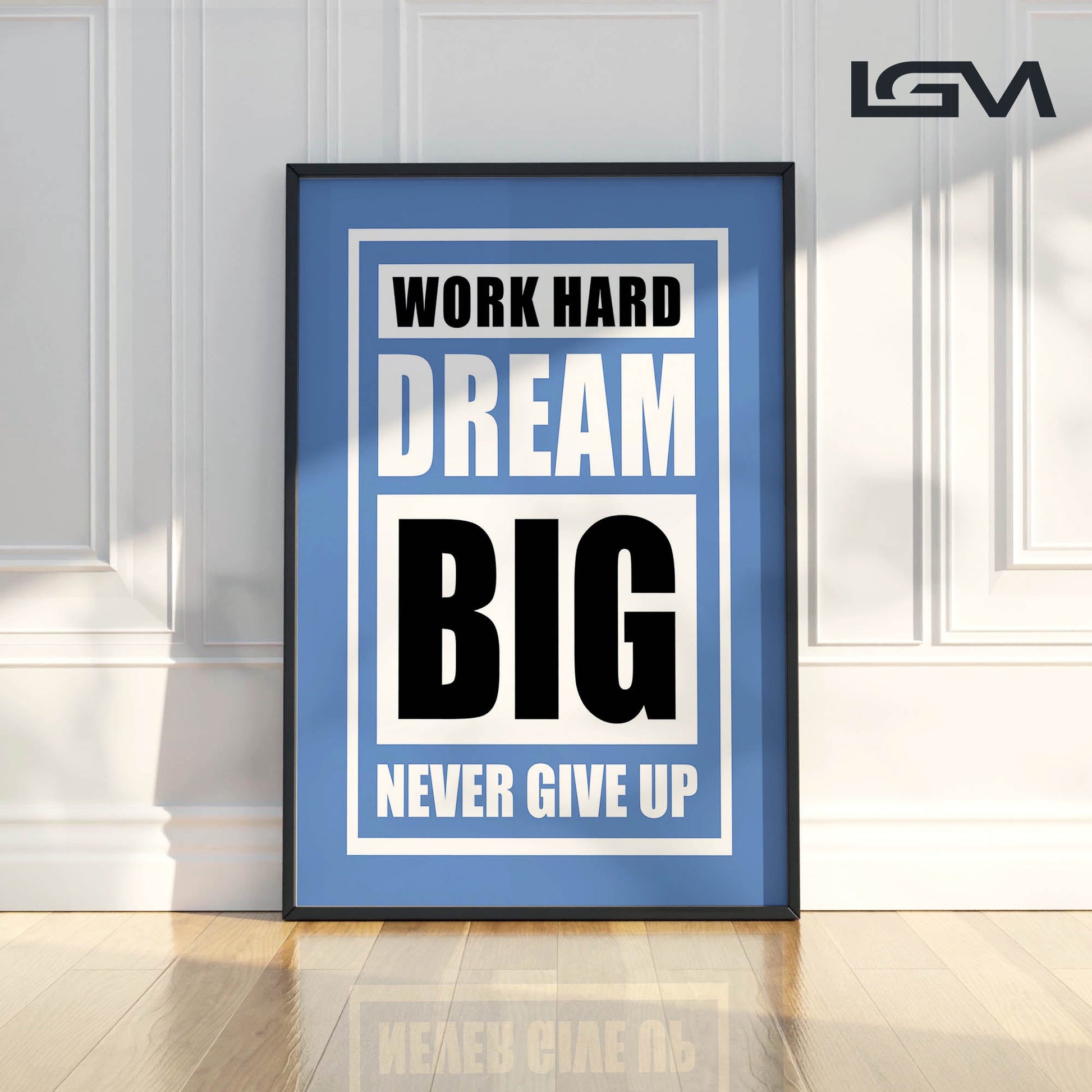 Success starts with grit, vision, and perseverance. This bold typography print delivers a powerful triple-shot of motivation to push you forward every single day. With its clean block lettering and commanding layout, it's a strong visual mantra for anyone chasing big goals.