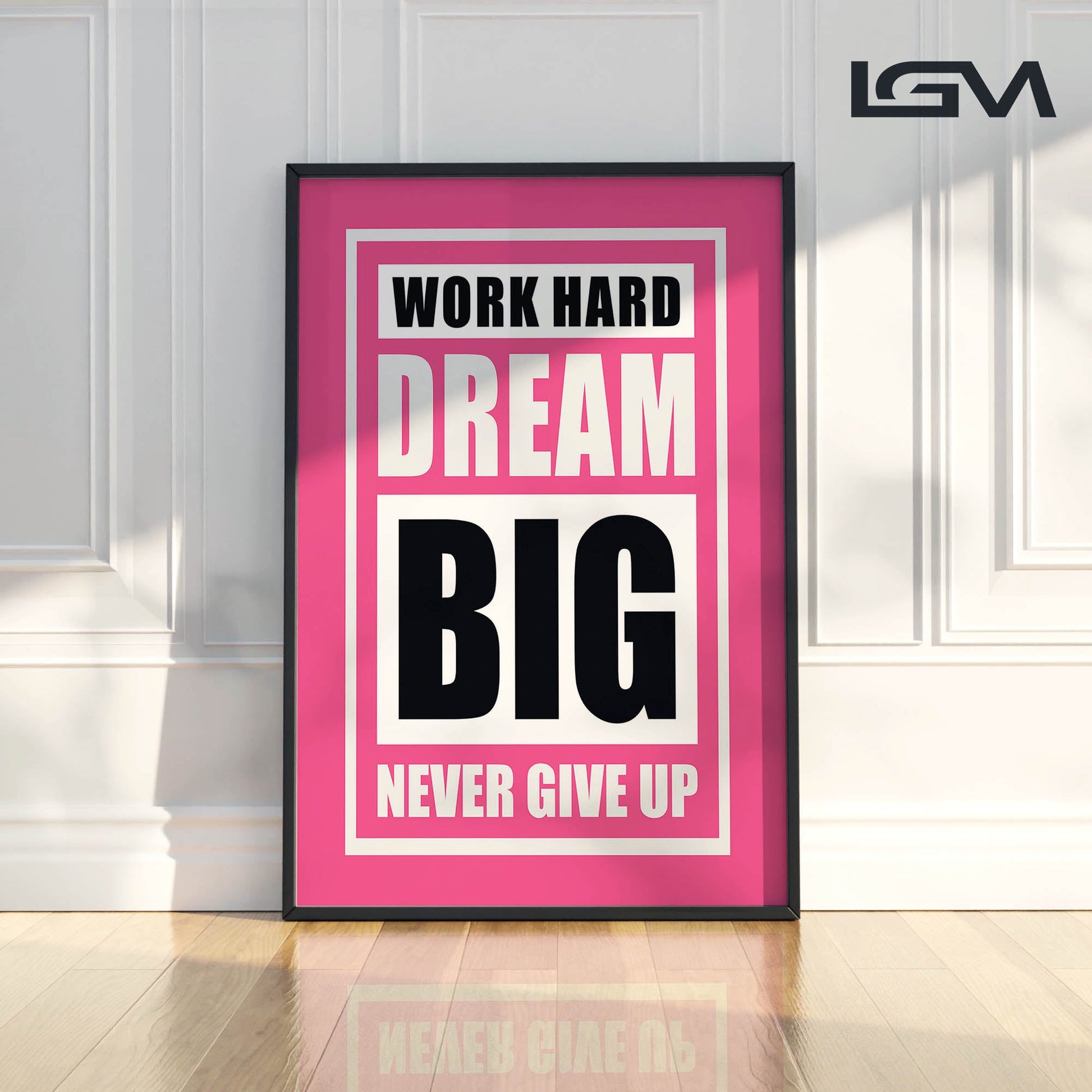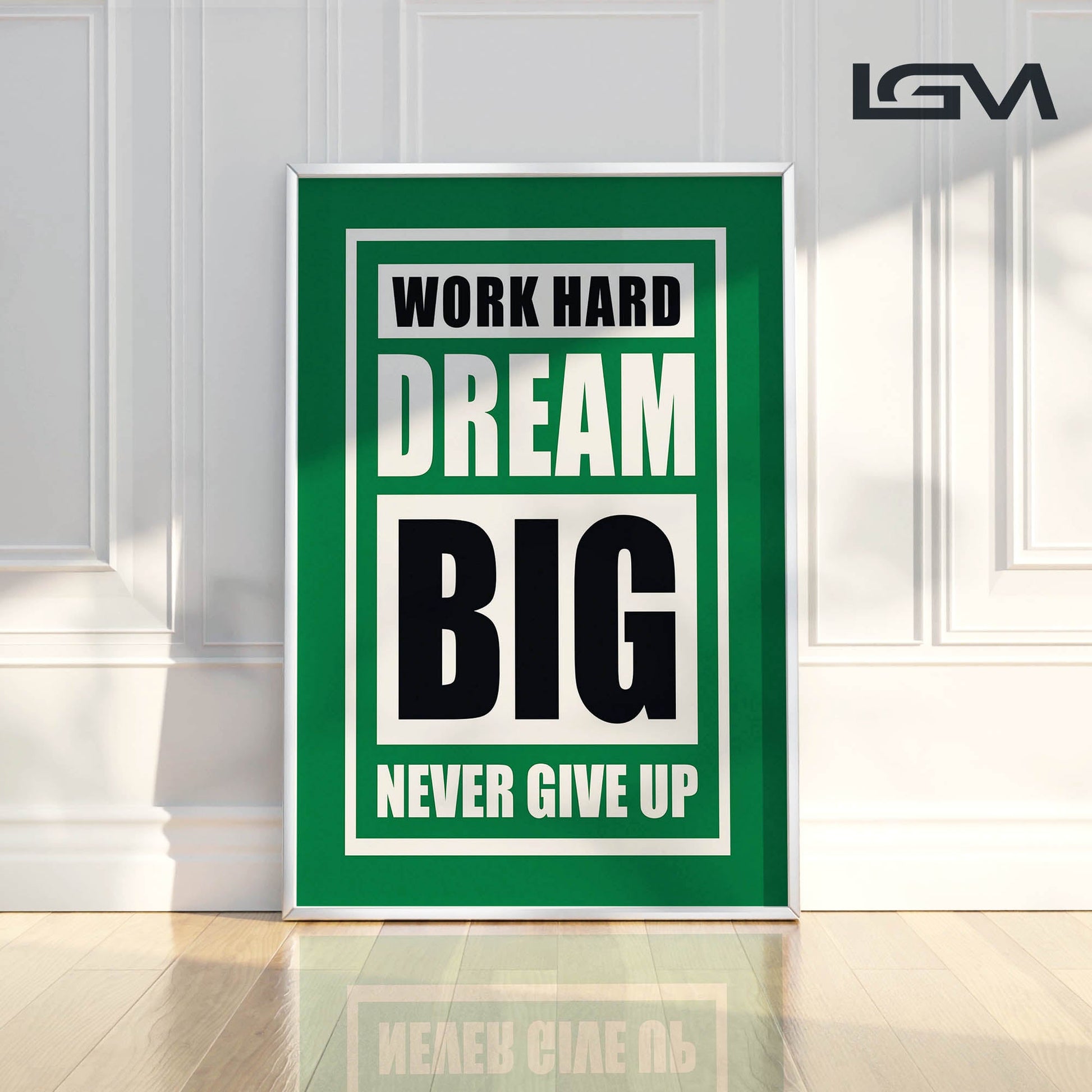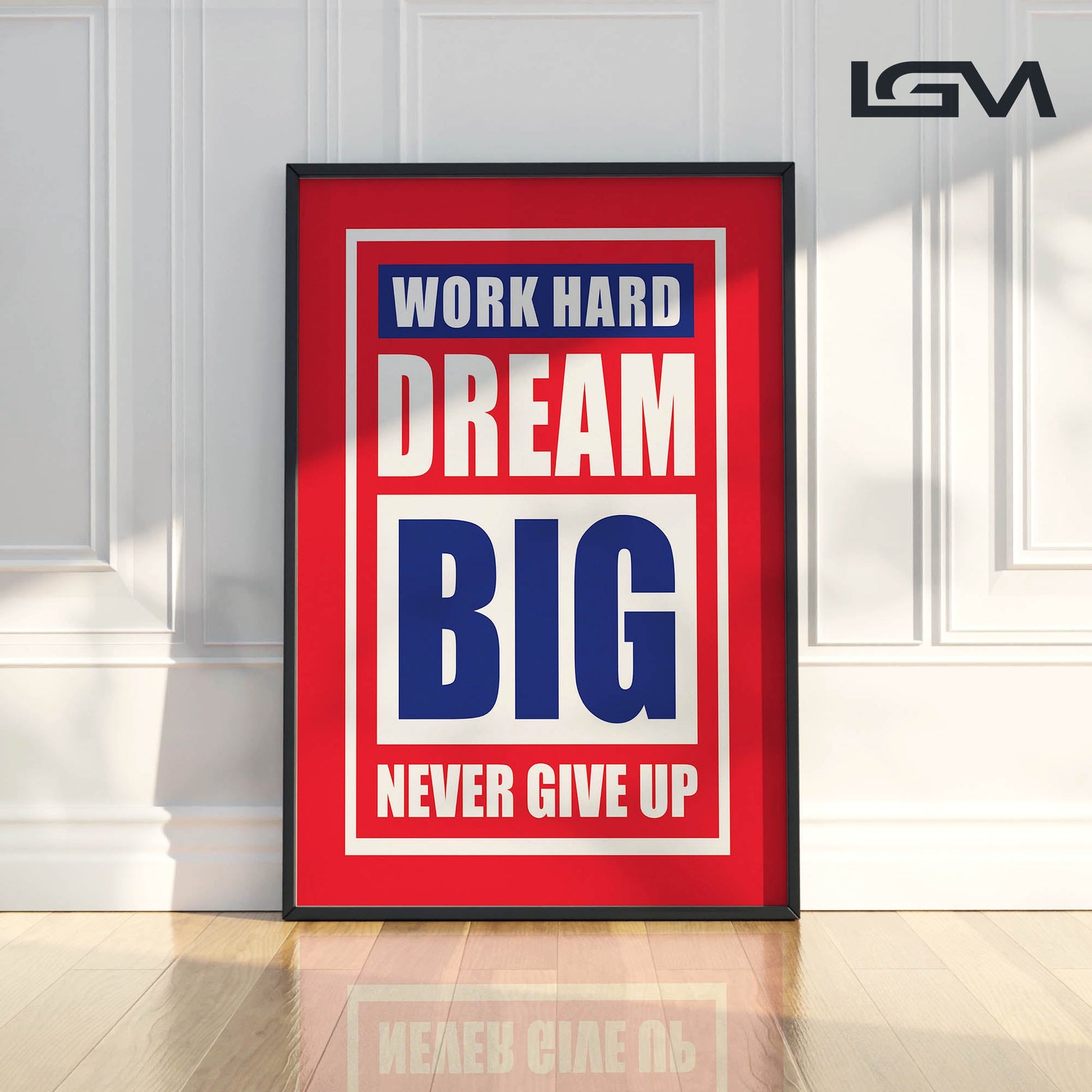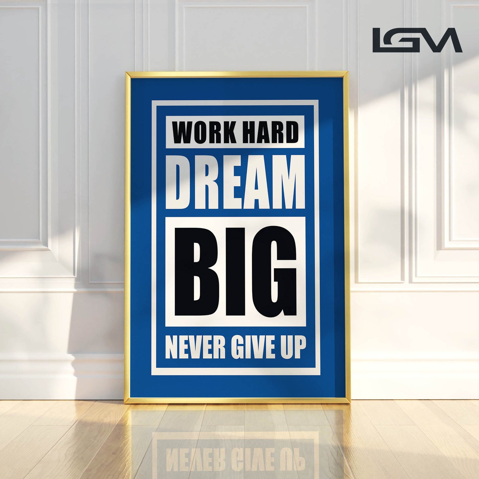 Success starts with grit, vision, and perseverance. This bold typography print delivers a powerful triple-shot of motivation to push you forward every single day. With its clean block lettering and commanding layout, it's a strong visual mantra for anyone chasing big goals.
