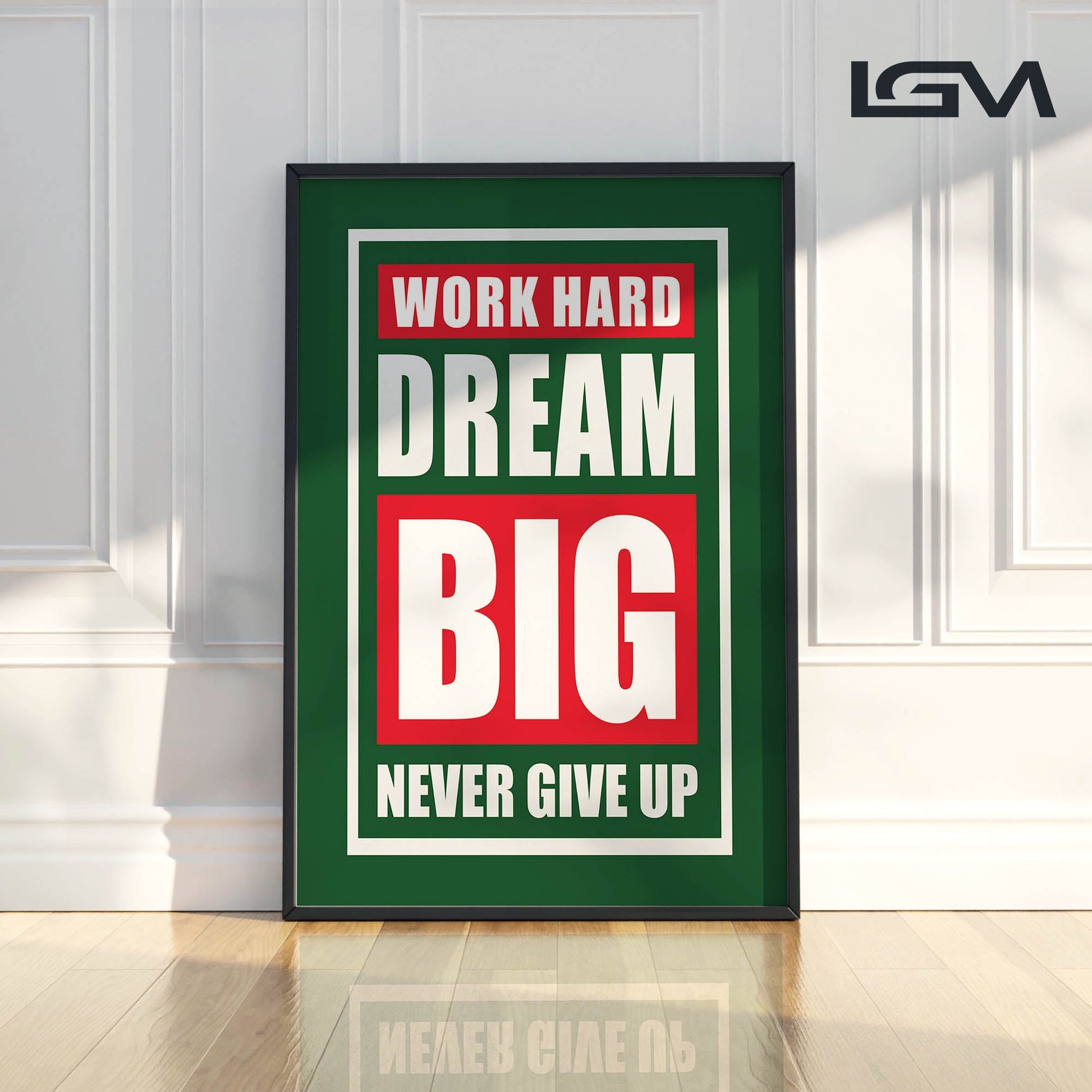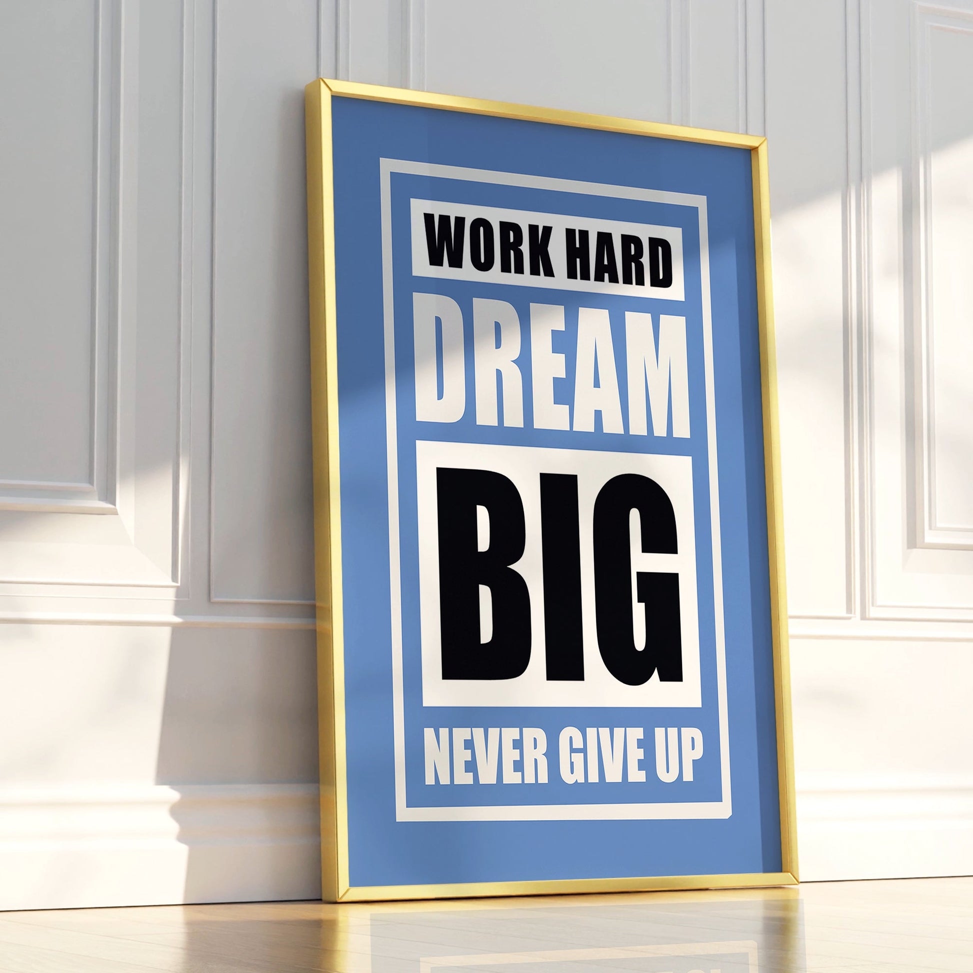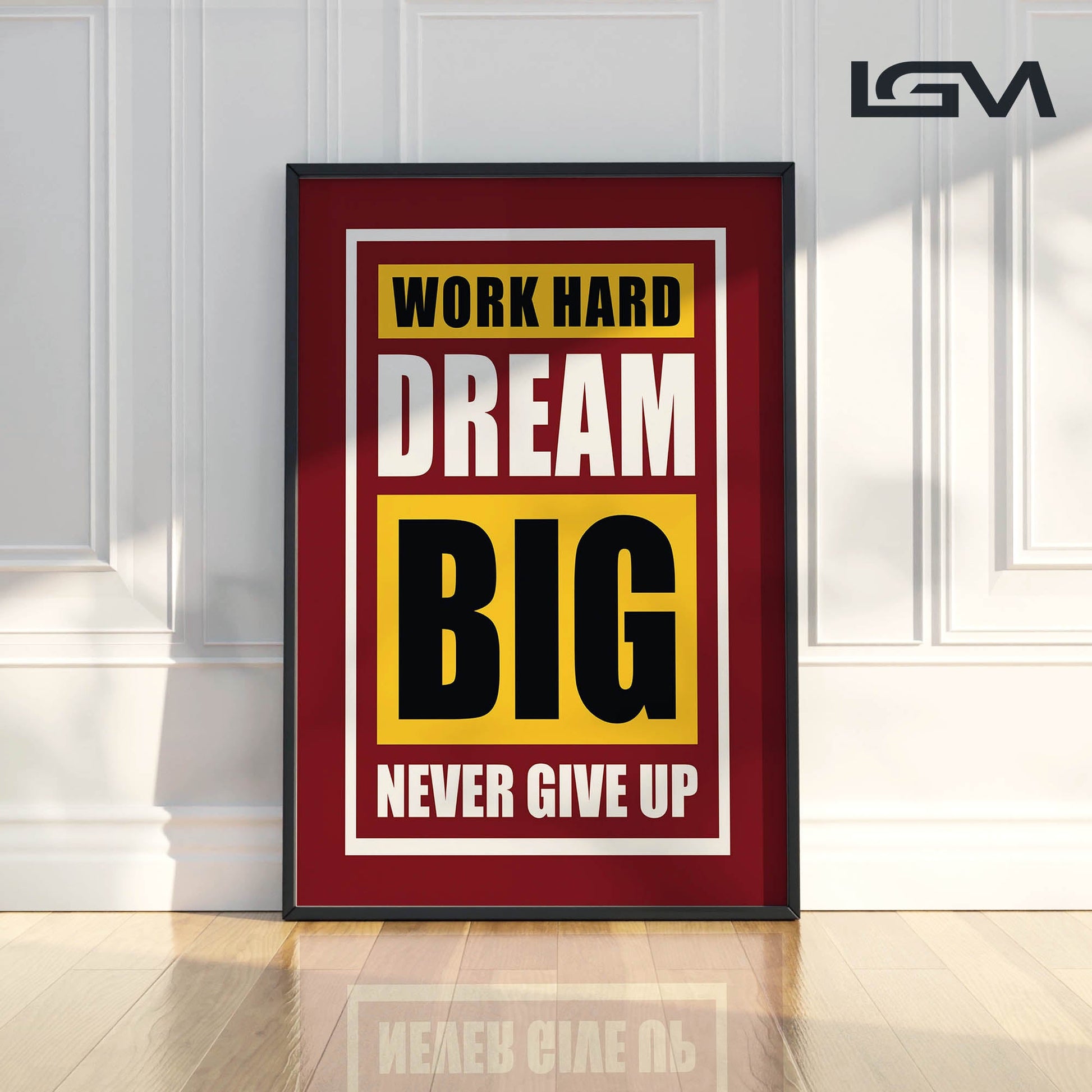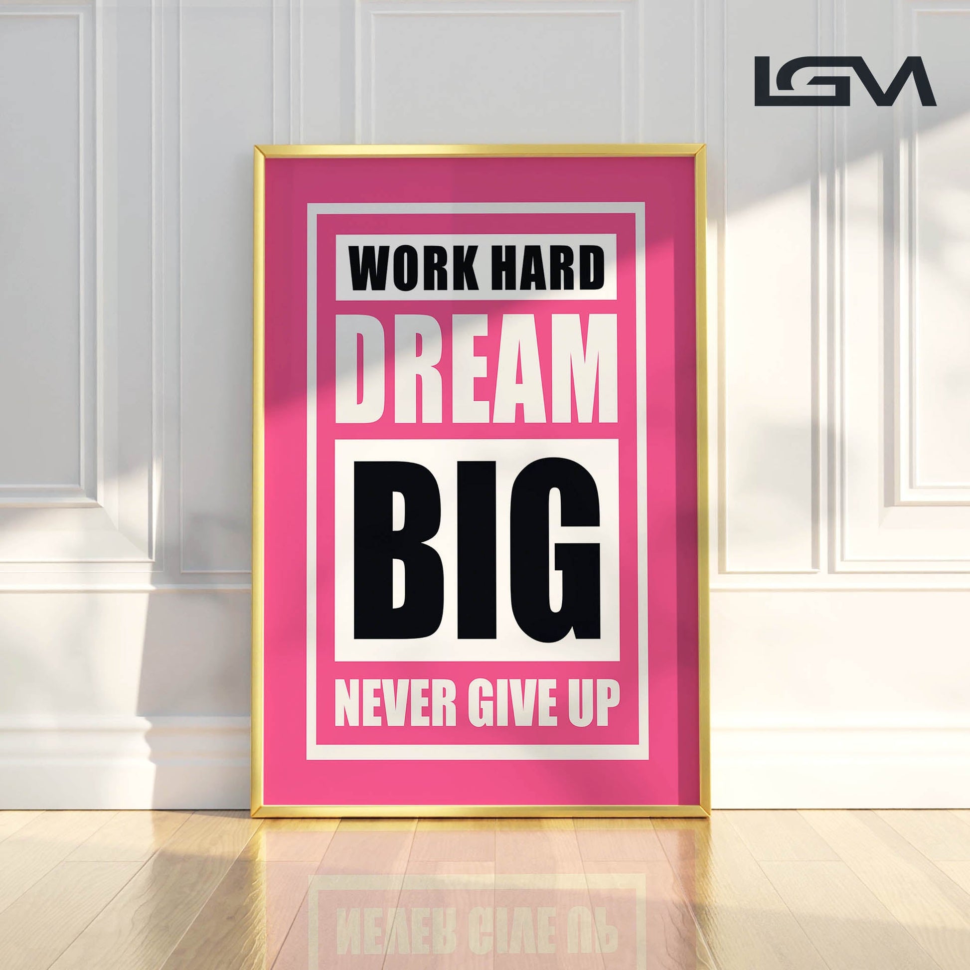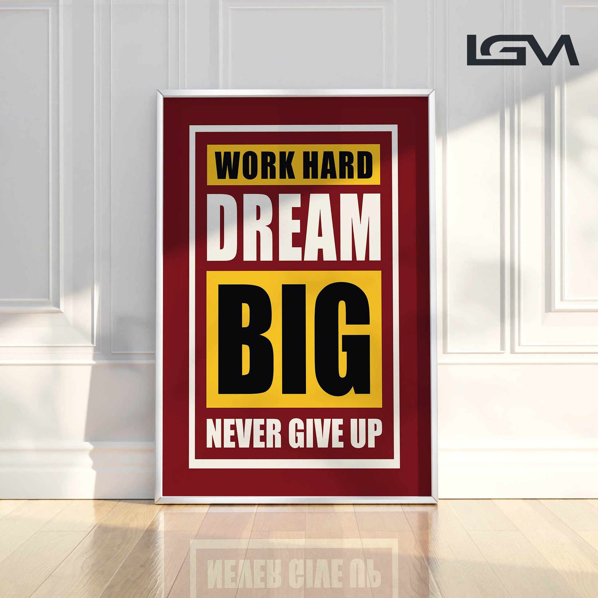 Success starts with grit, vision, and perseverance. This bold typography print delivers a powerful triple-shot of motivation to push you forward every single day. With its clean block lettering and commanding layout, it's a strong visual mantra for anyone chasing big goals.