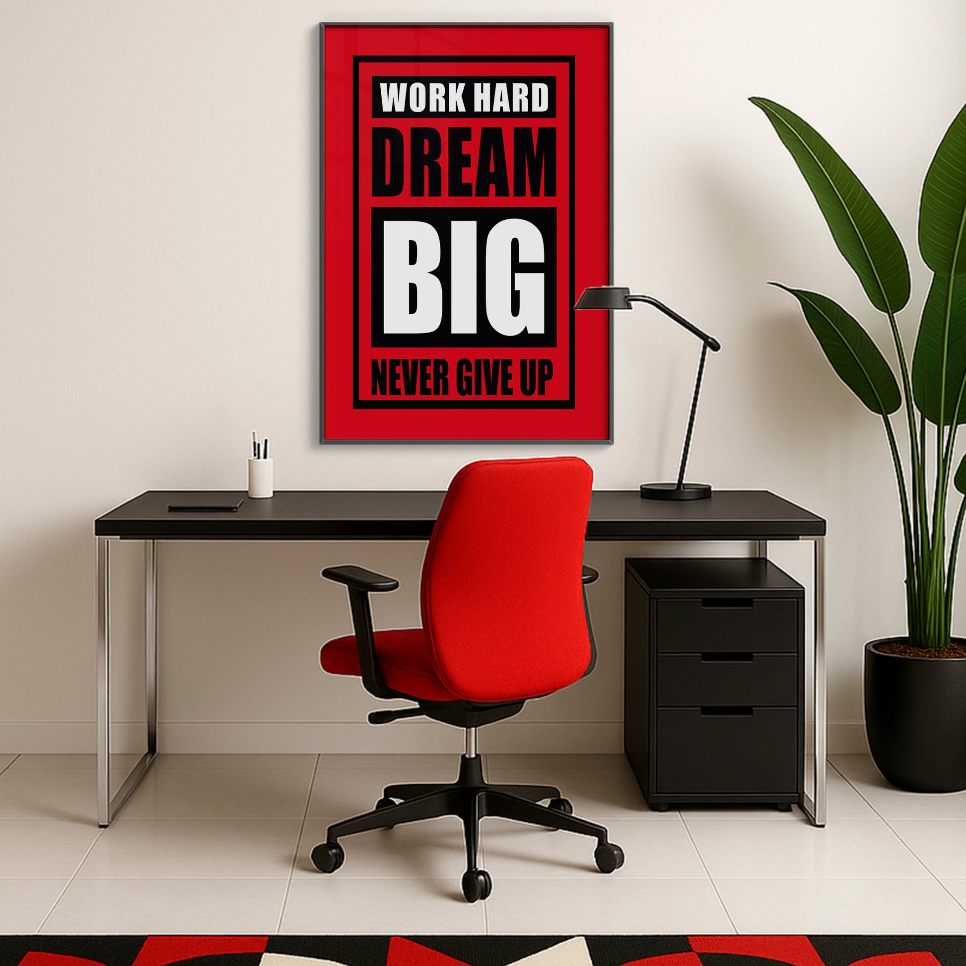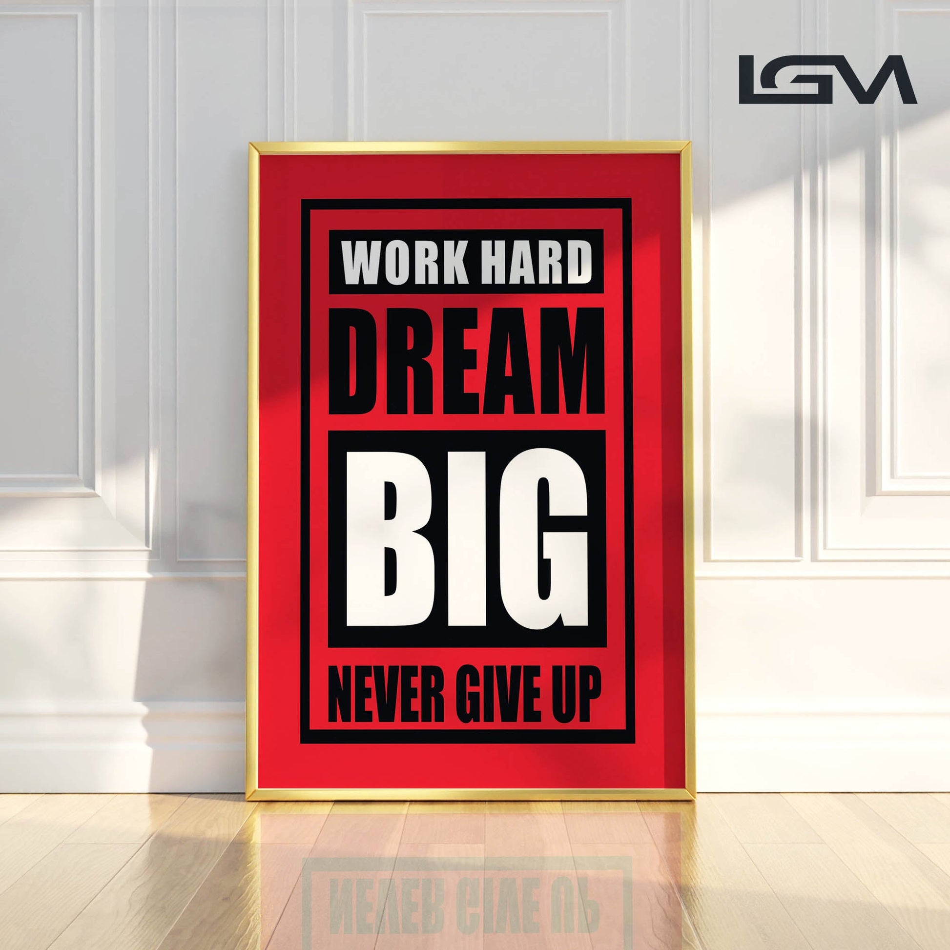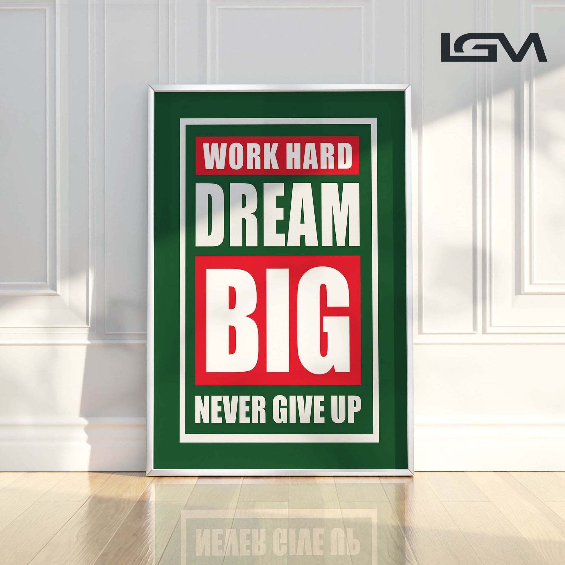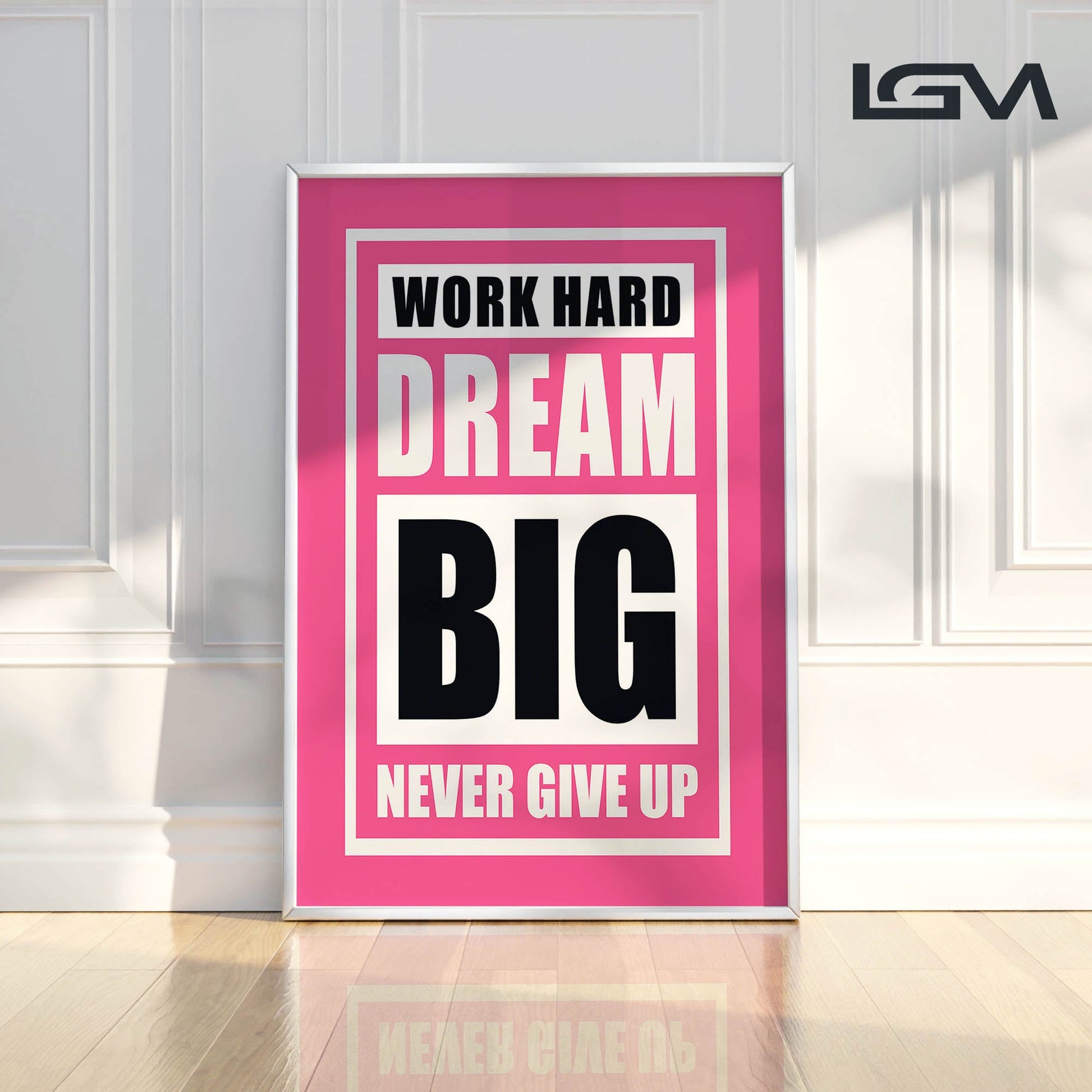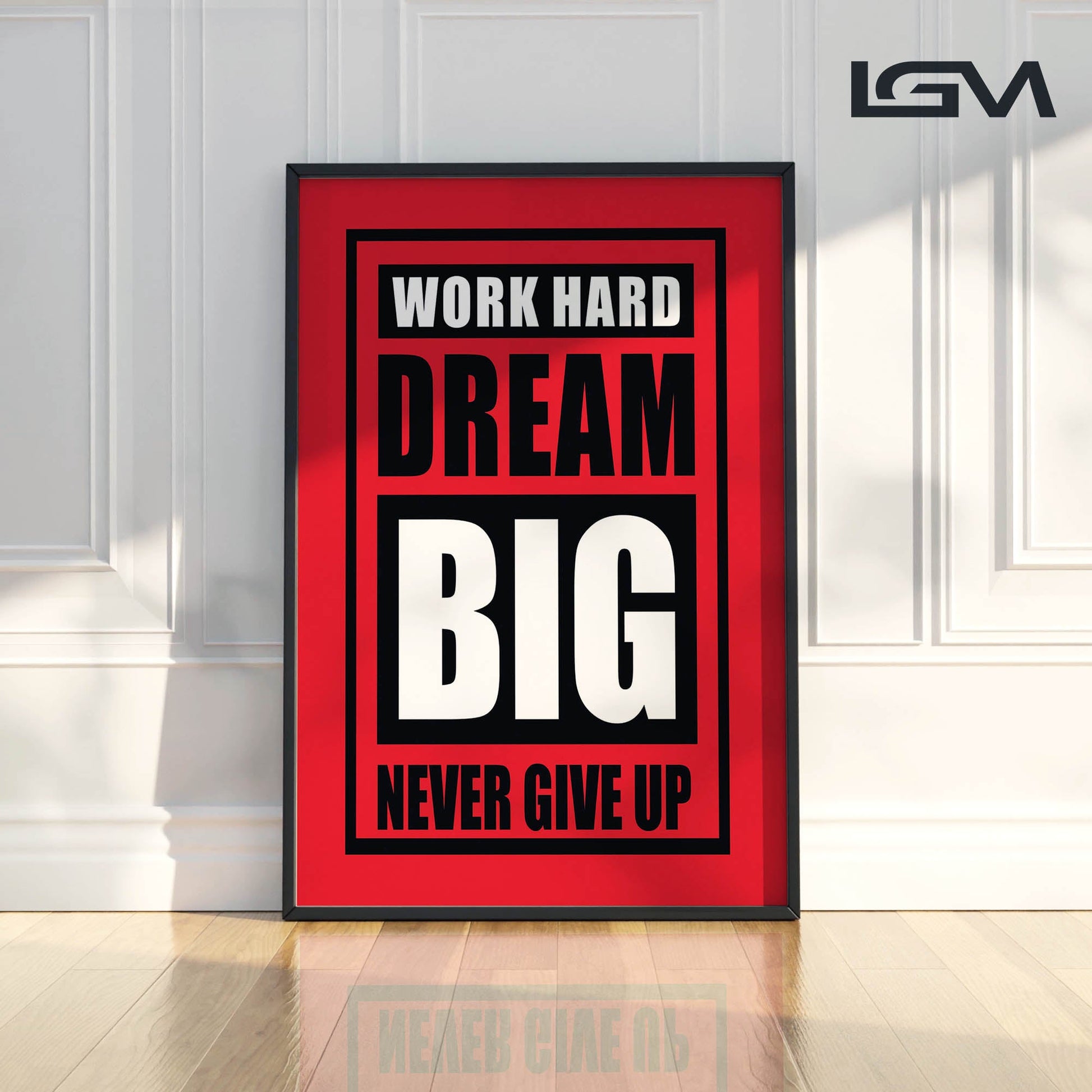 Success starts with grit, vision, and perseverance. This bold typography print delivers a powerful triple-shot of motivation to push you forward every single day. With its clean block lettering and commanding layout, it's a strong visual mantra for anyone chasing big goals.