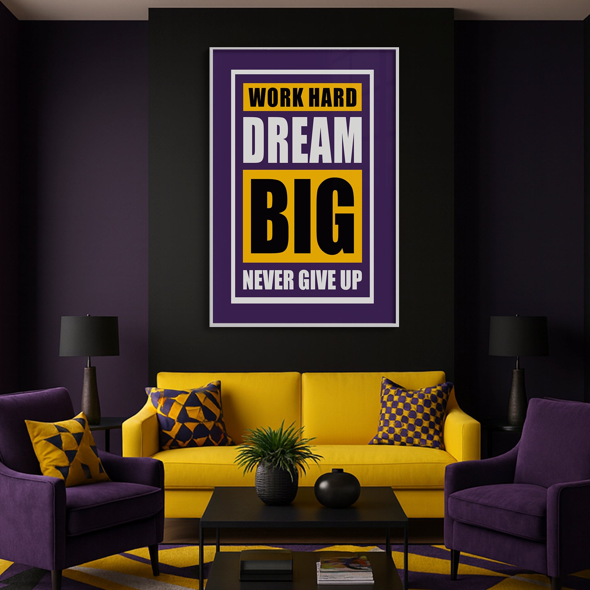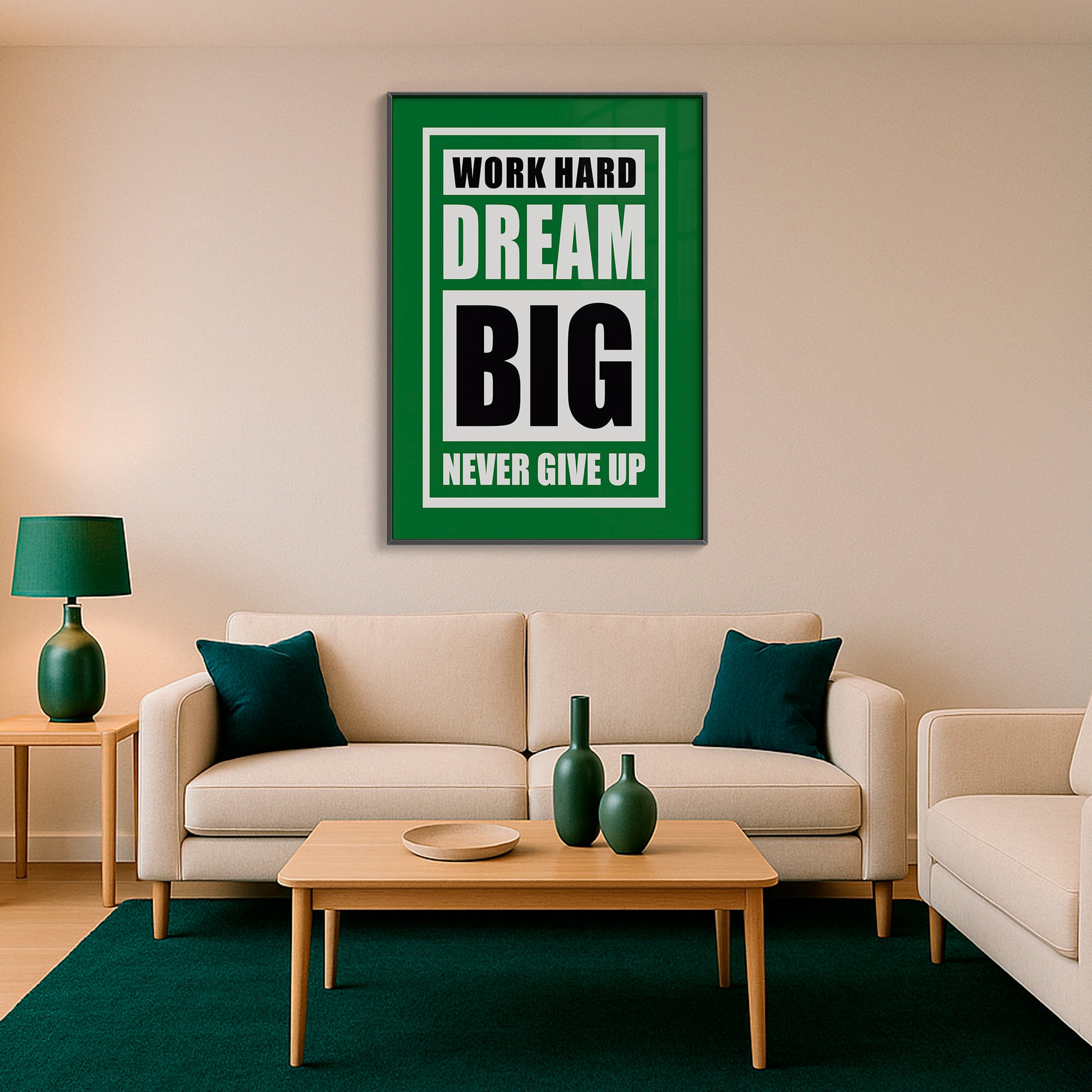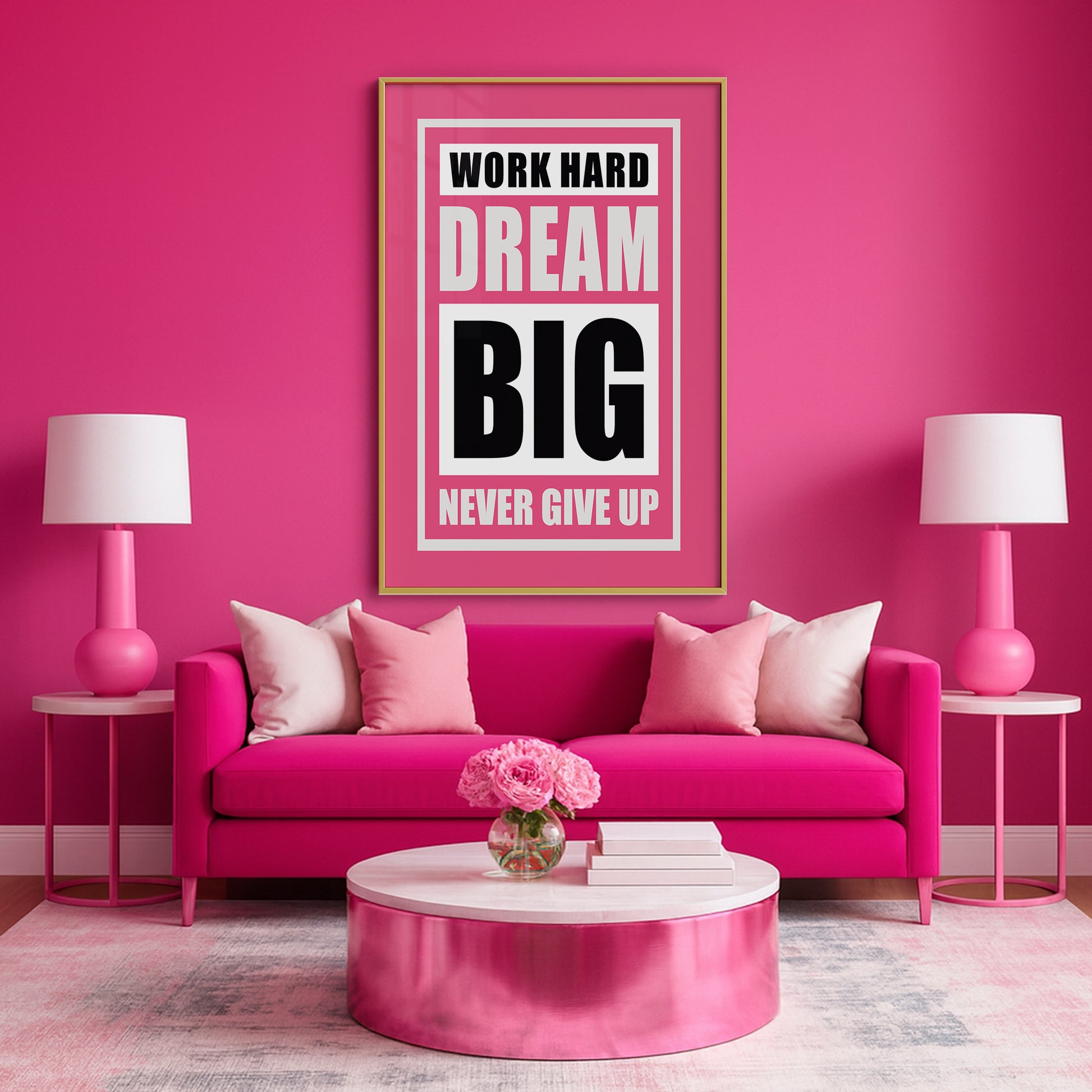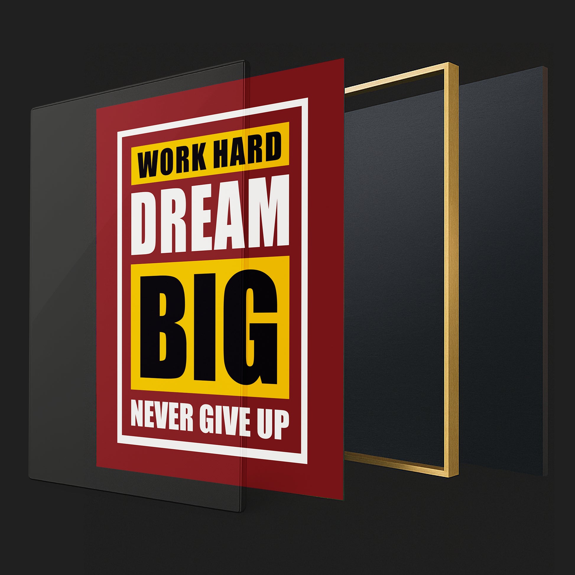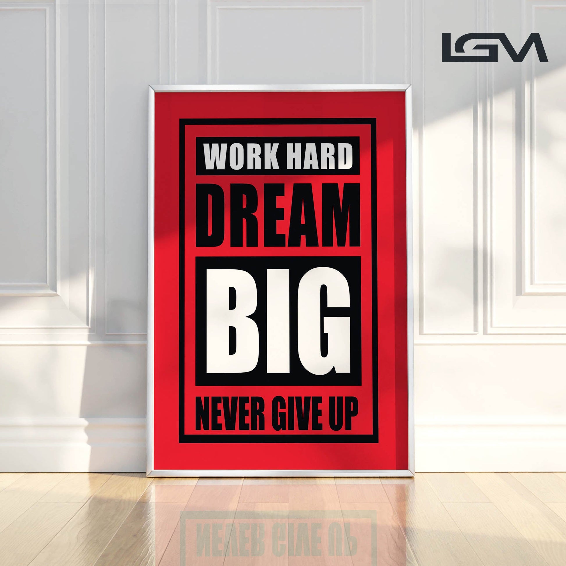 Success starts with grit, vision, and perseverance. This bold typography print delivers a powerful triple-shot of motivation to push you forward every single day. With its clean block lettering and commanding layout, it's a strong visual mantra for anyone chasing big goals.