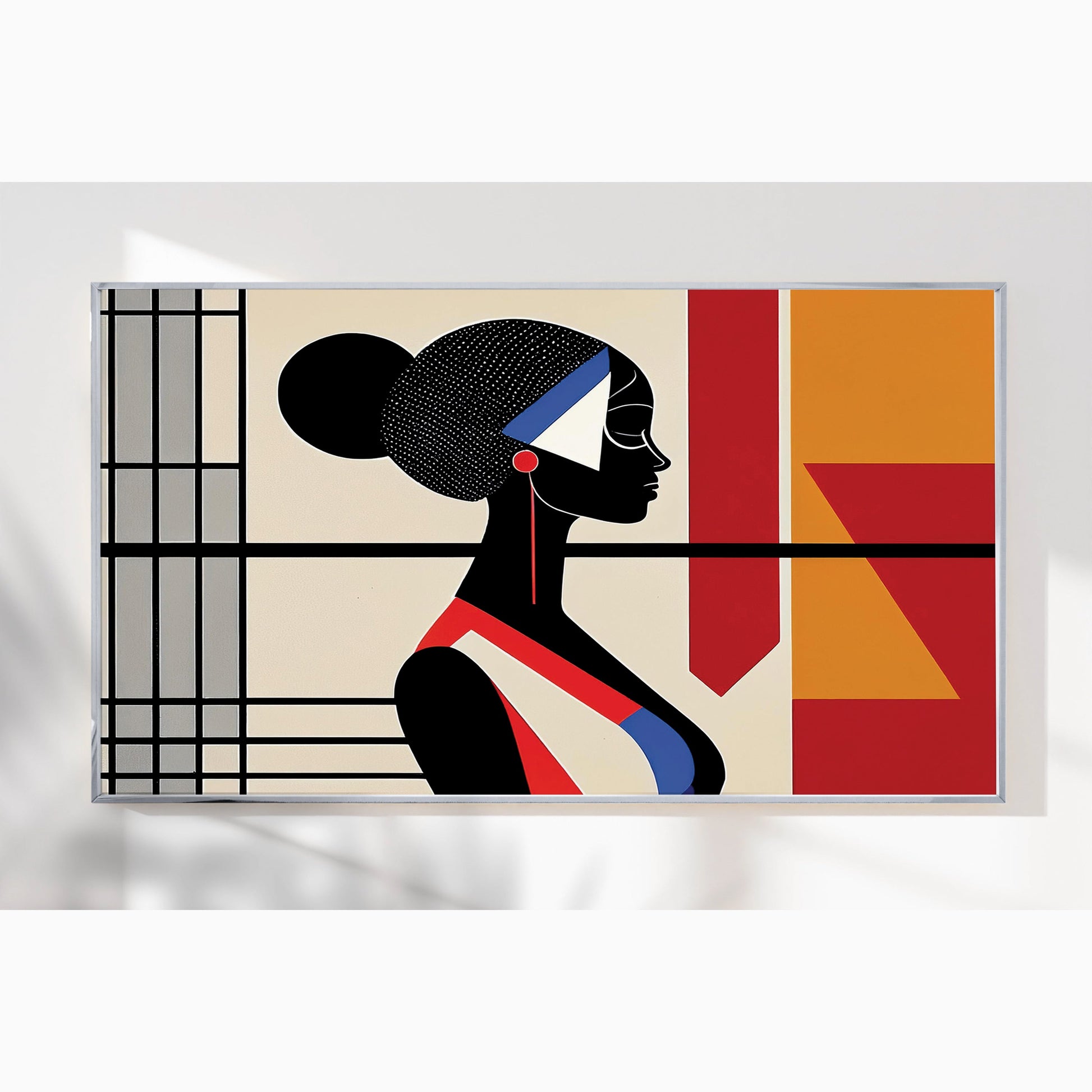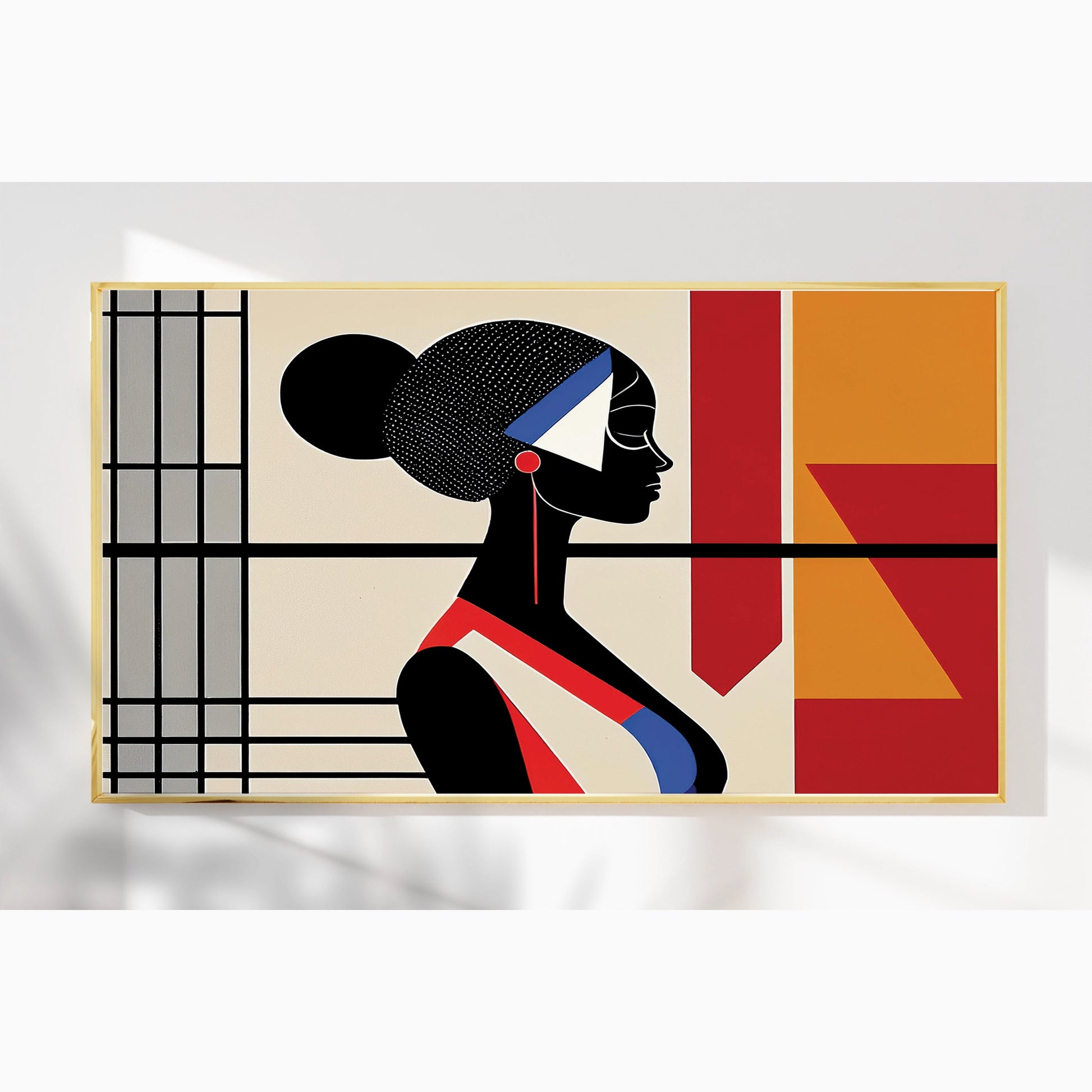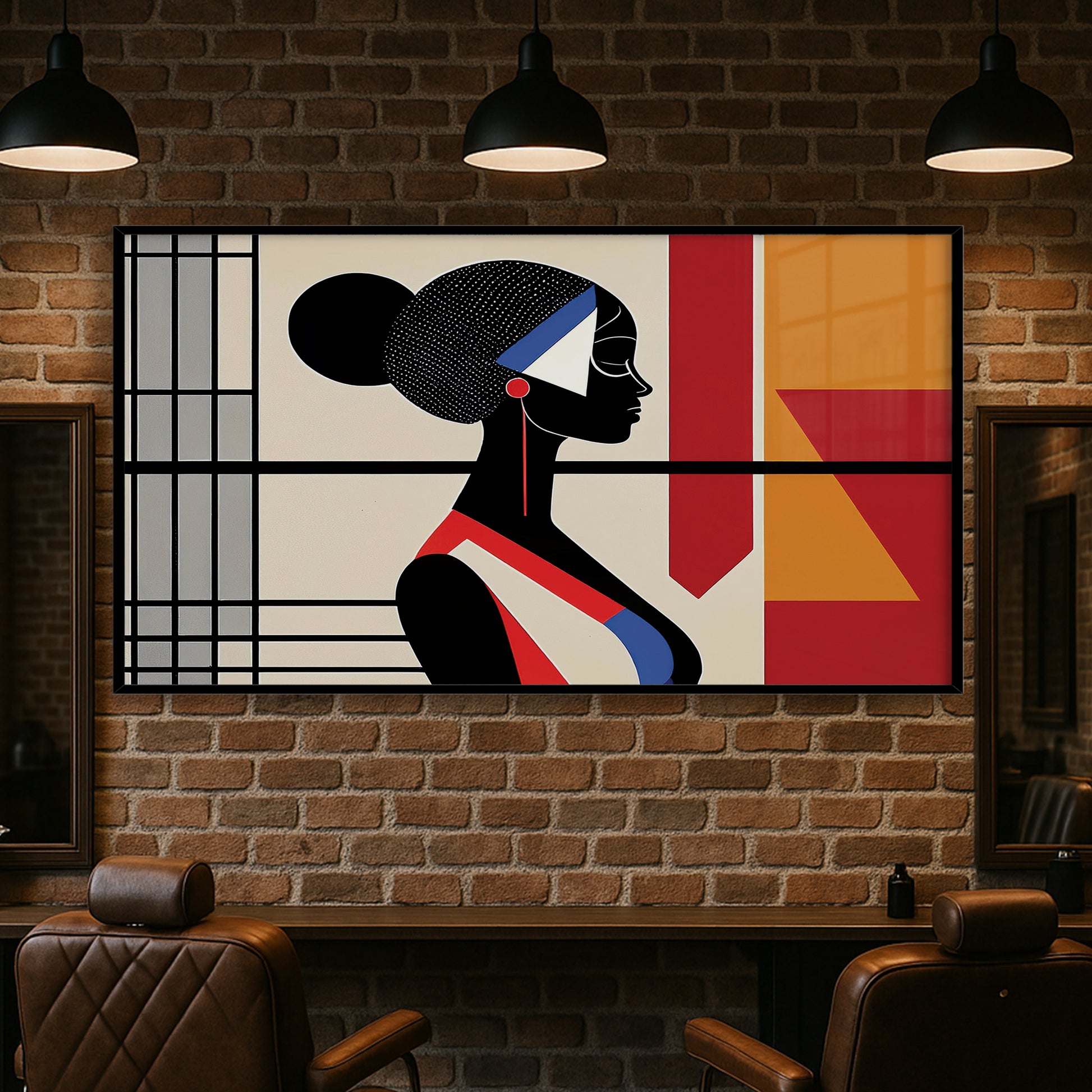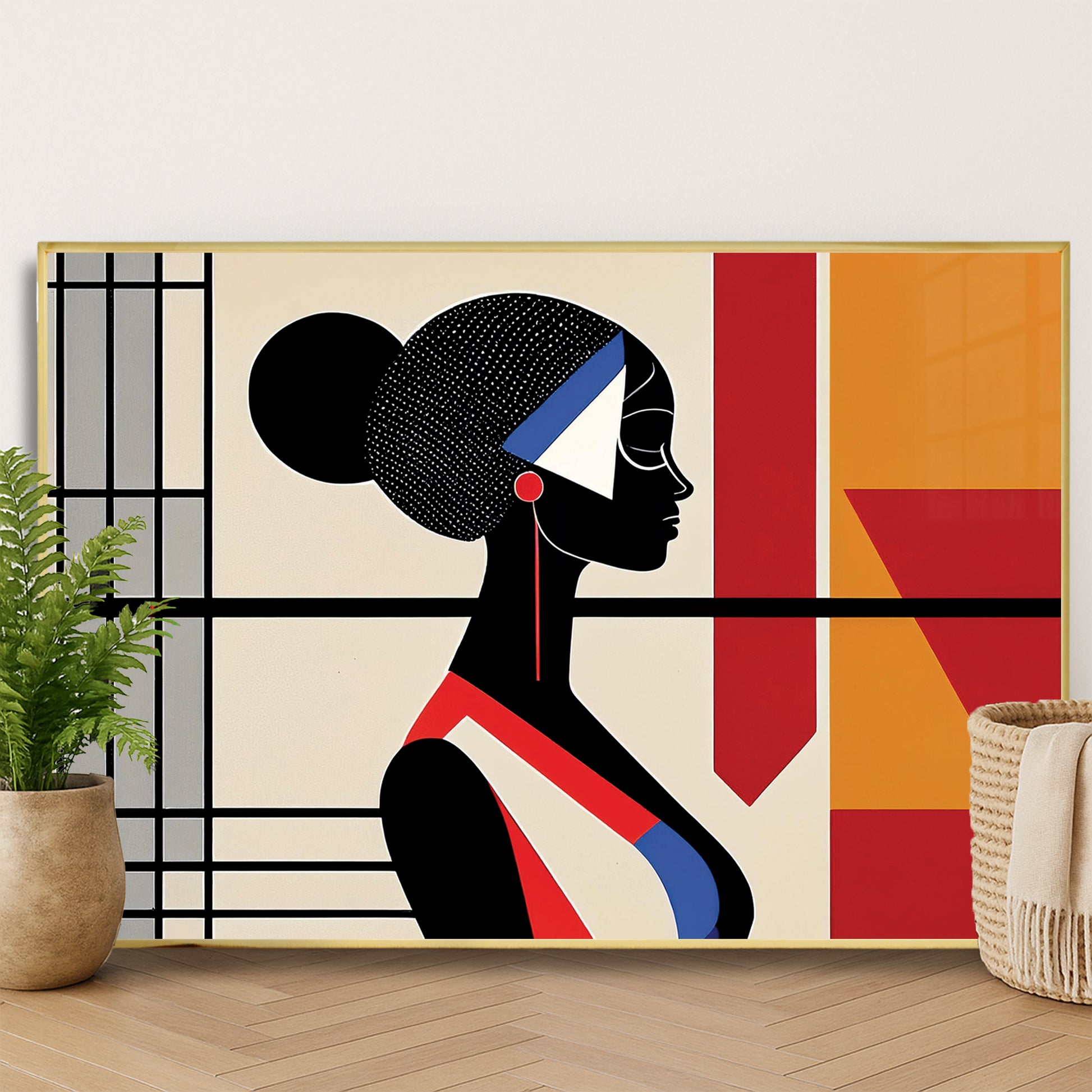 💃 Modern femininity takes form in this elegant celebration of curves, color, and clean design. The graceful figure, outlined in black, is complemented by bold geometric shapes that create a striking visual rhythm. A true conversation piece, this print balances simplicity and strength.