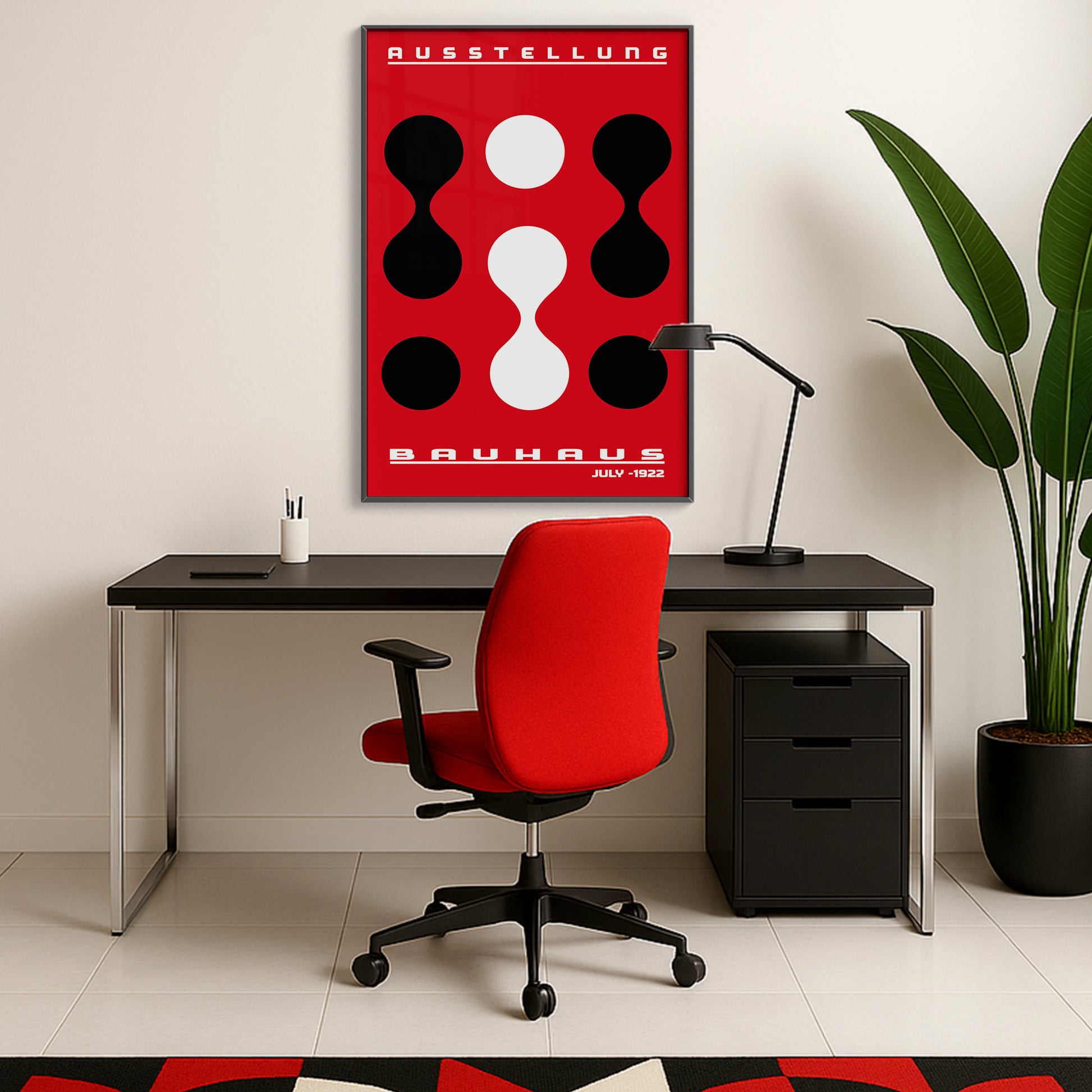 Celebrate the legacy of form and function with this bold Bauhaus-inspired print. Featuring a rhythmic interplay of geometric shapes, this minimalist design captures the iconic essence of 1920s modernism. Perfect for adding a punch of art-school cool to any creative space or contemporary interior.