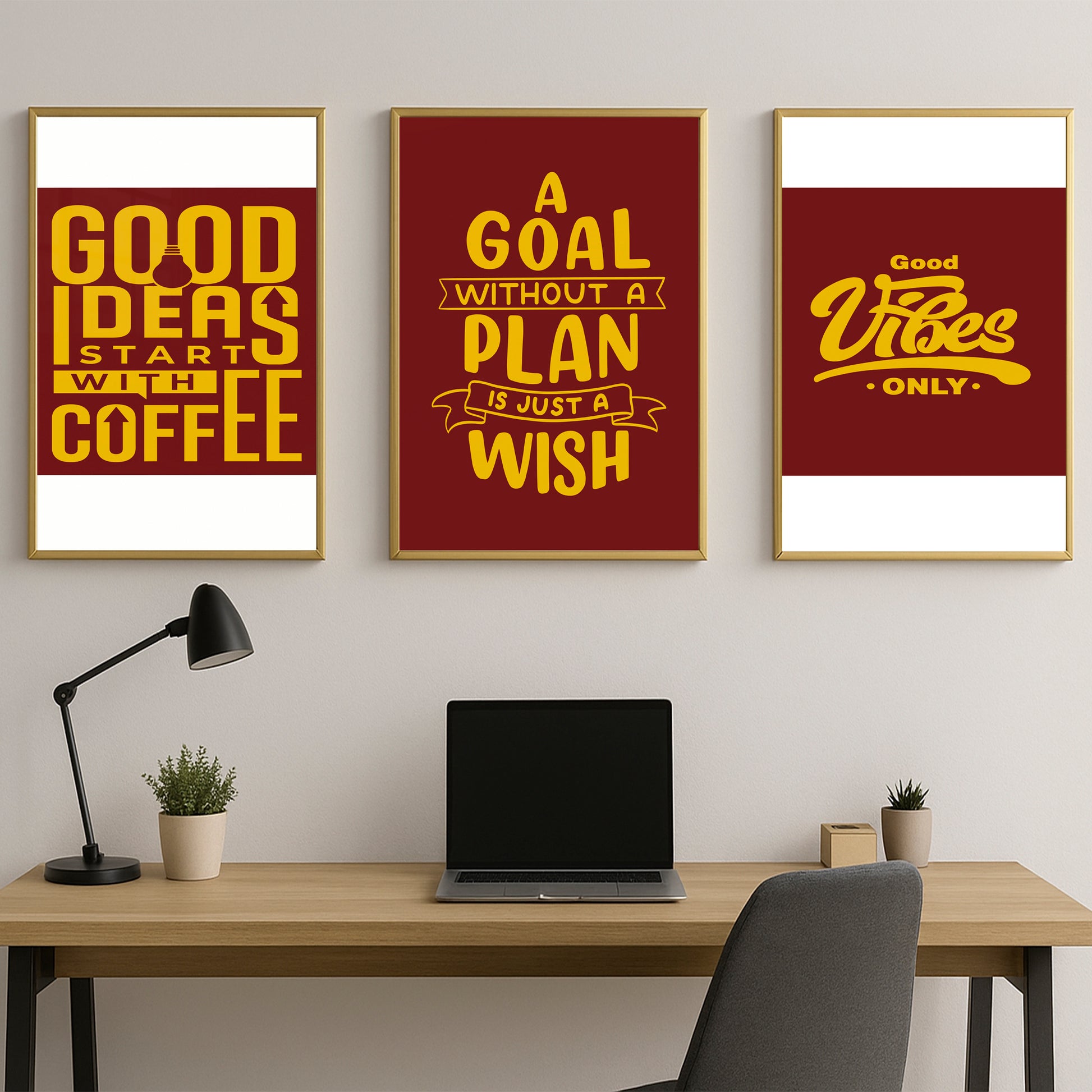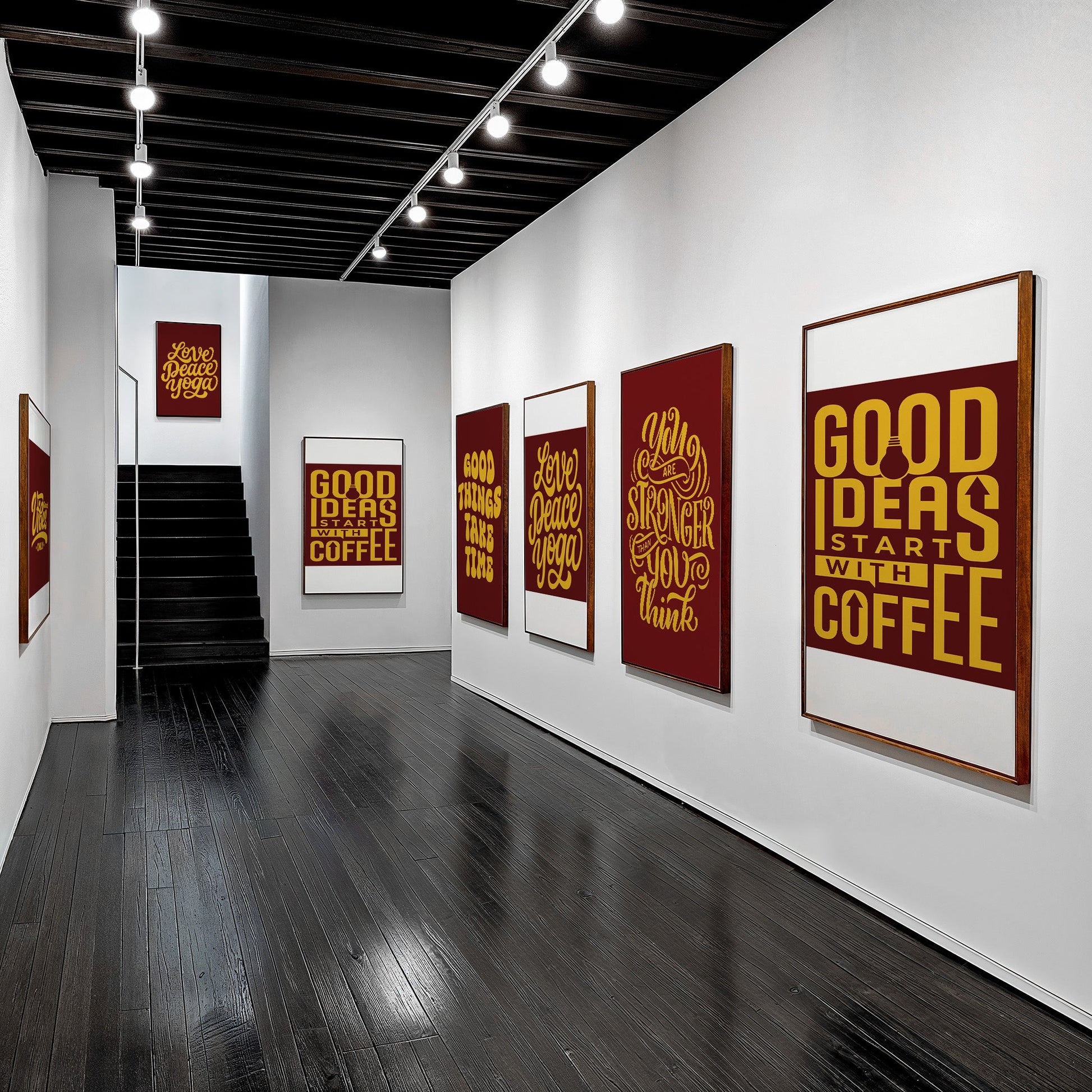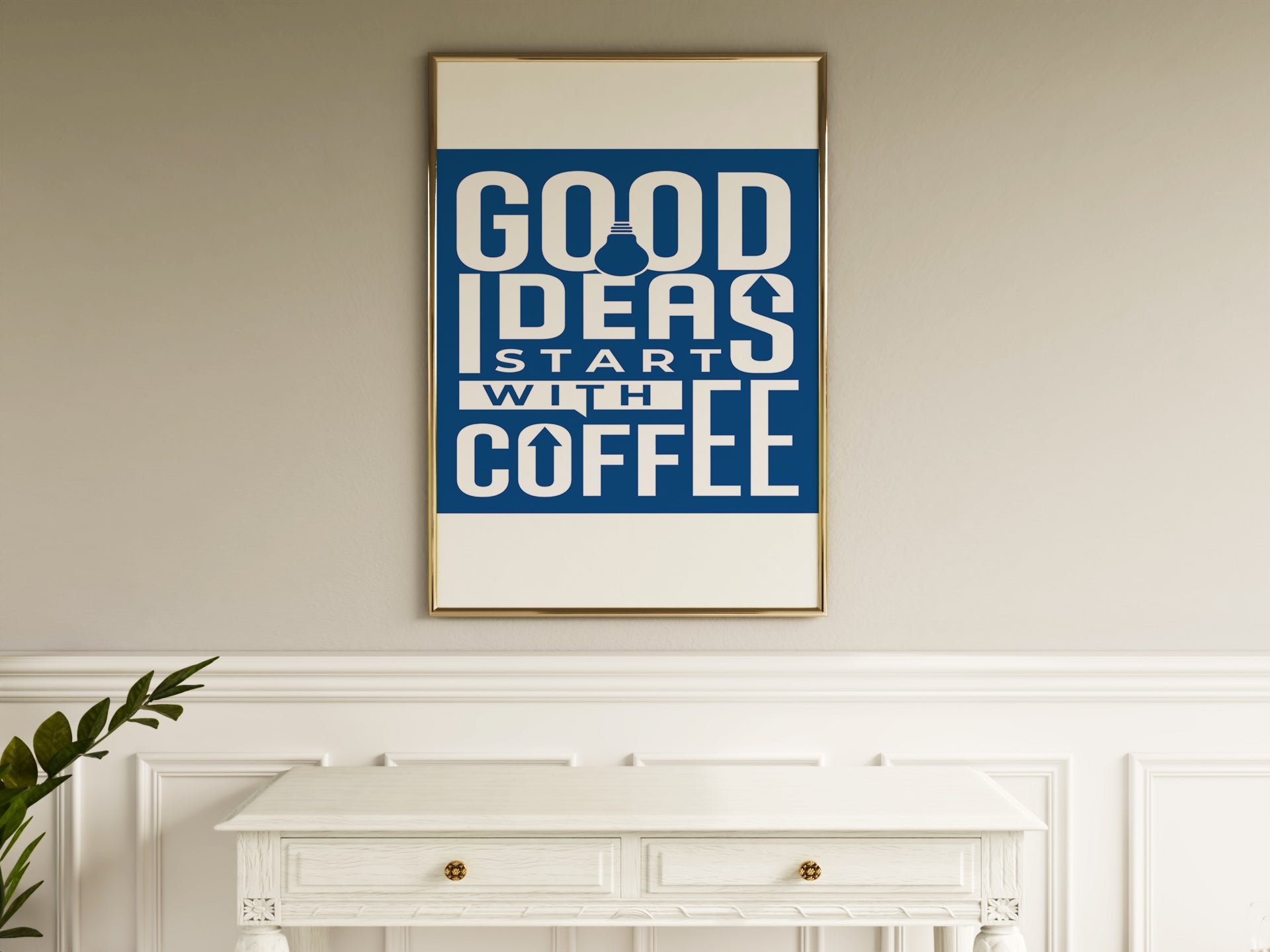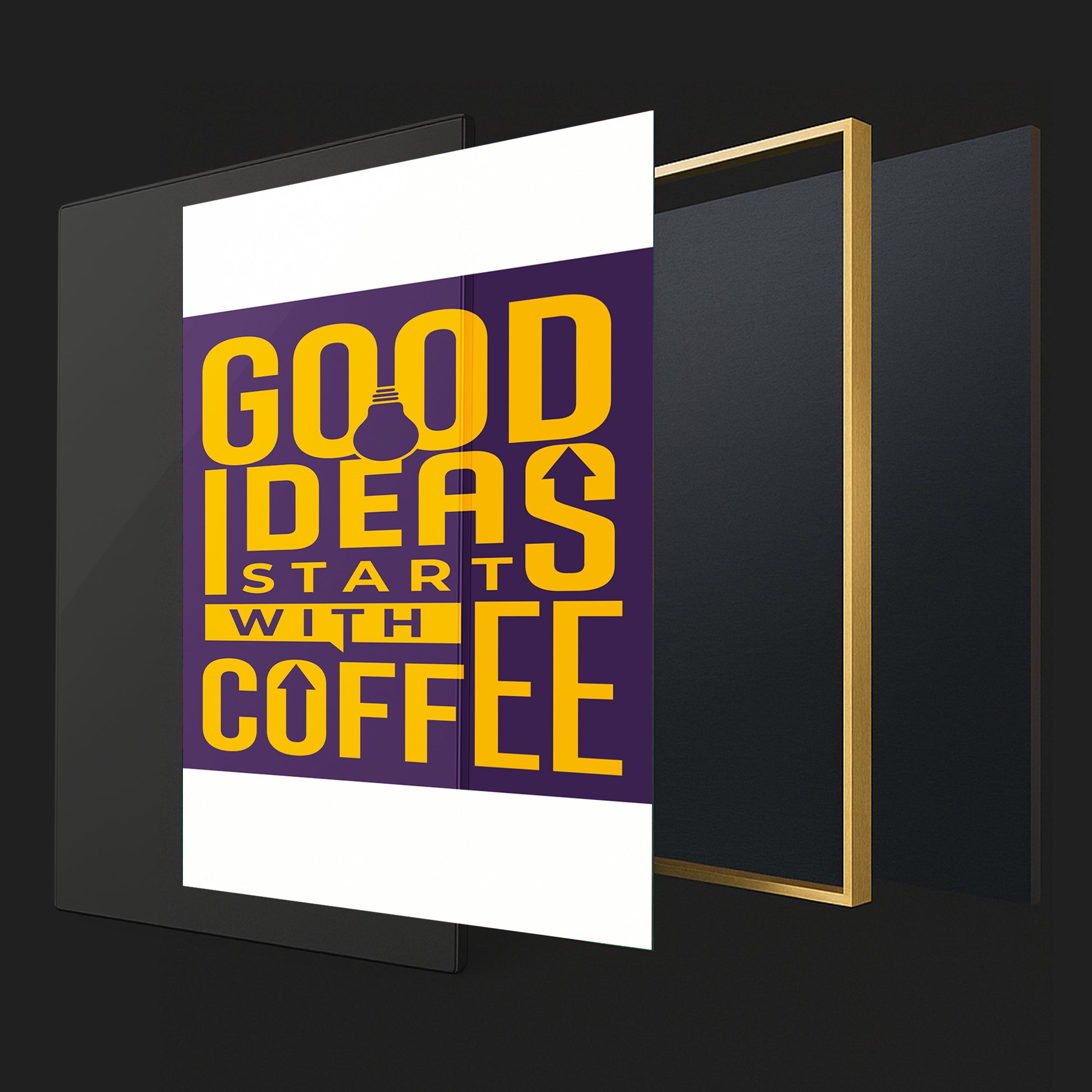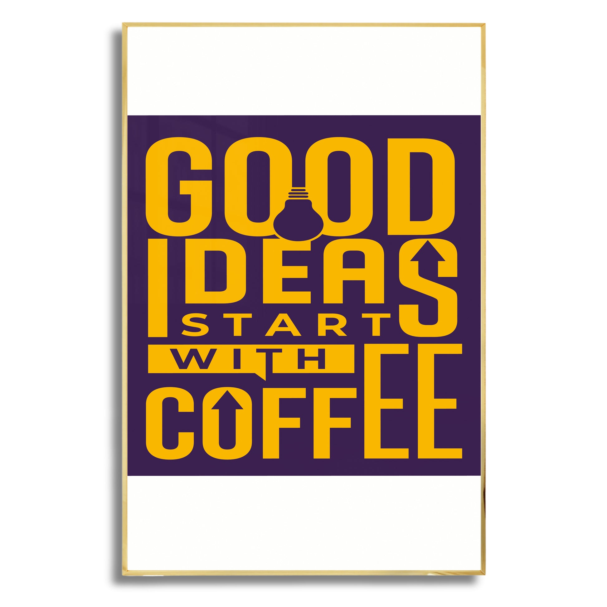 Kickstart your day with inspiration! This modern typography wall art is designed for coffee lovers and creative minds alike. The bold, high-contrast lettering pops against a vibrant background, delivering a daily reminder that great ideas often begin with a strong cup of coffee.