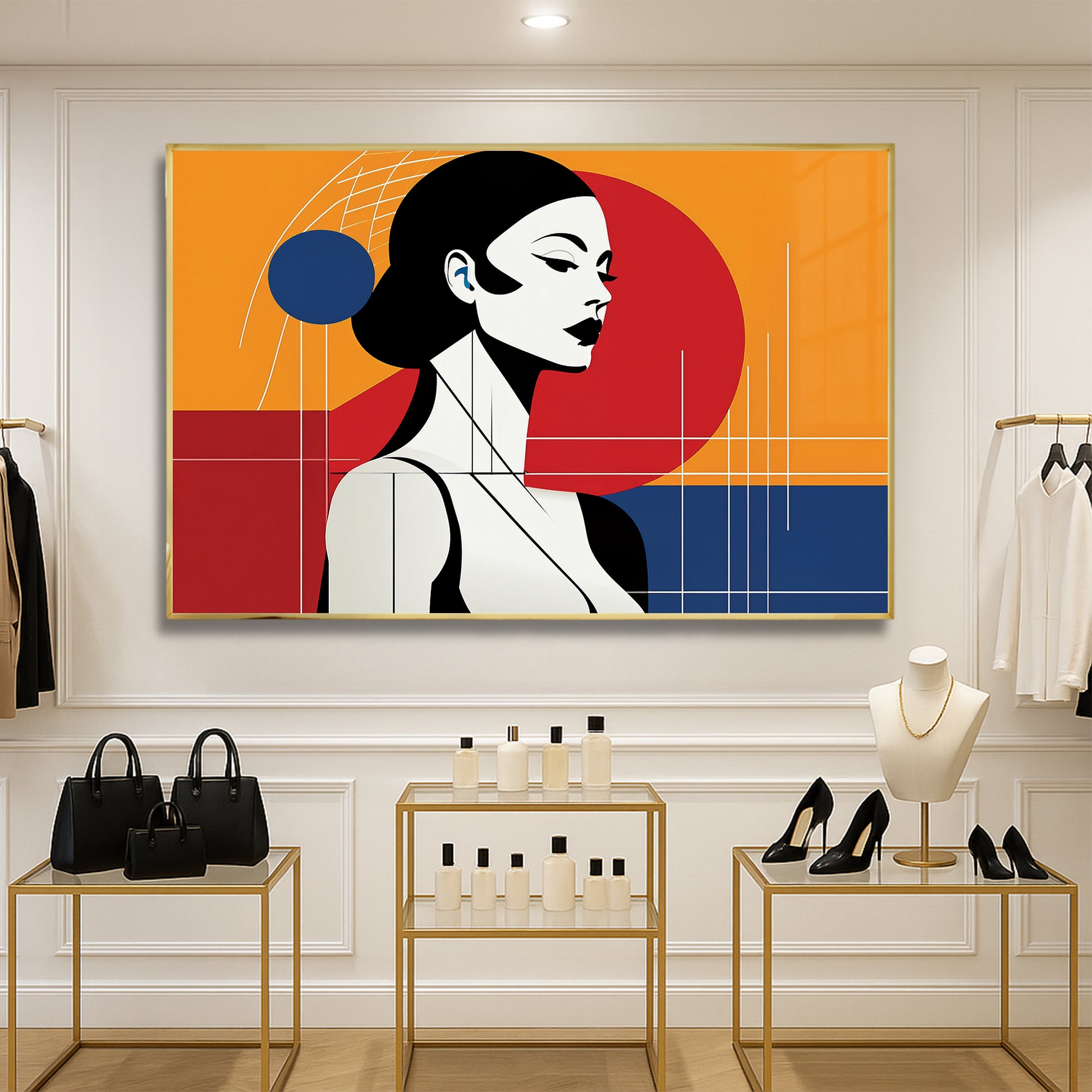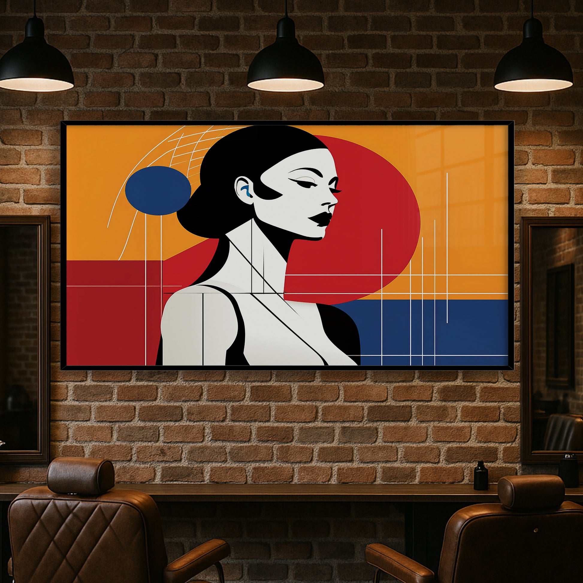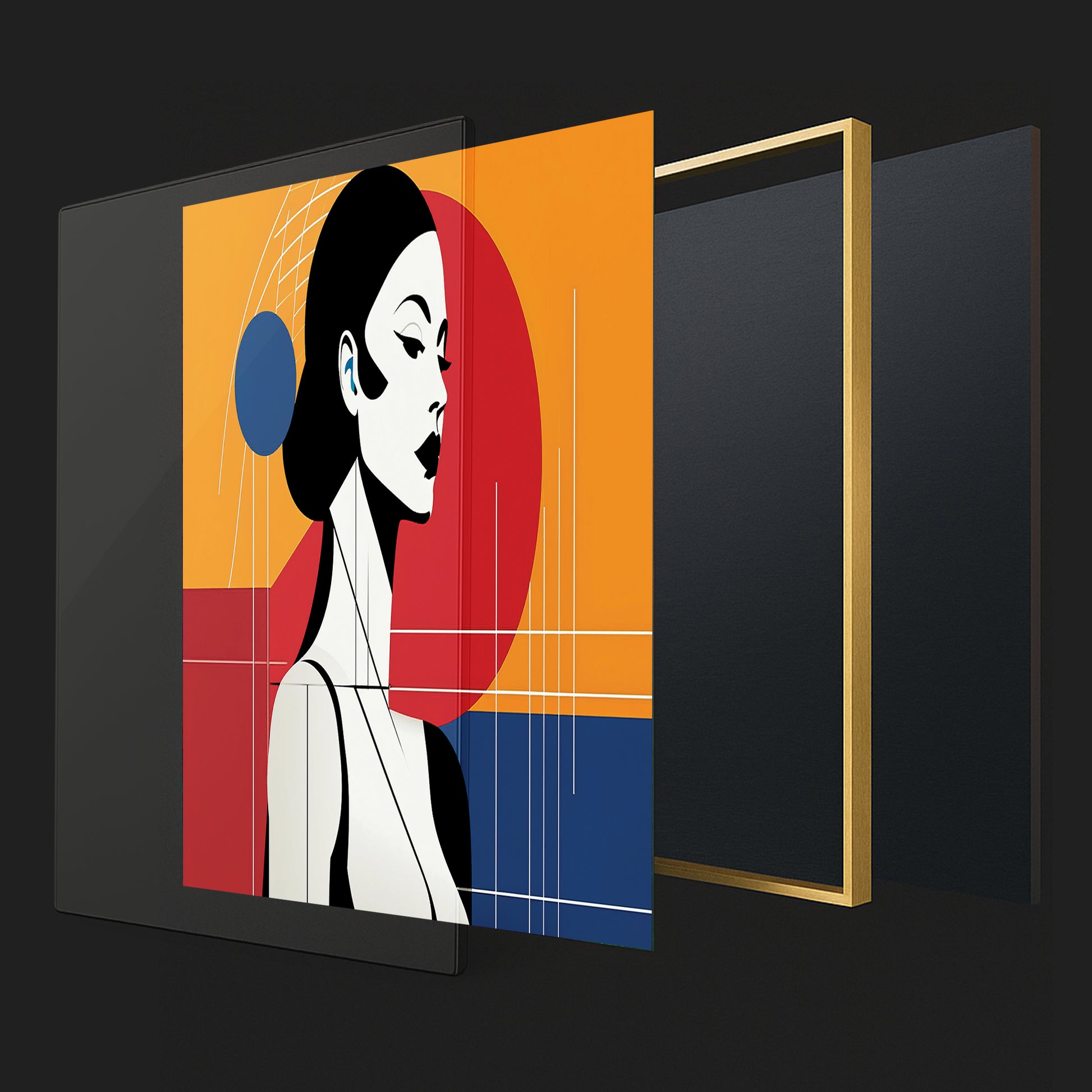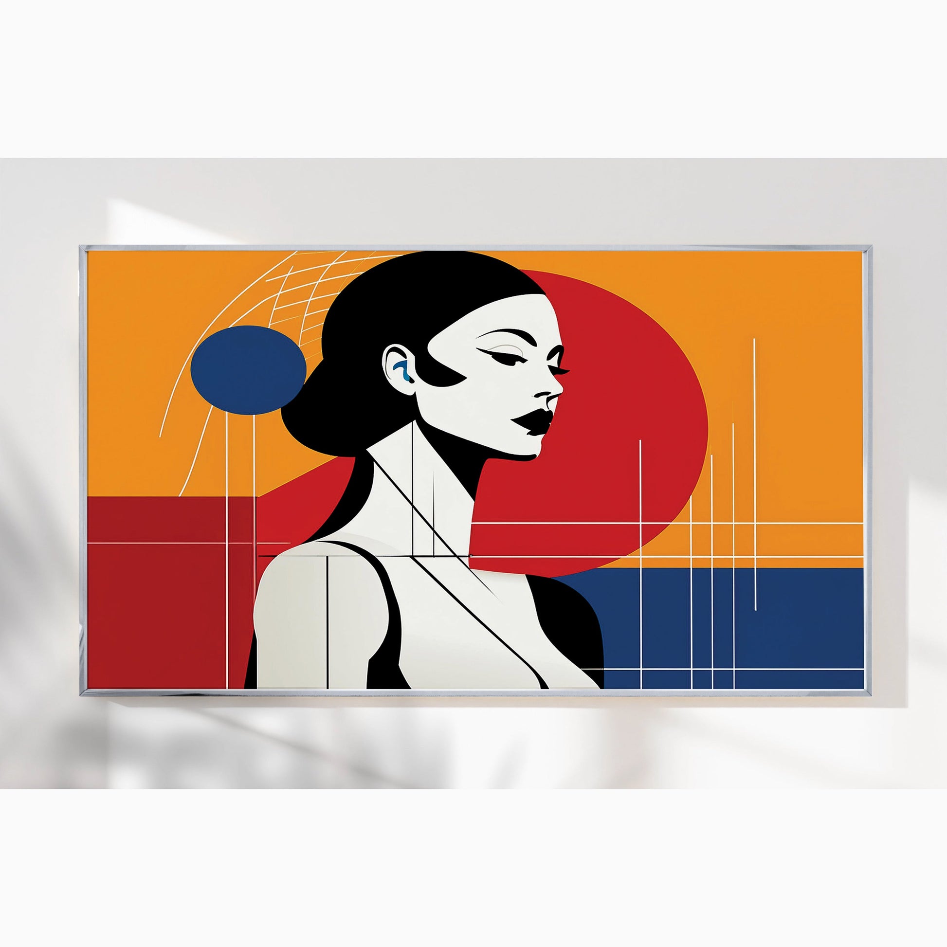 🖼️ A celebration of fluid elegance and structured energy, this abstract piece showcases a woman in movement, framed by a dynamic grid shapes and color. Her minimalist form and graceful posture channel poise, while the balanced layout invites harmony and curiosity into your space.