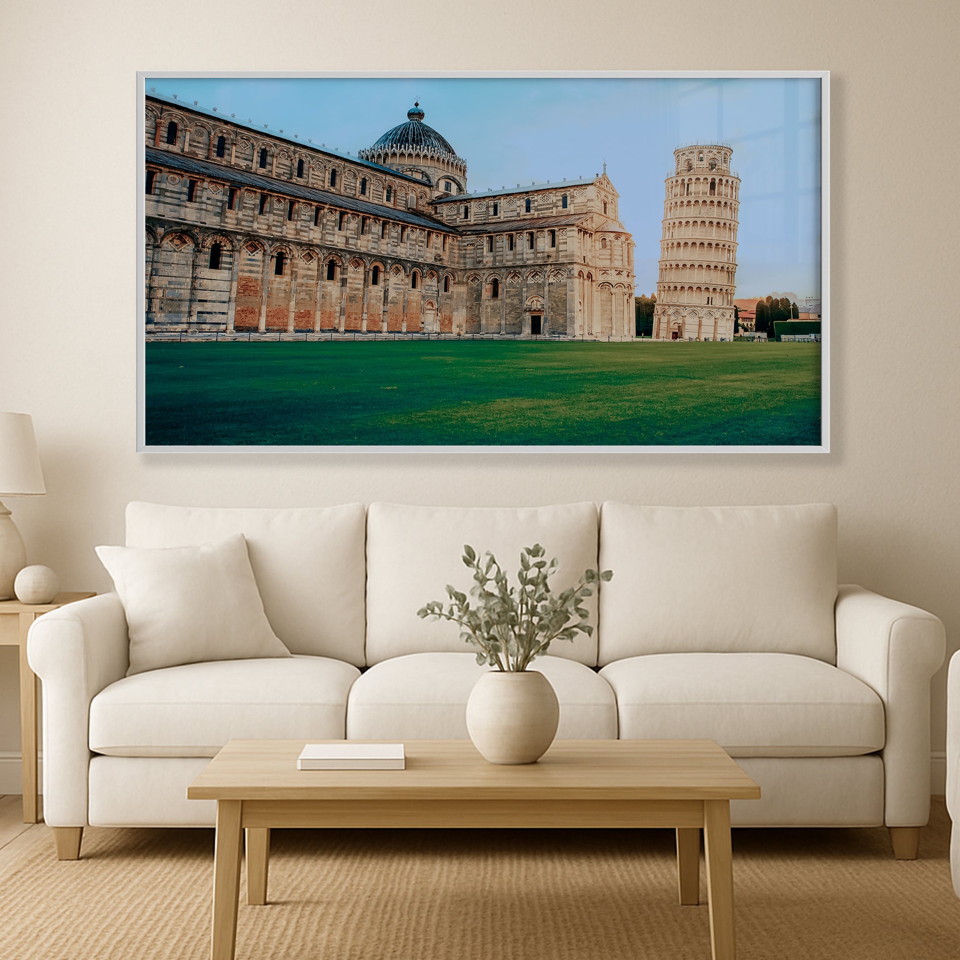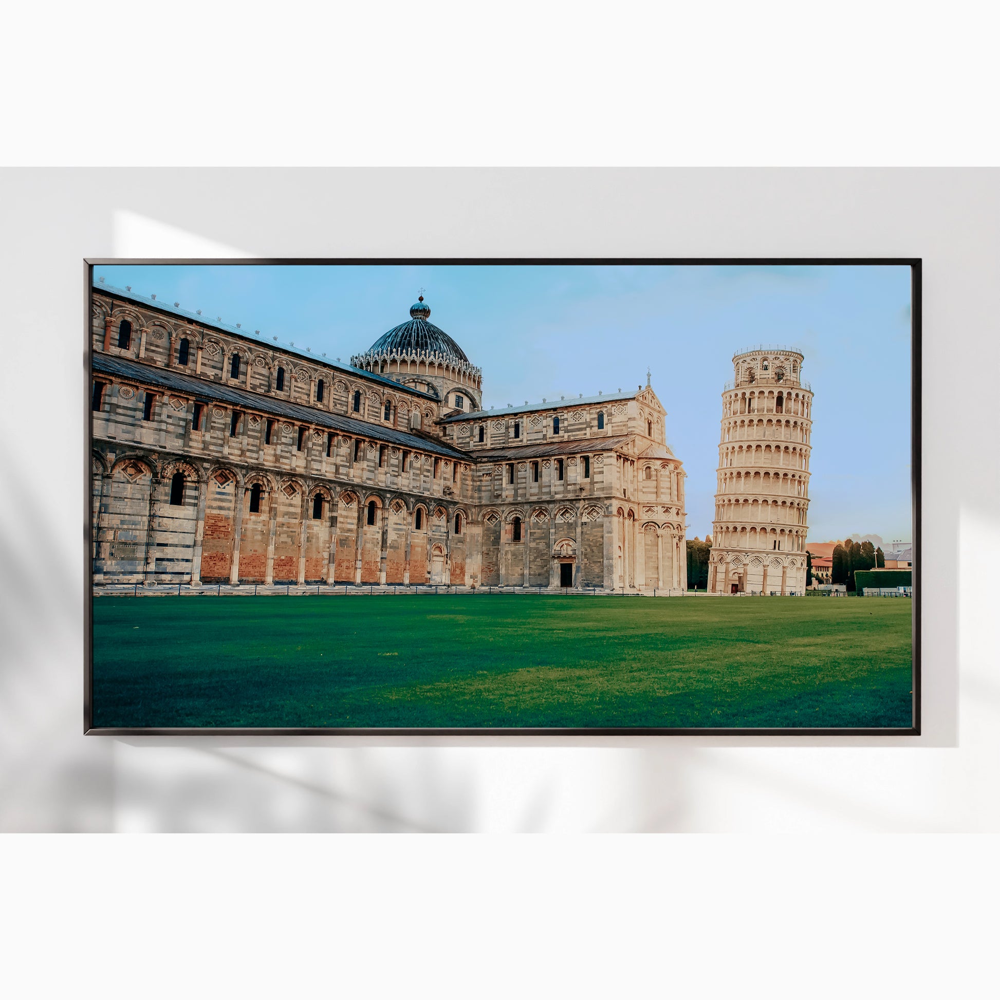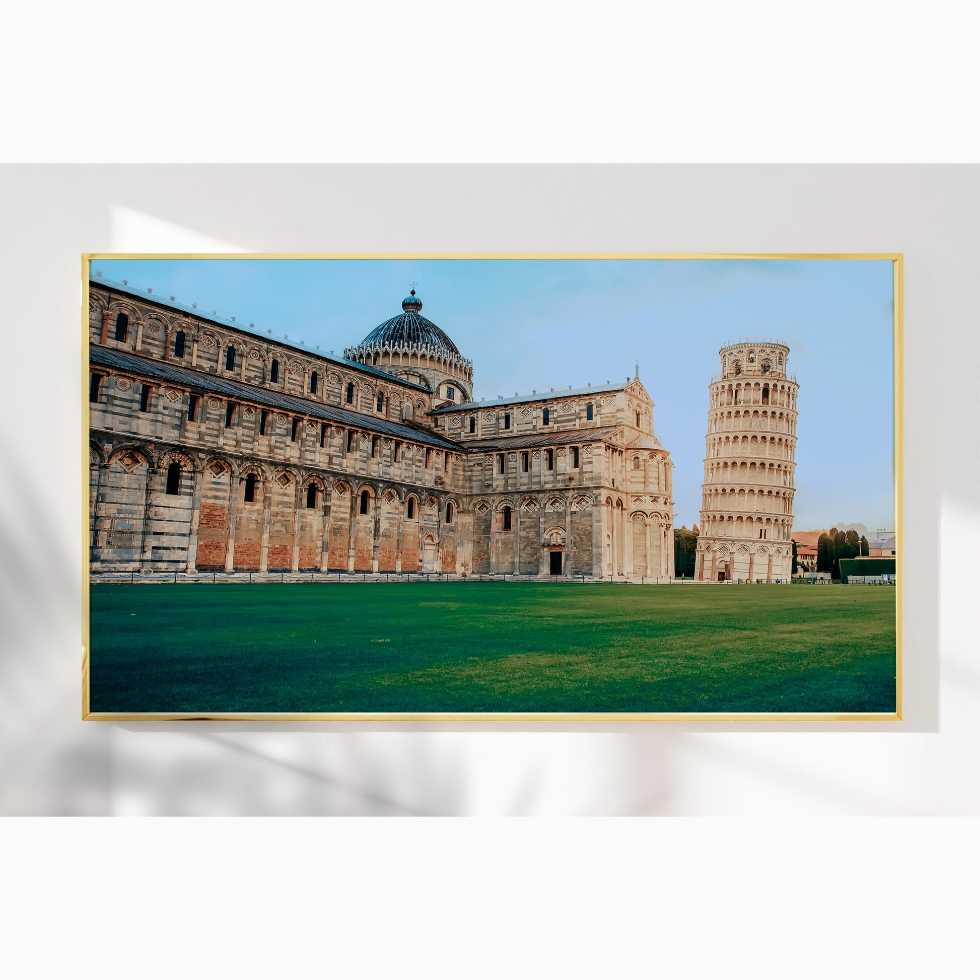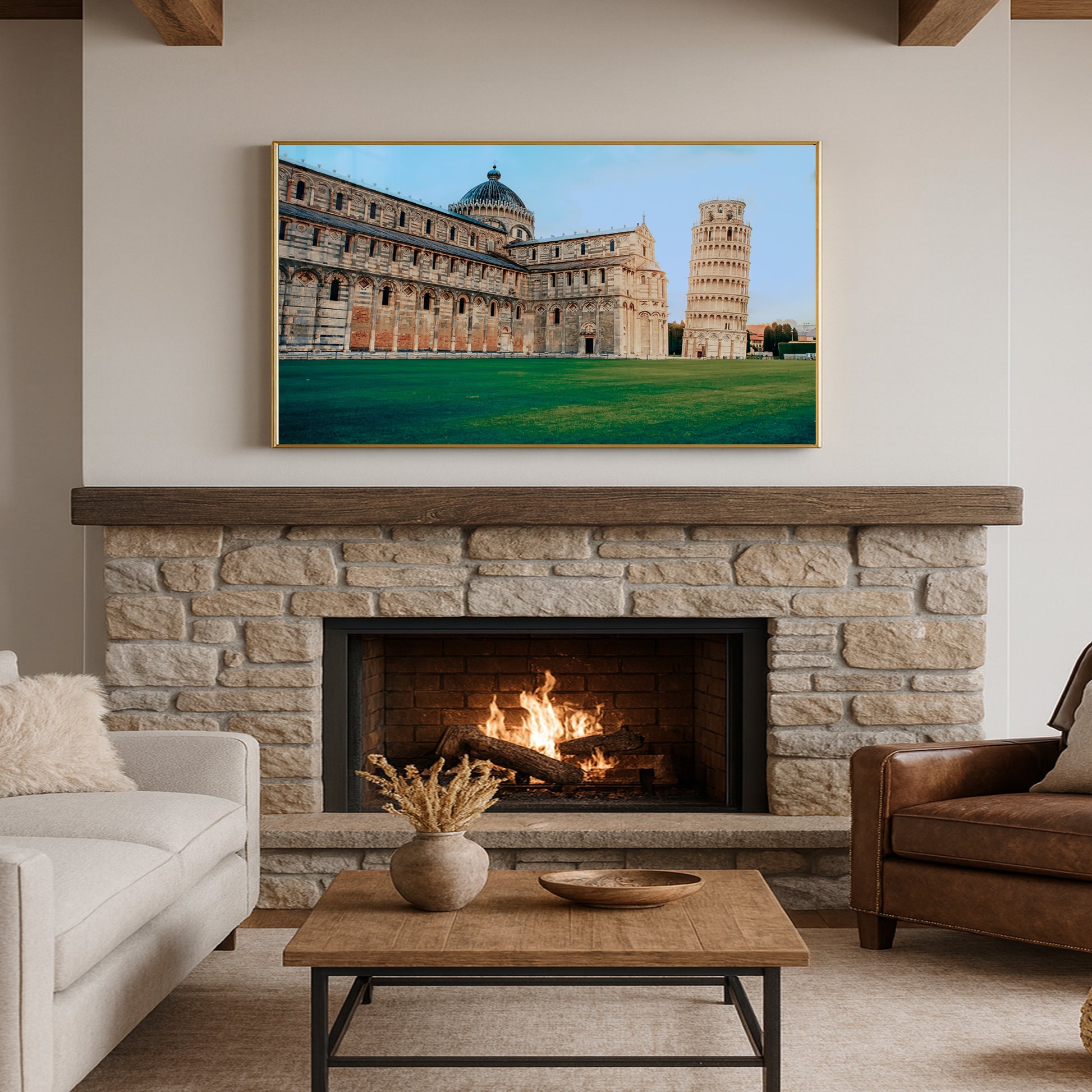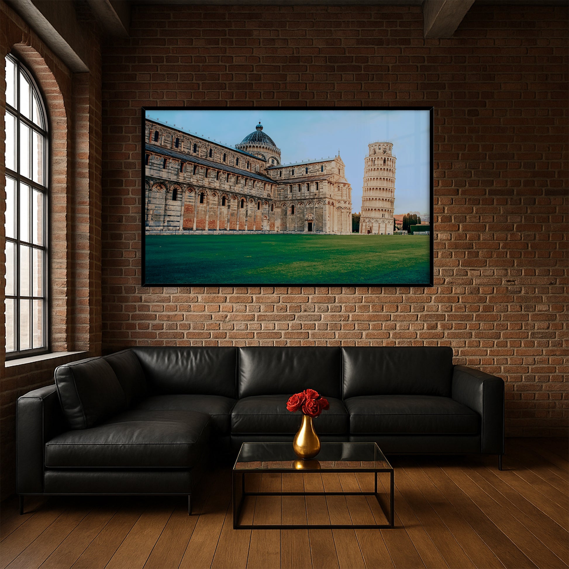 Capture the charm and architectural wonder of Italy with this striking wall art featuring the Leaning Tower of Pisa. Set against a serene blue sky, the iconic tilt of this historic bell tower is perfectly contrasted by the grandeur of the Pisa Cathedral beside it. A symbol of resilience, beauty, and curious engineering, this piece brings a touch of Europe’s timeless elegance into your space.