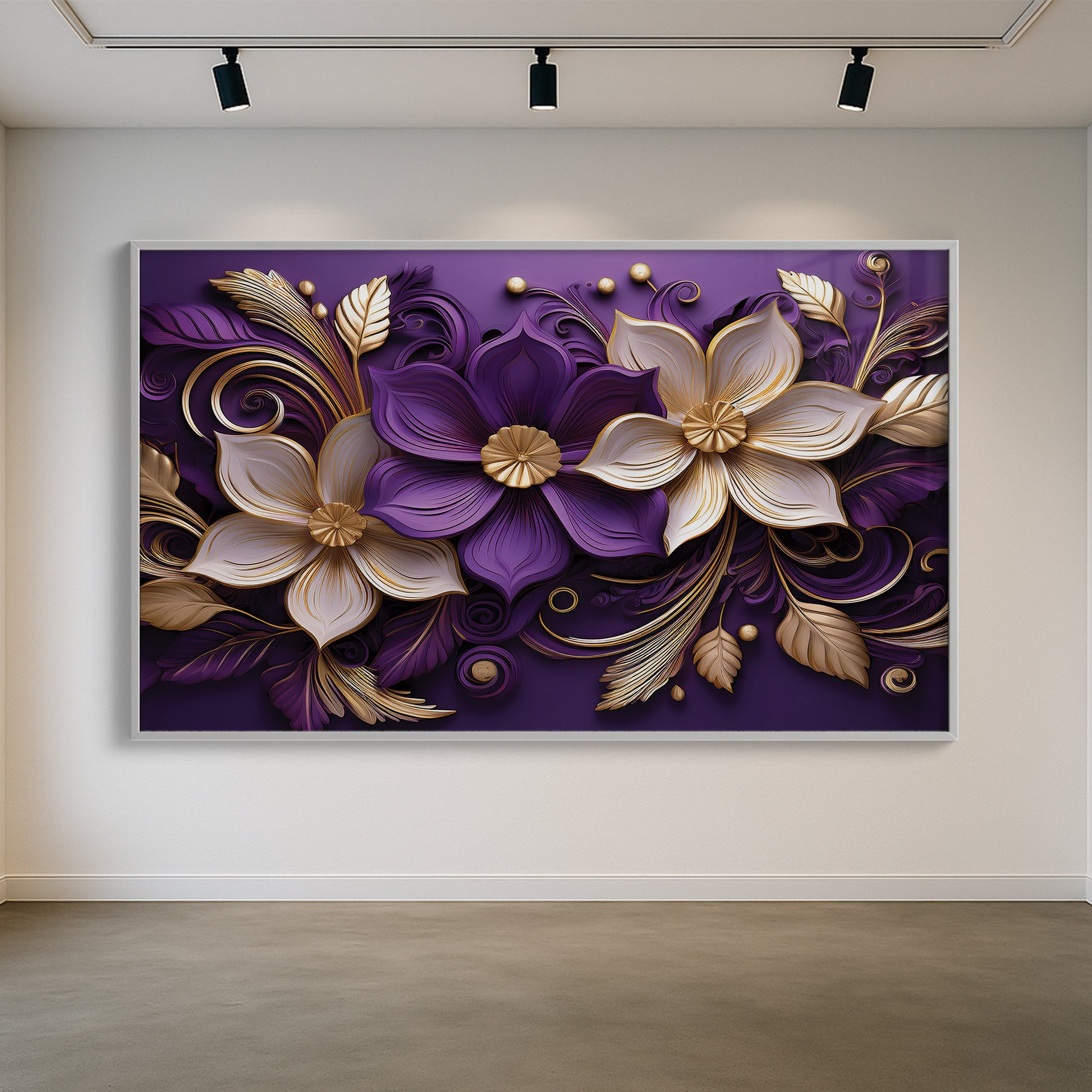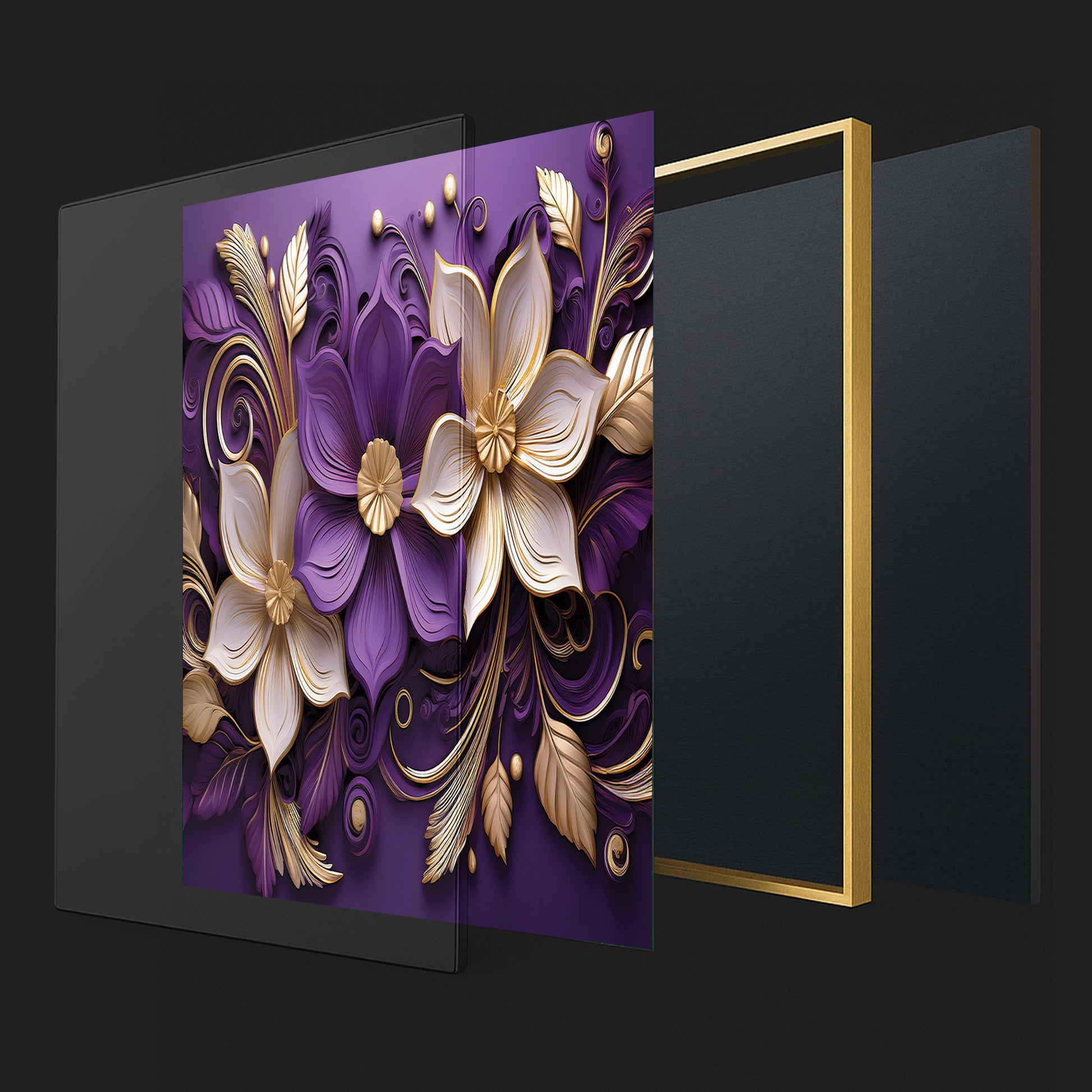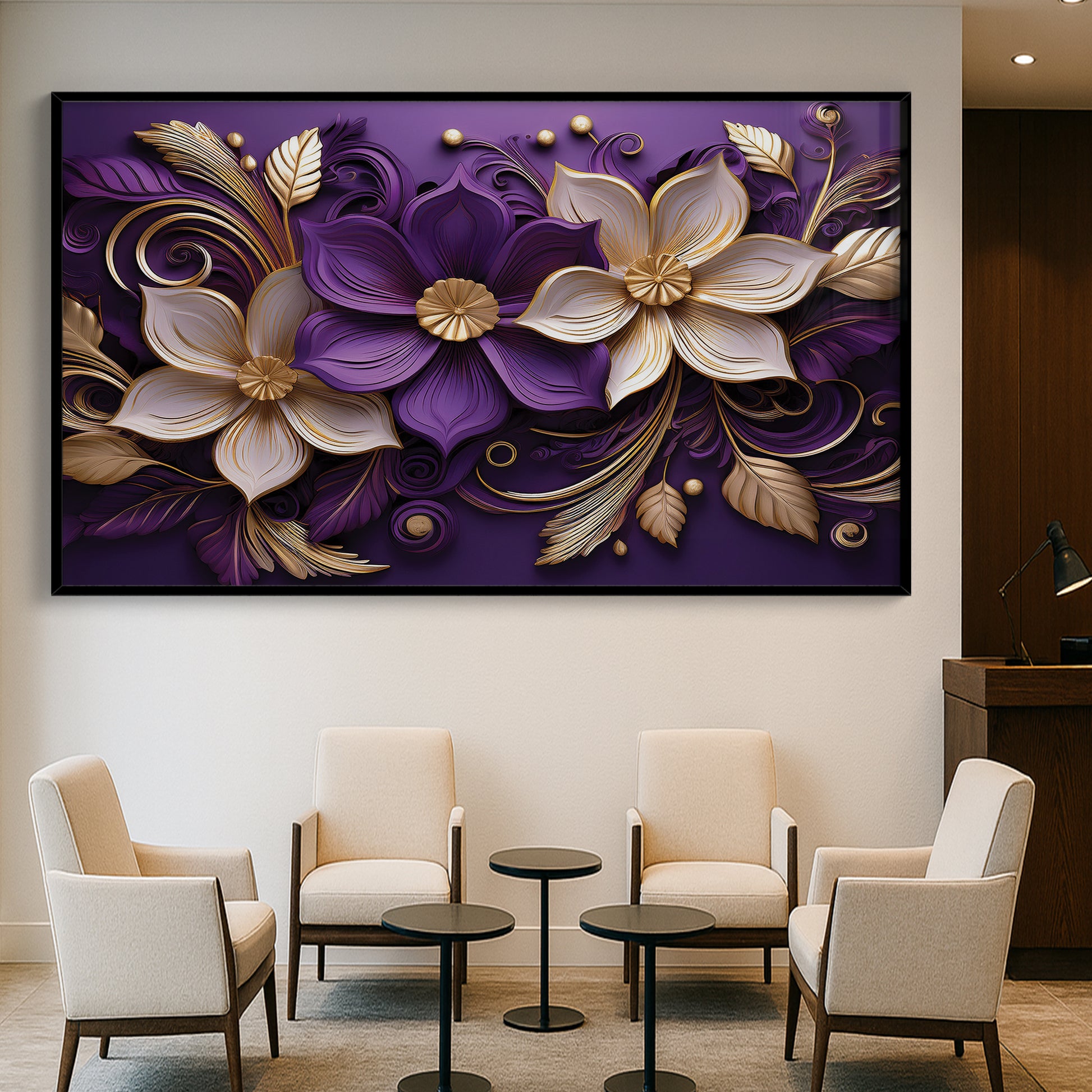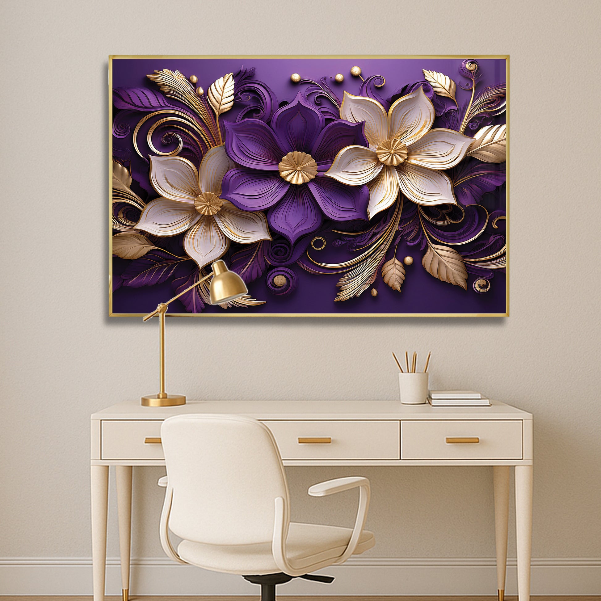 Transform your walls with this Purple & Gold Floral Metal Framed Wall Art, a stunning blend of deep royal purple petals and radiant golden accents. The luxurious design adds richness and depth, making it a perfect statement piece for modern living rooms, bedrooms, or office spaces. Crafted with precision and framed in sleek metal, this artwork offers timeless sophistication that enhances any décor style.