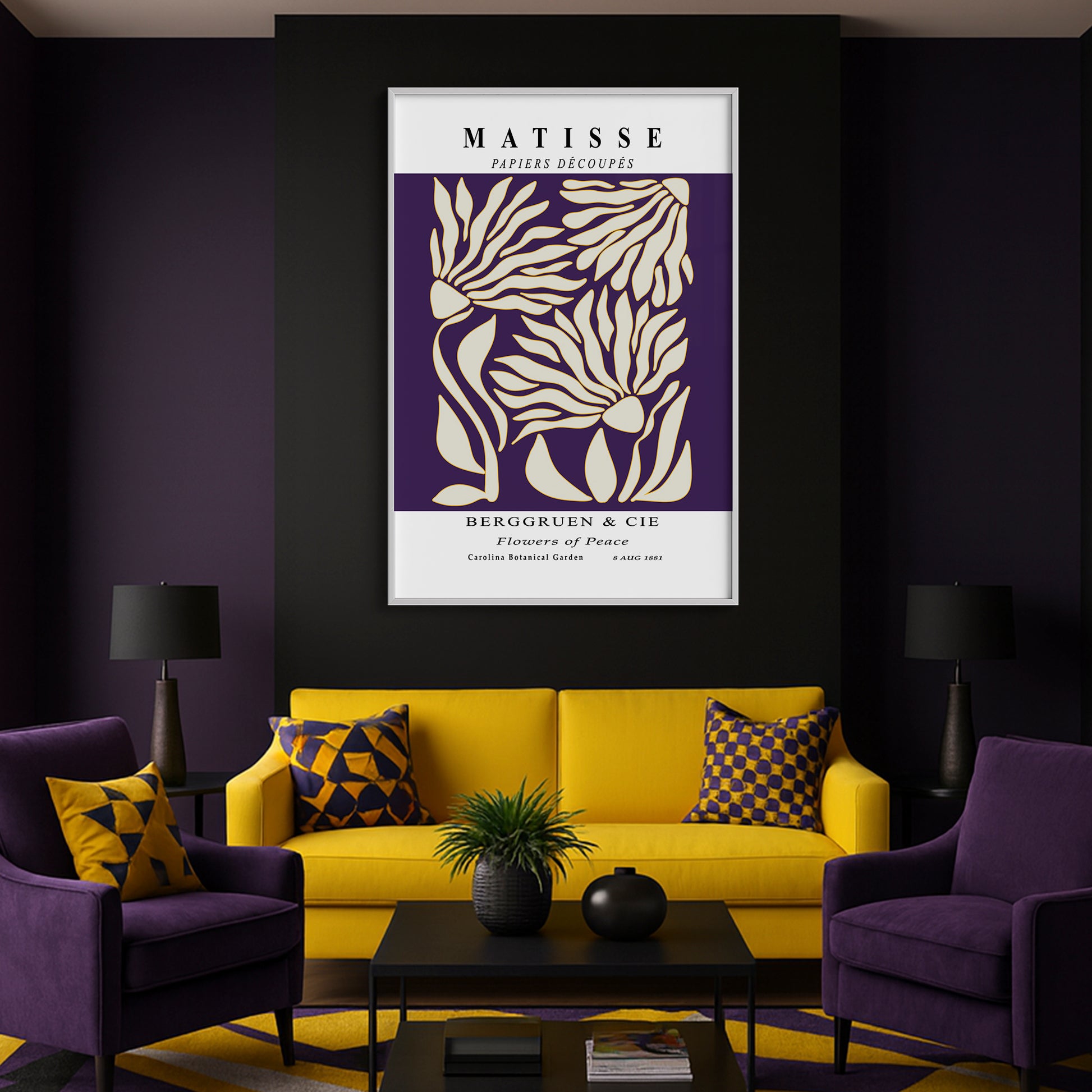 Artwork Color: Black / S: 50x70cm / 19x27in / Purple and Yellow