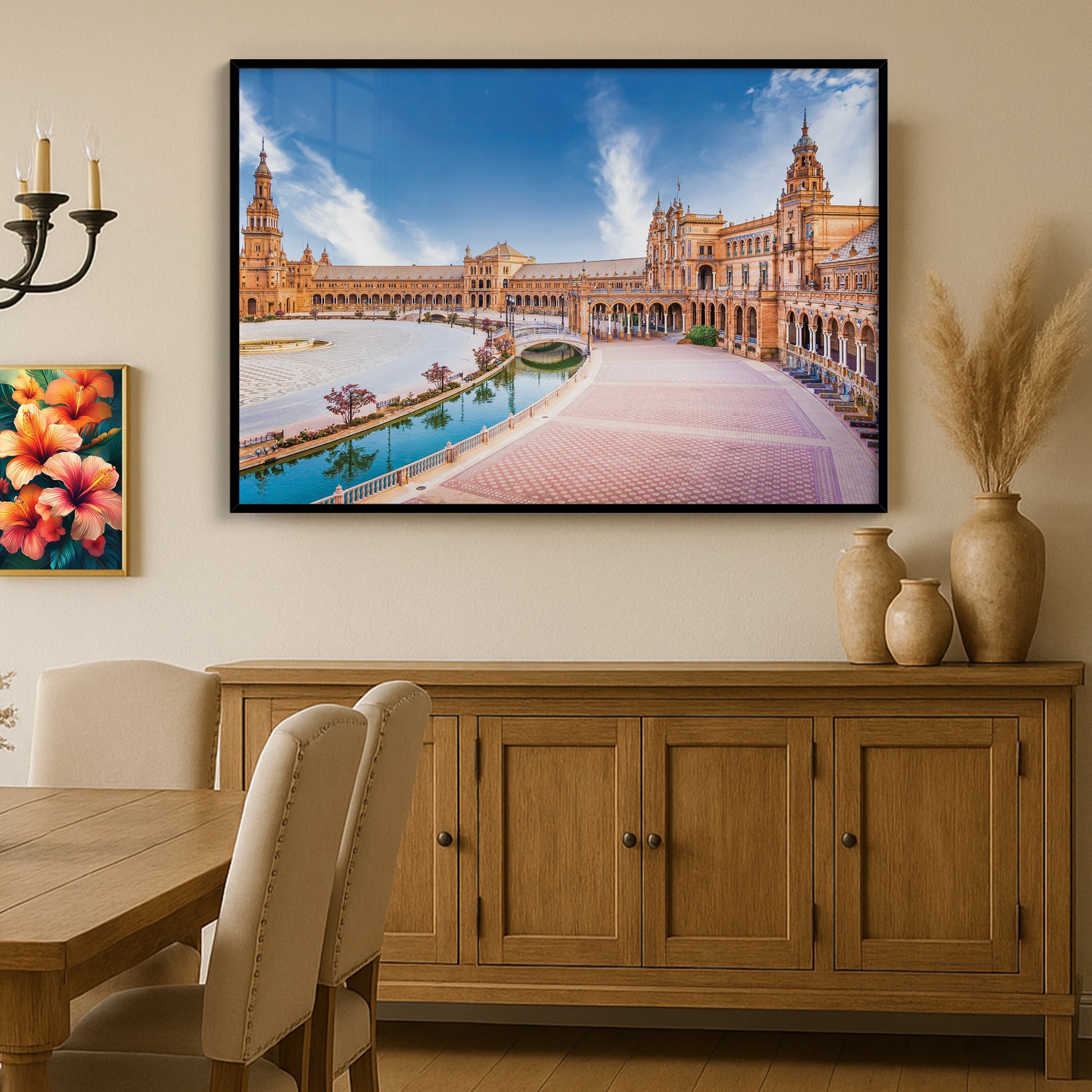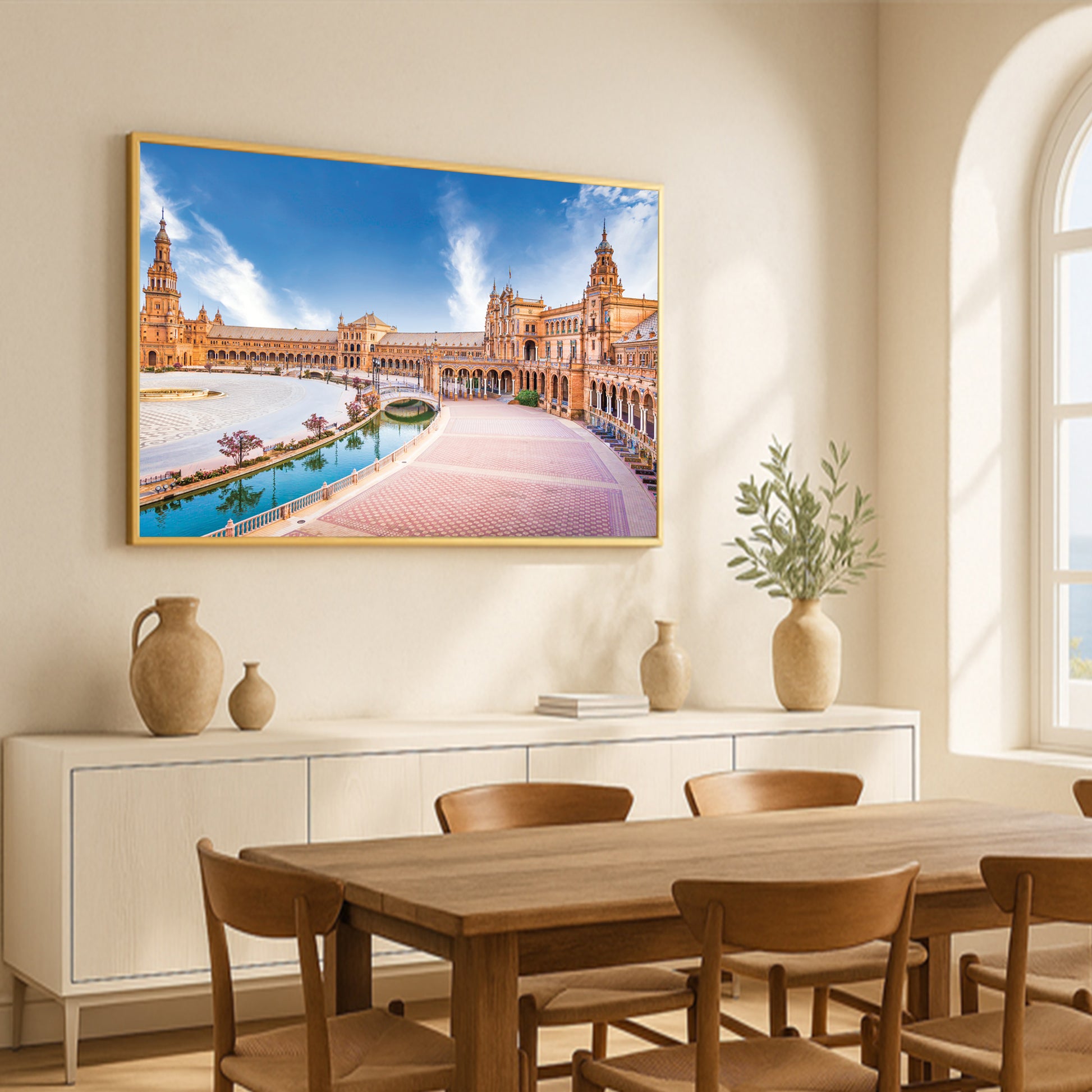 Step into the grandeur of Plaza de España, one of Seville’s most iconic landmarks. This stunning semi-circular plaza, built for the Ibero-American Exposition of 1929, showcases a blend of Renaissance Revival and Moorish Revival architectural styles.