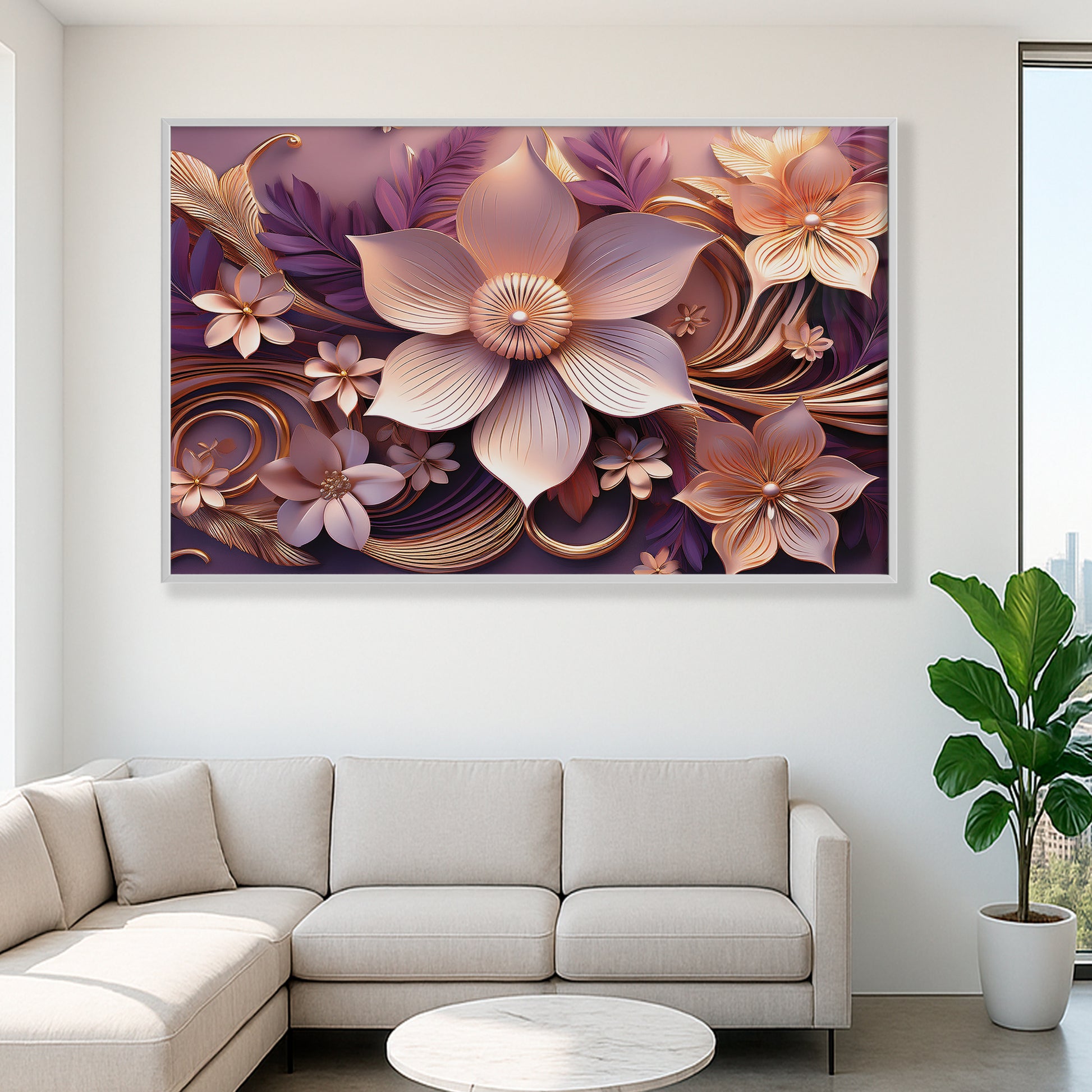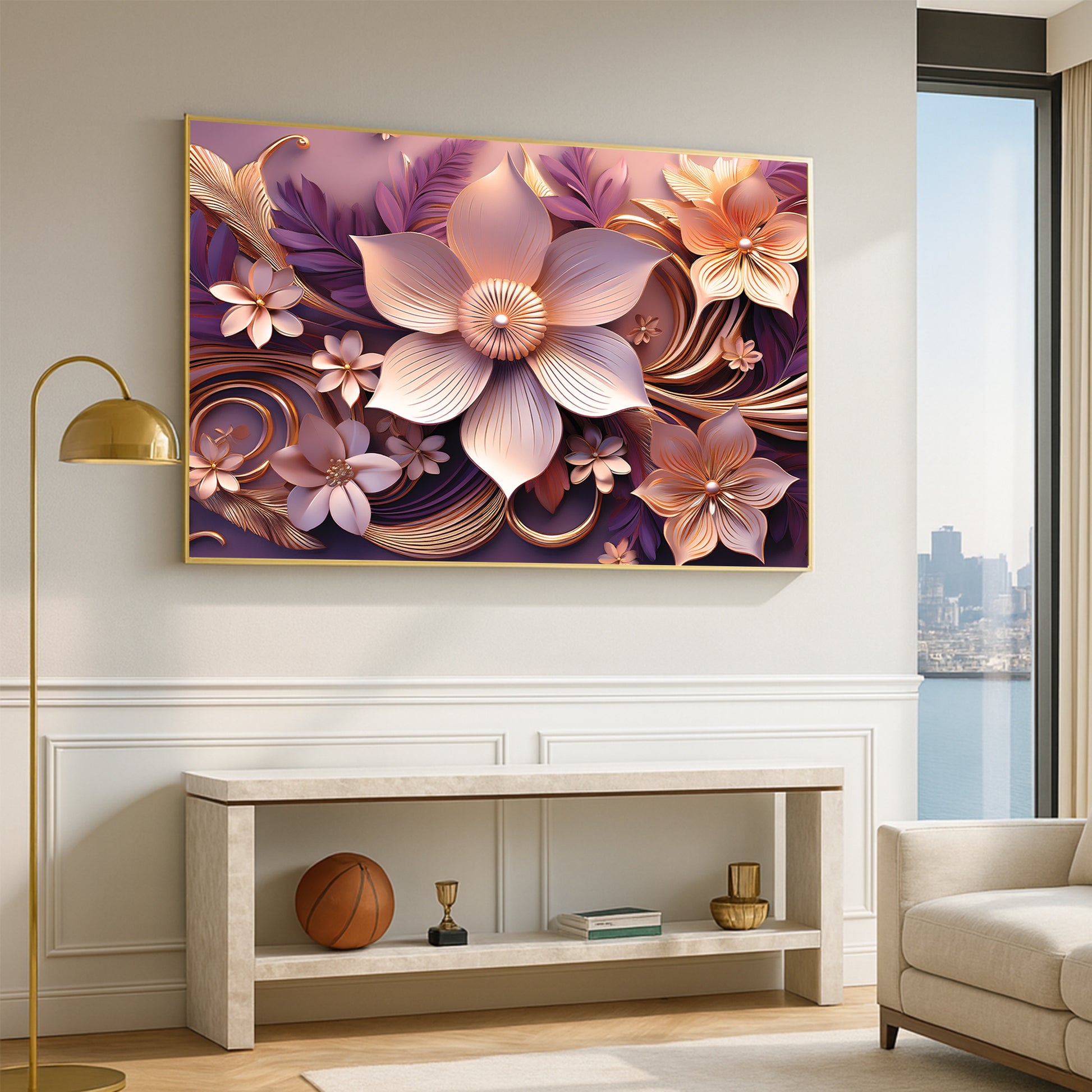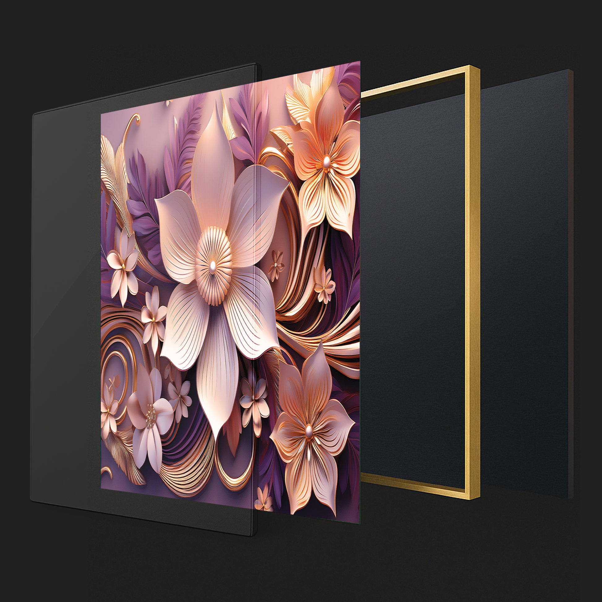 Add warmth and elegance to your home with this Light Pink & Purple Floral Metal Framed Wall Art. Featuring soft blush petals with golden highlights set against flowing purple accents, this piece radiates romance and modern luxury. The detailed metallic finish brings depth and sophistication, making it a versatile artwork for bedrooms, living rooms, or gallery-style walls.