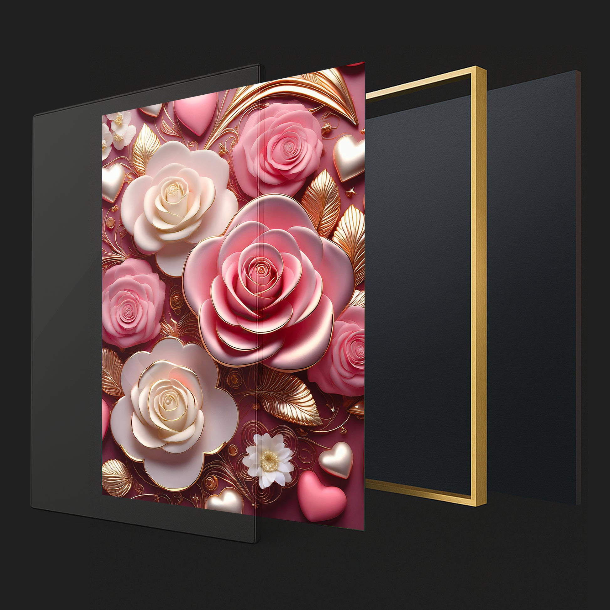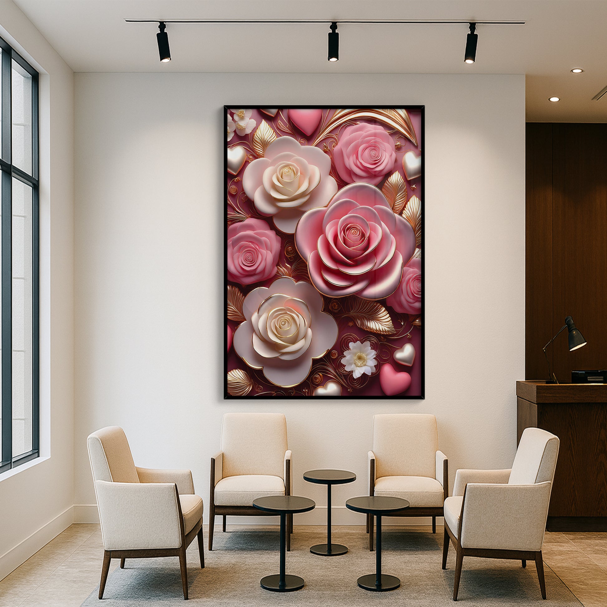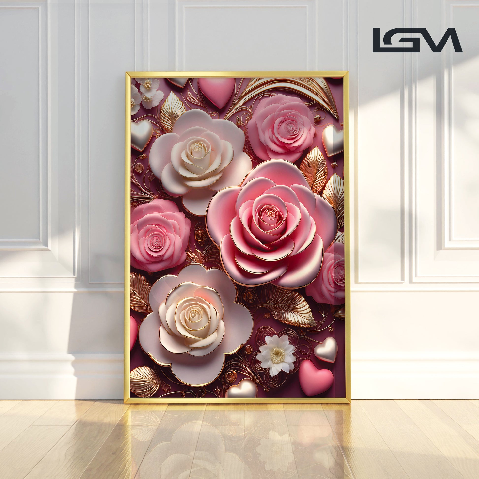 Celebrate timeless romance with this Pink & White Rose Metal Framed Wall Art. Featuring delicate pink and ivory roses accented with golden highlights, this artwork captures elegance and warmth in every detail. The soft color palette paired with metallic detailing creates a dreamy, luxurious finish perfect for bedrooms, living rooms, or gift-giving. Crafted with a sleek metal frame, it brings beauty and sophistication to any modern home.
