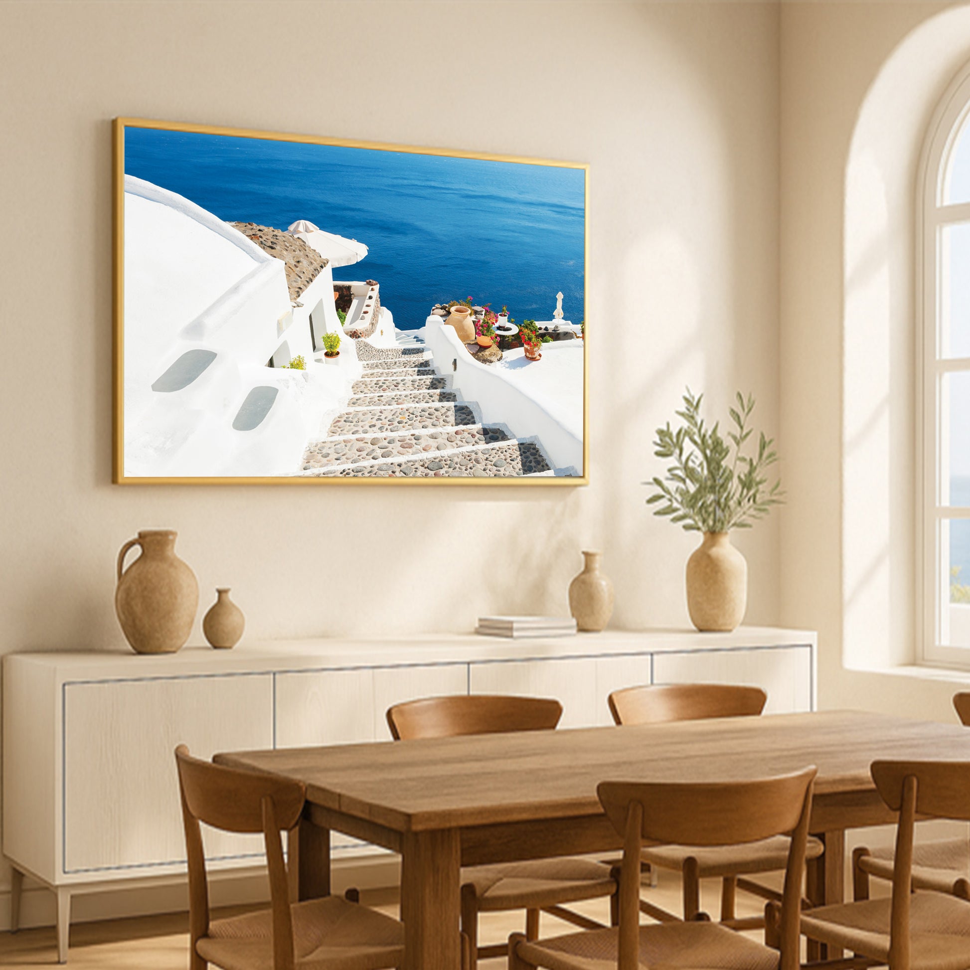 🛍️ Elevate your wall with Santorini’s sunlit serenity.