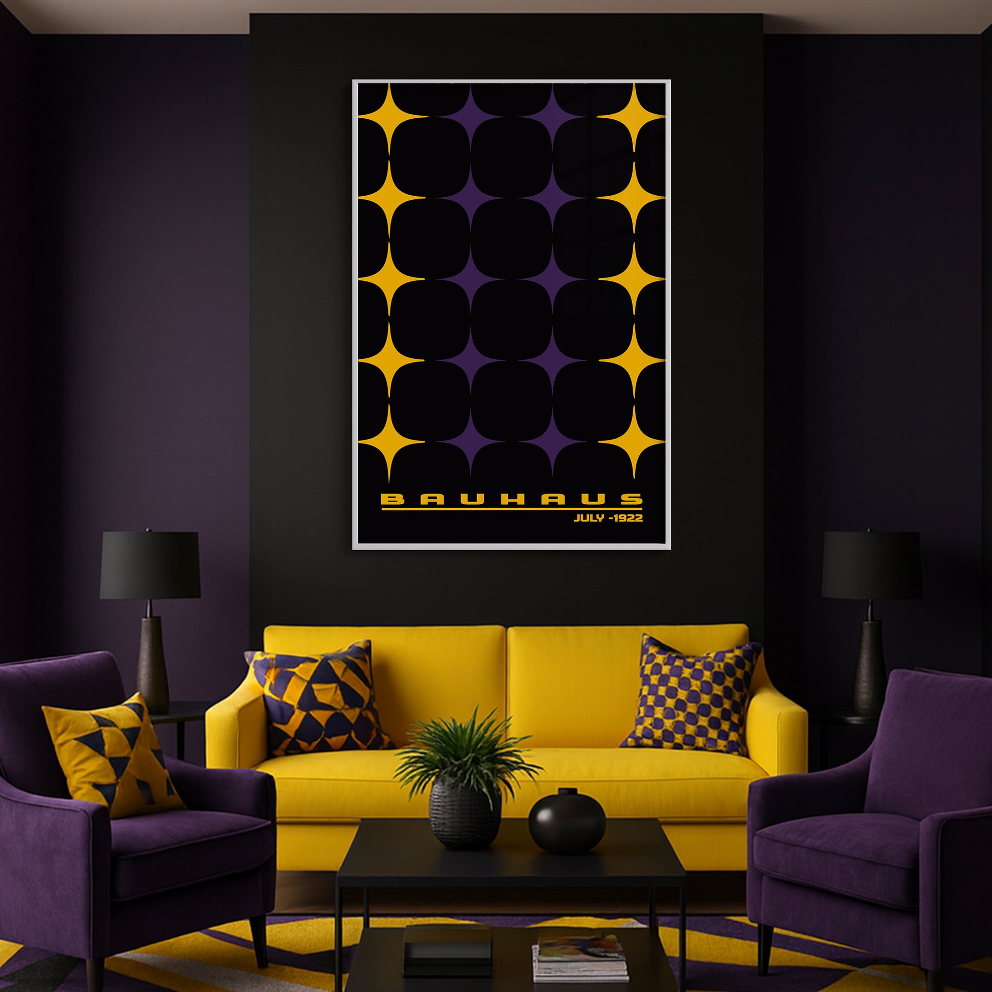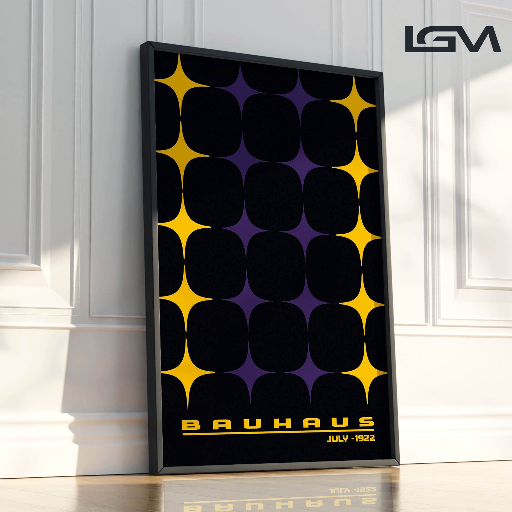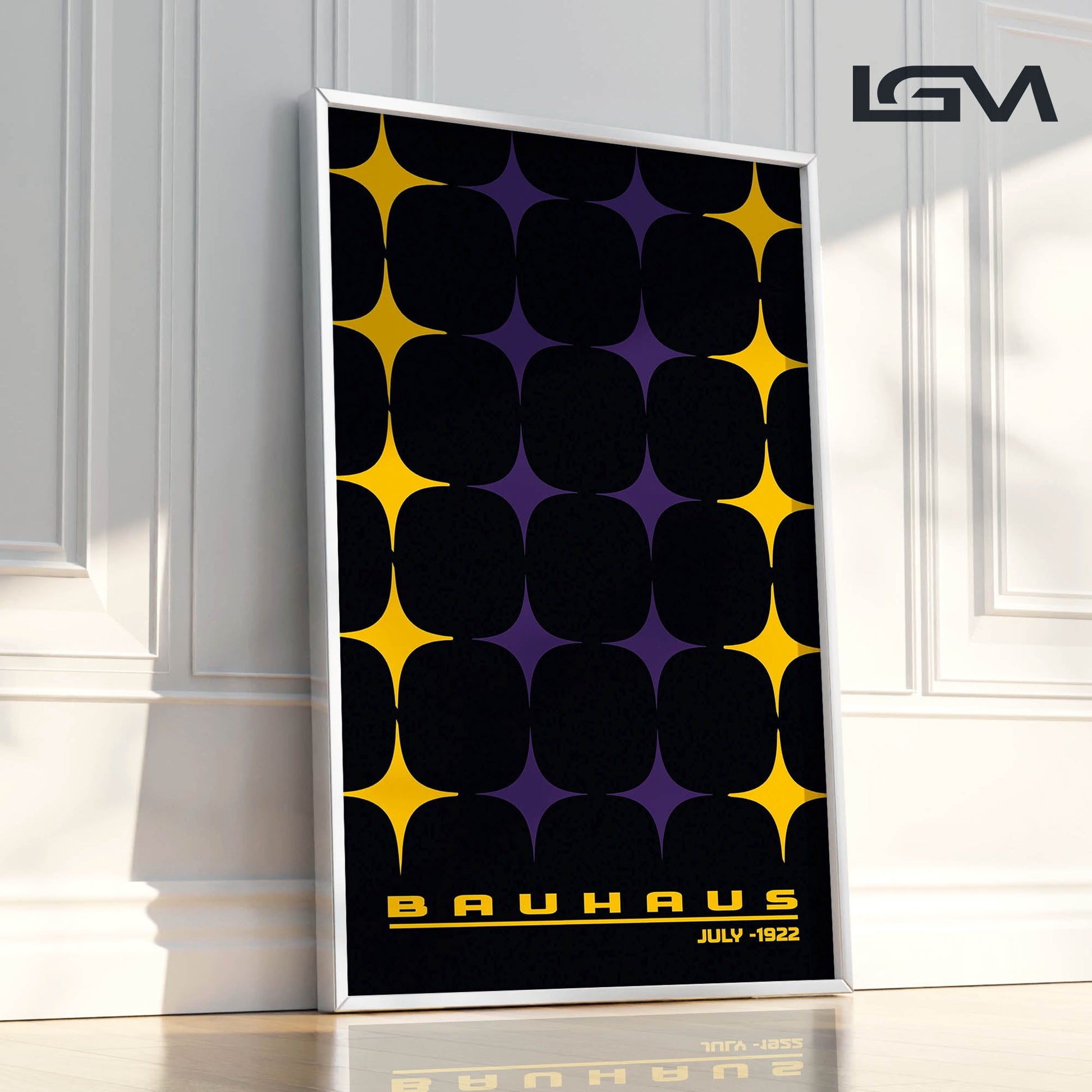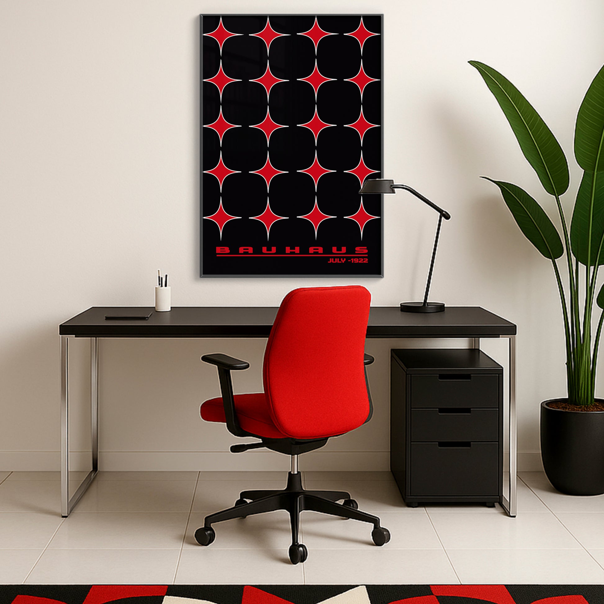 Bold and radiant, “Star-form Grid” is a tribute to the dynamic geometry of Bauhaus modernism. With its futuristic, radiating star shapes laid out in a perfect grid, this artwork creates instant visual impact—making it ideal for anyone drawn to retro-futuristic design or mid-century modern aesthetics.