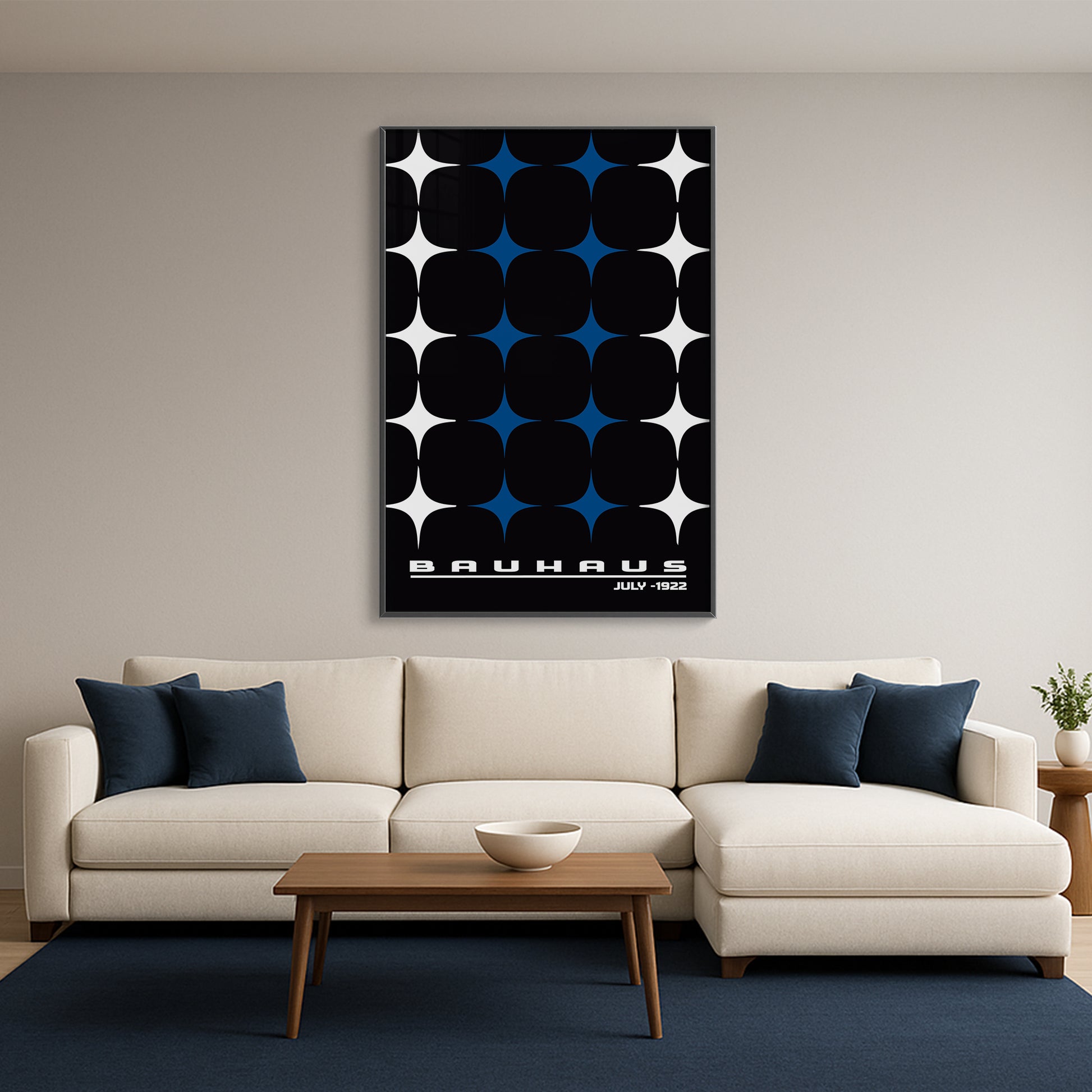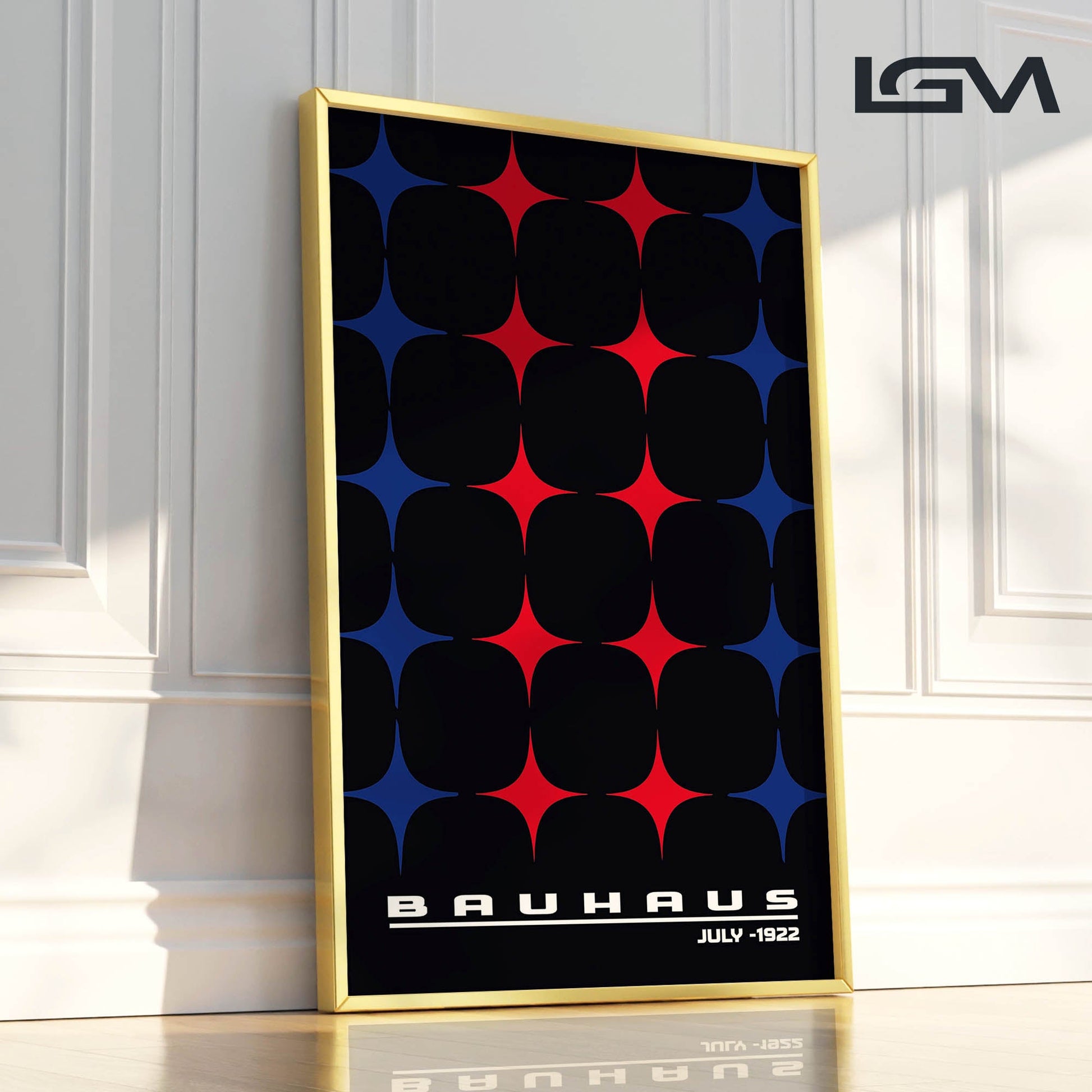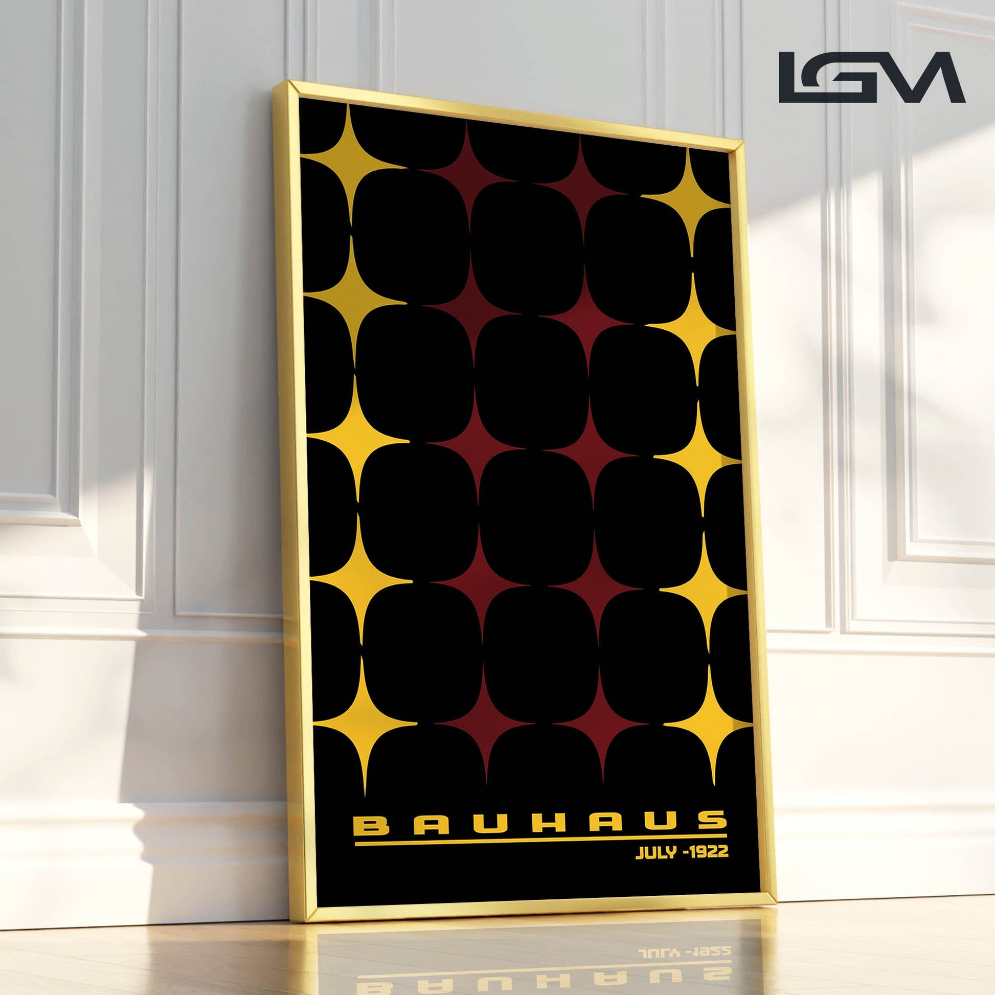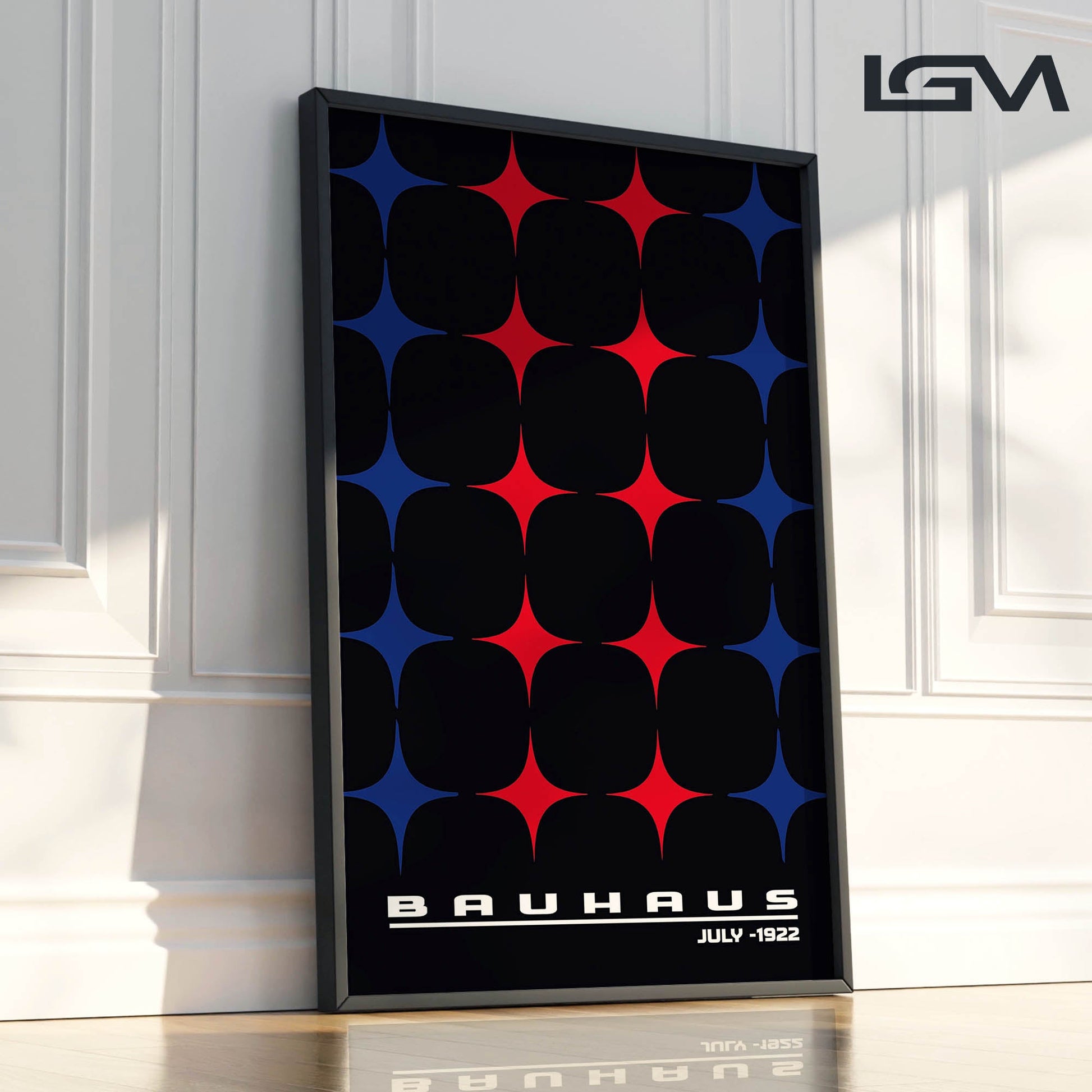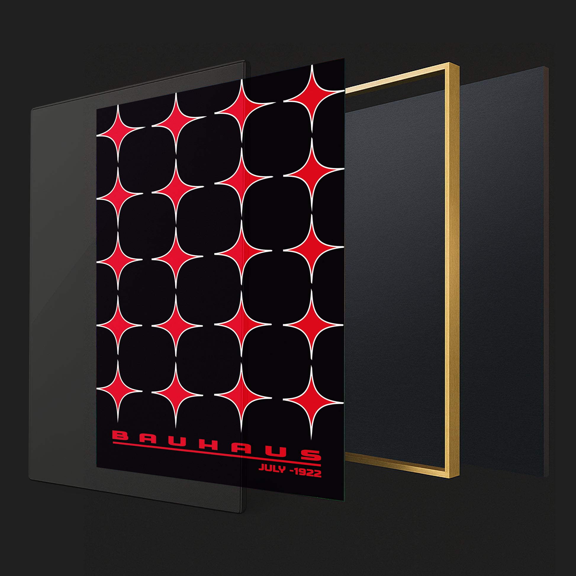 Bold and radiant, “Star-form Grid” is a tribute to the dynamic geometry of Bauhaus modernism. With its futuristic, radiating star shapes laid out in a perfect grid, this artwork creates instant visual impact—making it ideal for anyone drawn to retro-futuristic design or mid-century modern aesthetics.