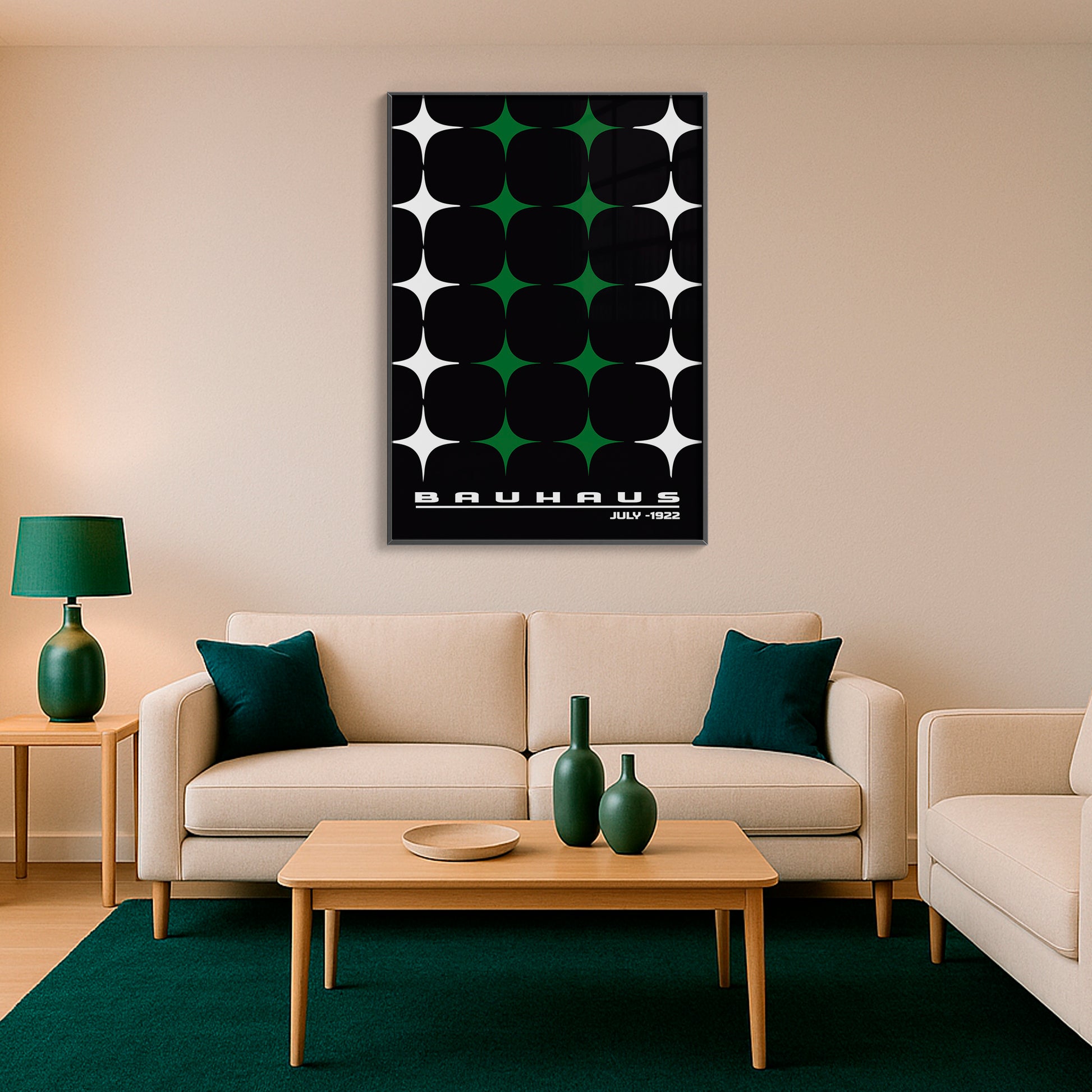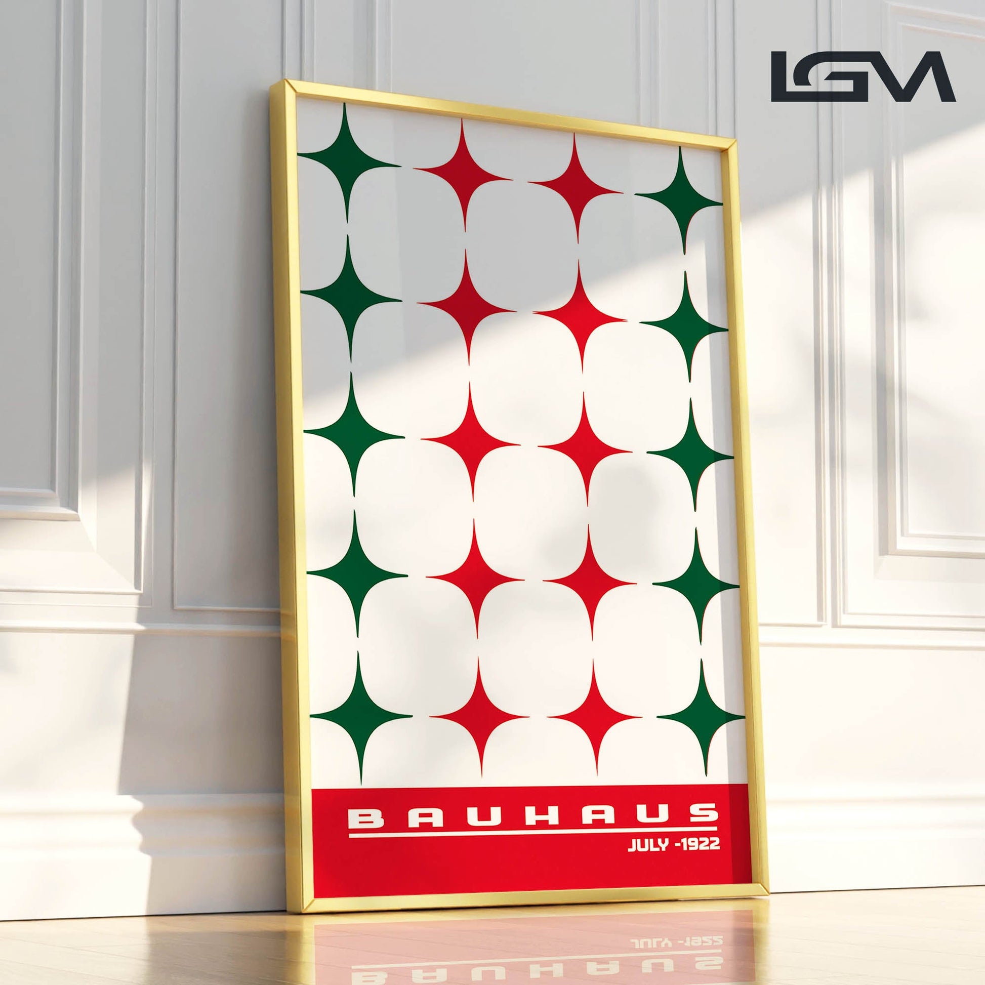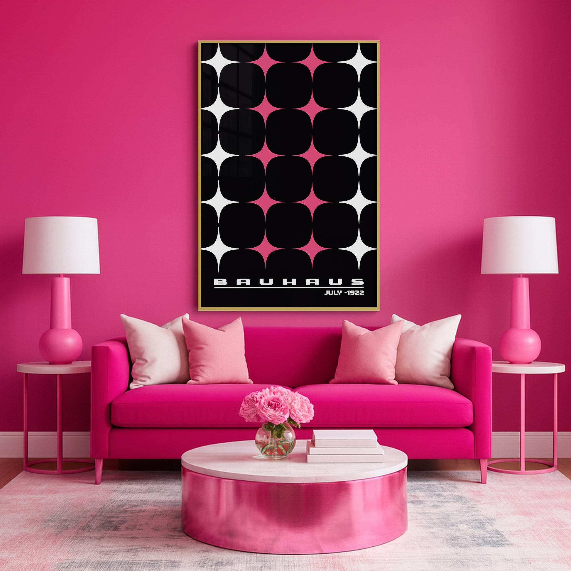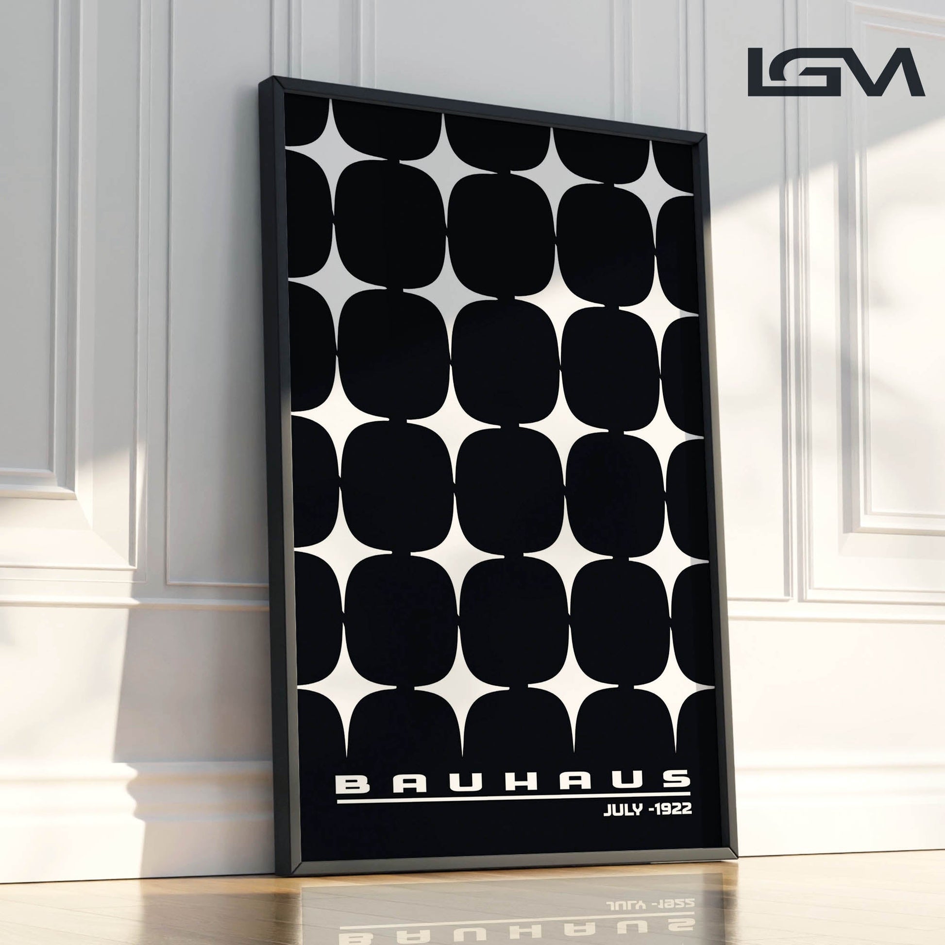 Bold and radiant, “Star-form Grid” is a tribute to the dynamic geometry of Bauhaus modernism. With its futuristic, radiating star shapes laid out in a perfect grid, this artwork creates instant visual impact—making it ideal for anyone drawn to retro-futuristic design or mid-century modern aesthetics.