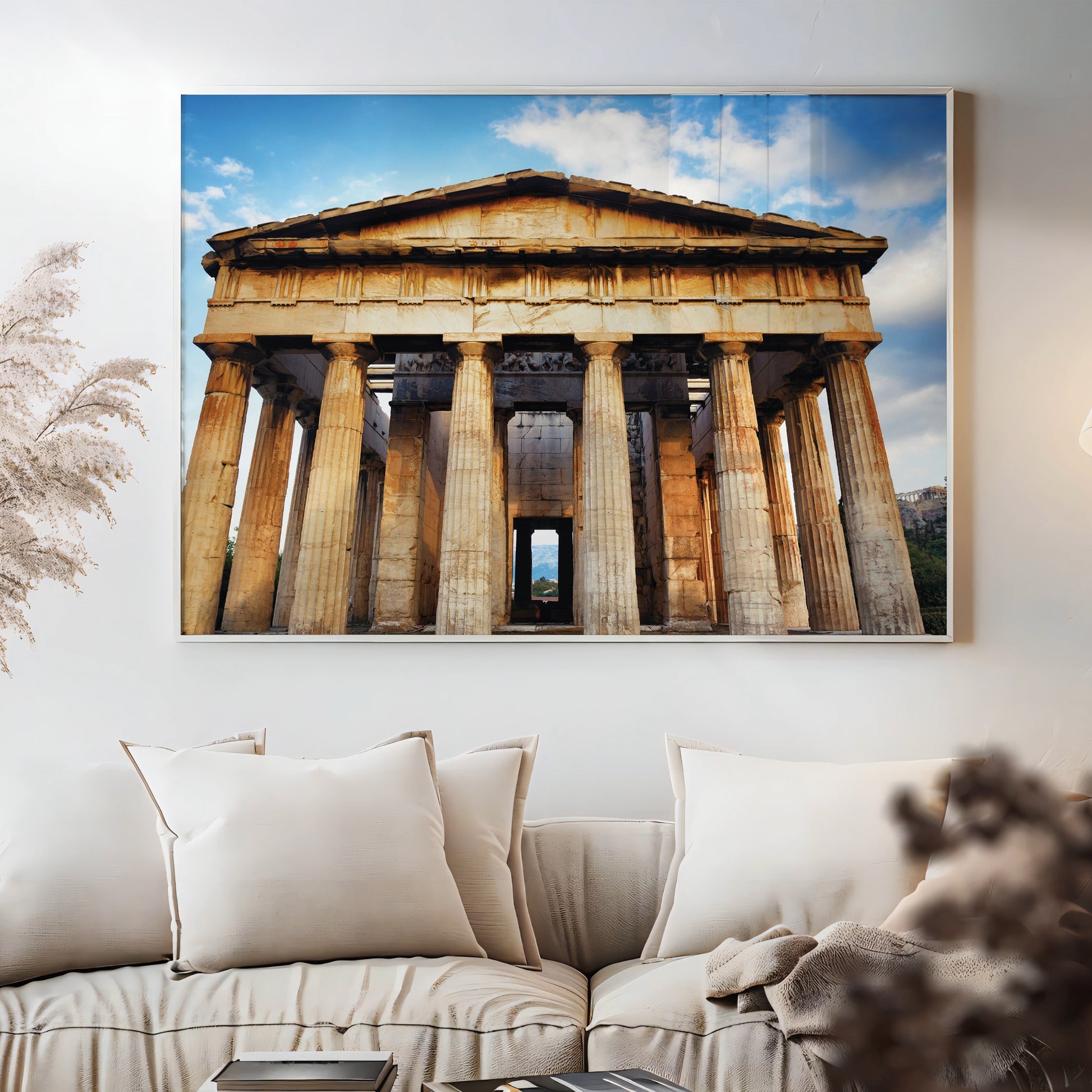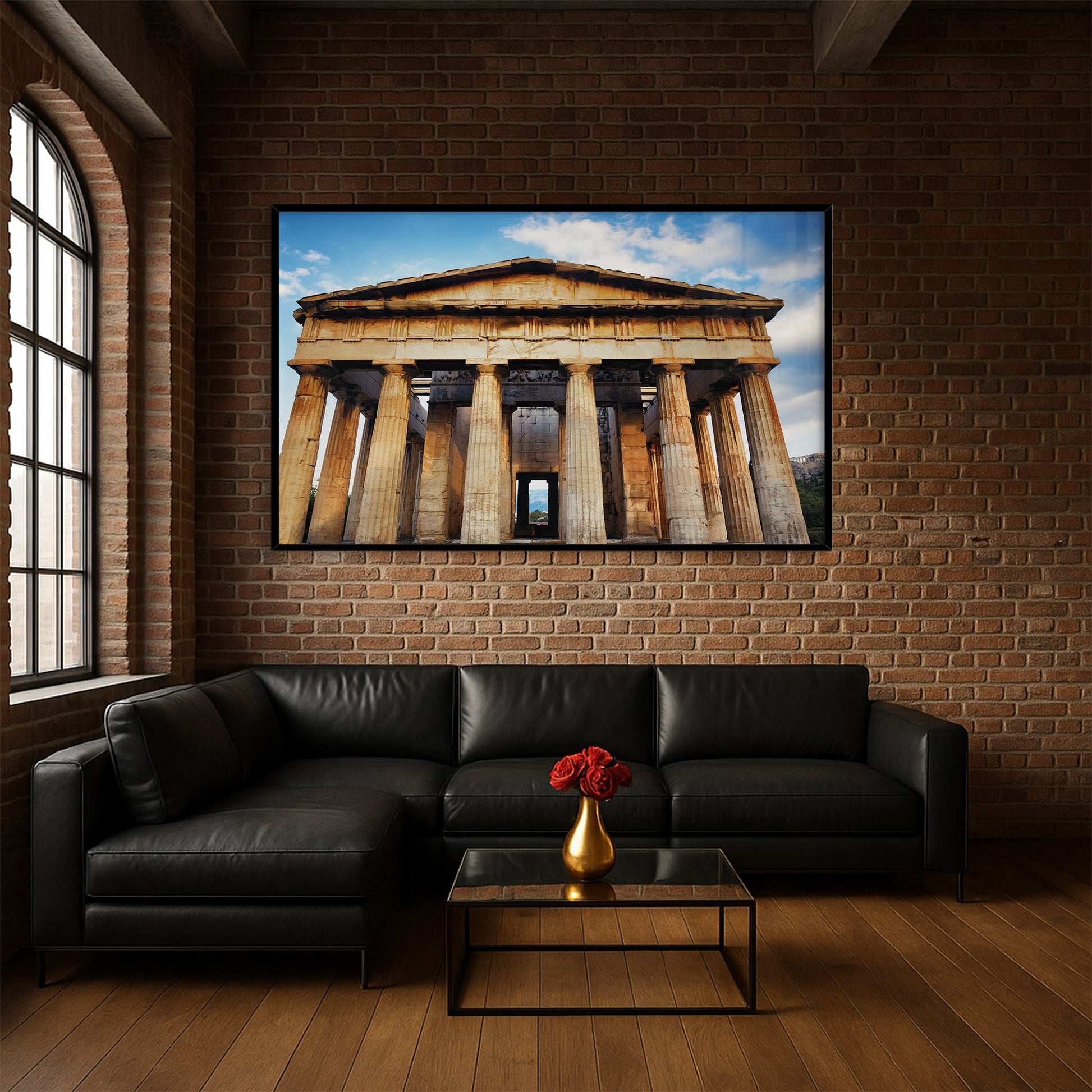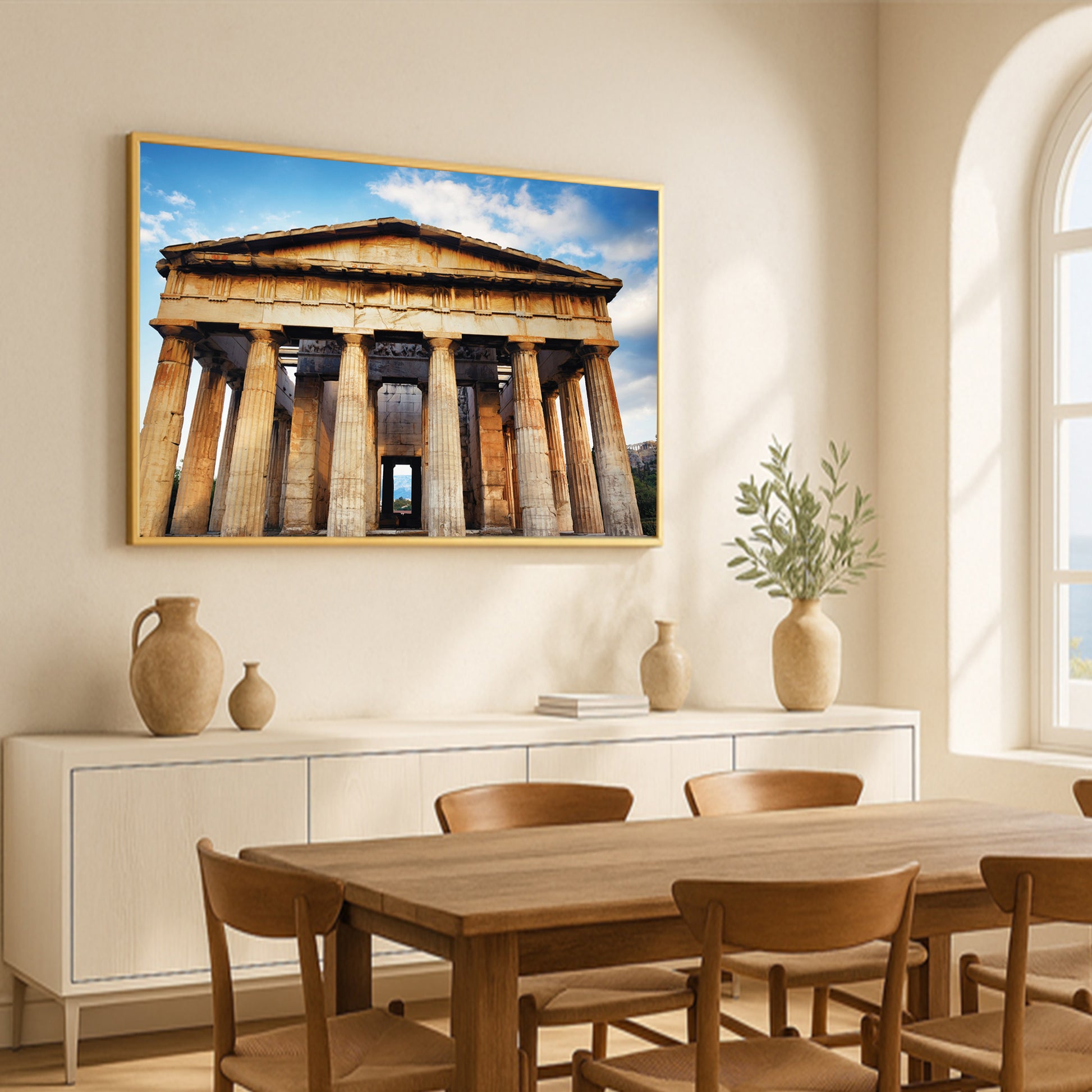 Transport yourself to the heart of classical Athens with this up-close view of the Temple of Hephaestus. A marvel of Doric design, this architectural relic represents strength, symmetry, and the enduring spirit of craftsmanship.