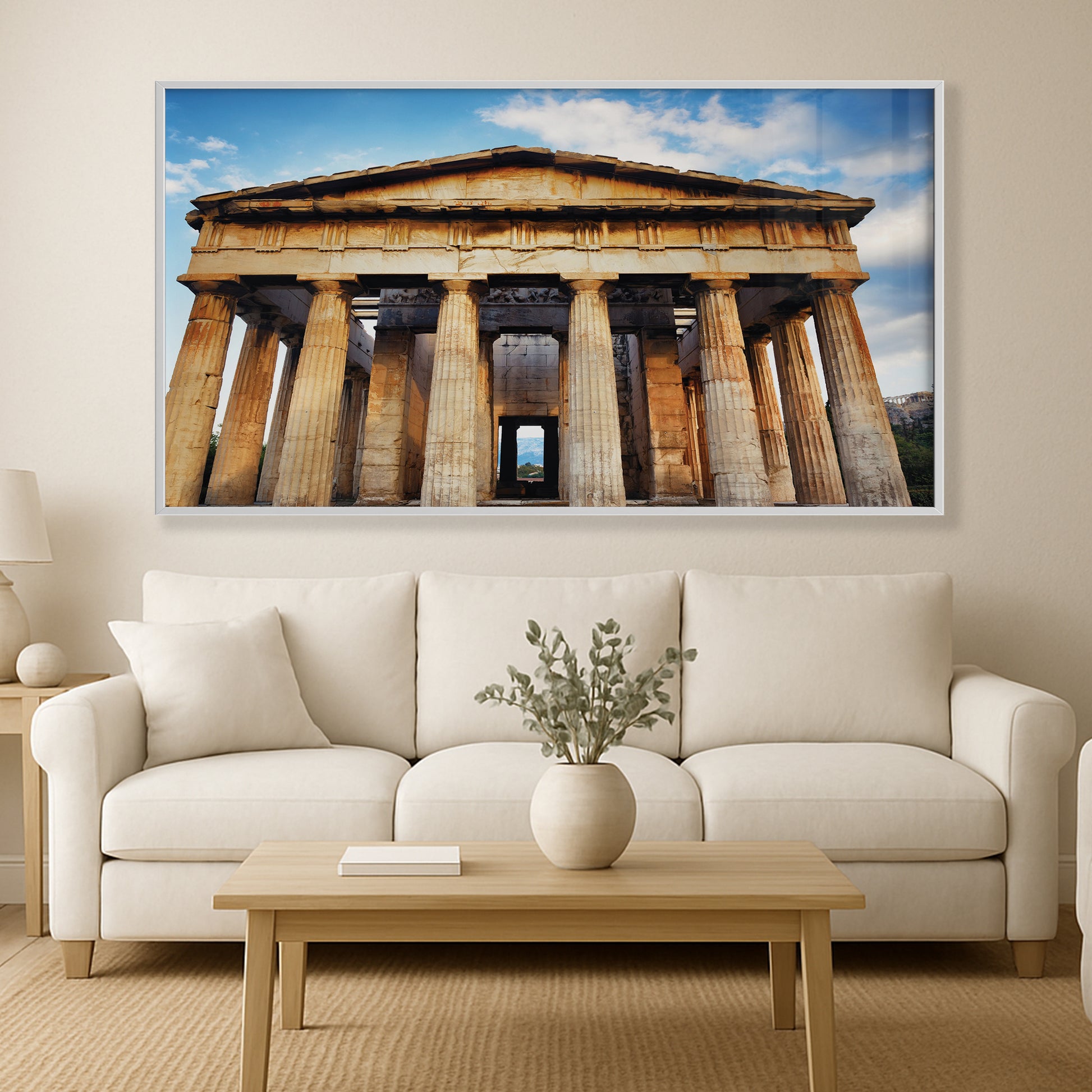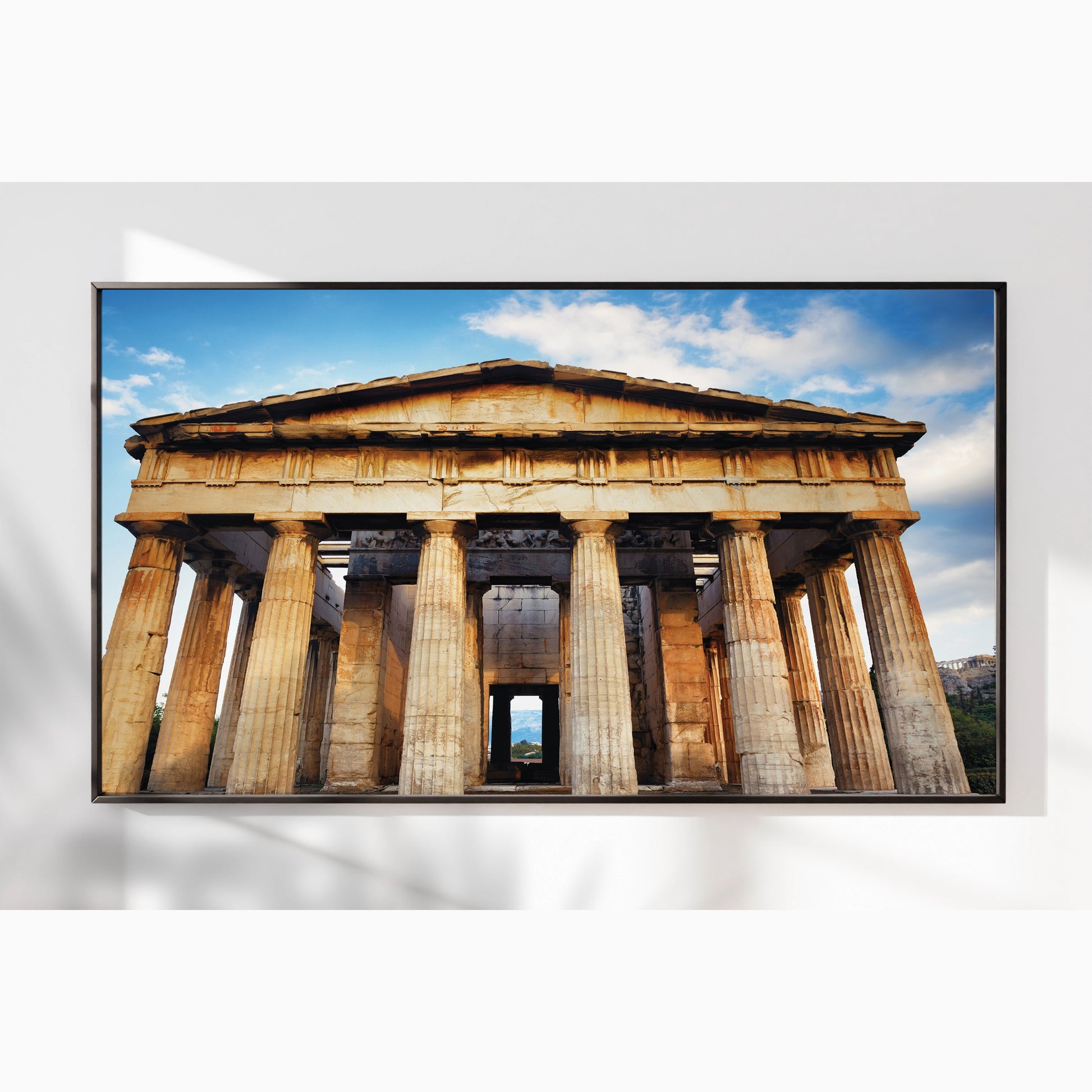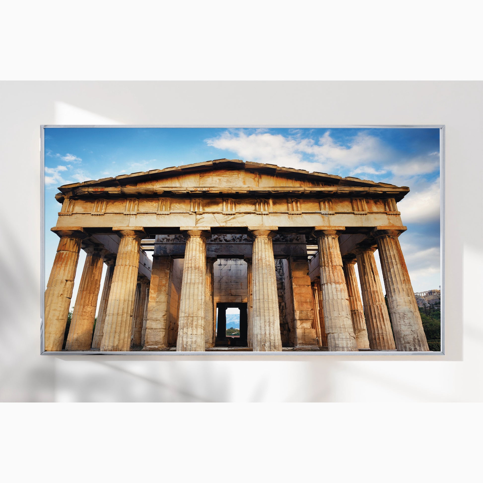 Transport yourself to the heart of classical Athens with this up-close view of the Temple of Hephaestus. A marvel of Doric design, this architectural relic represents strength, symmetry, and the enduring spirit of craftsmanship.