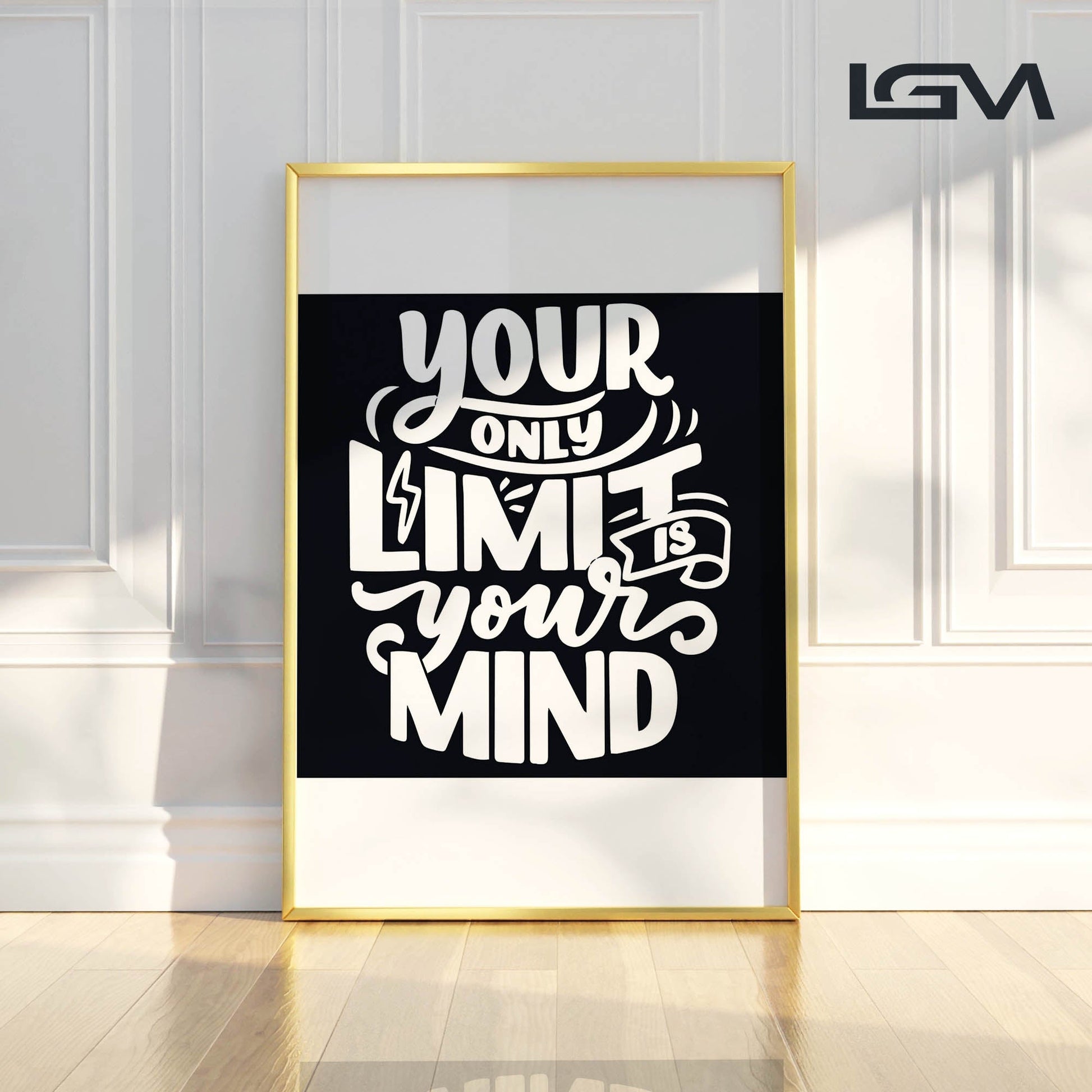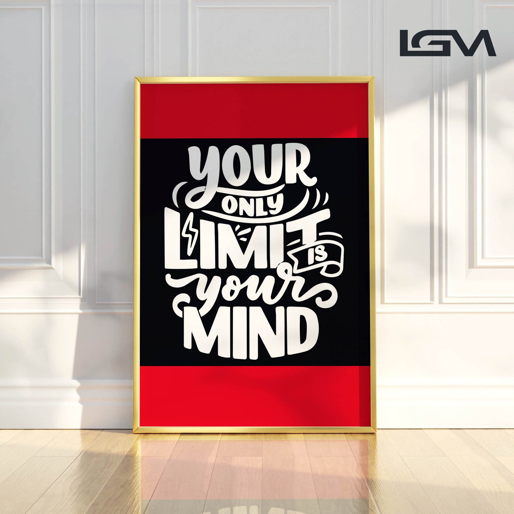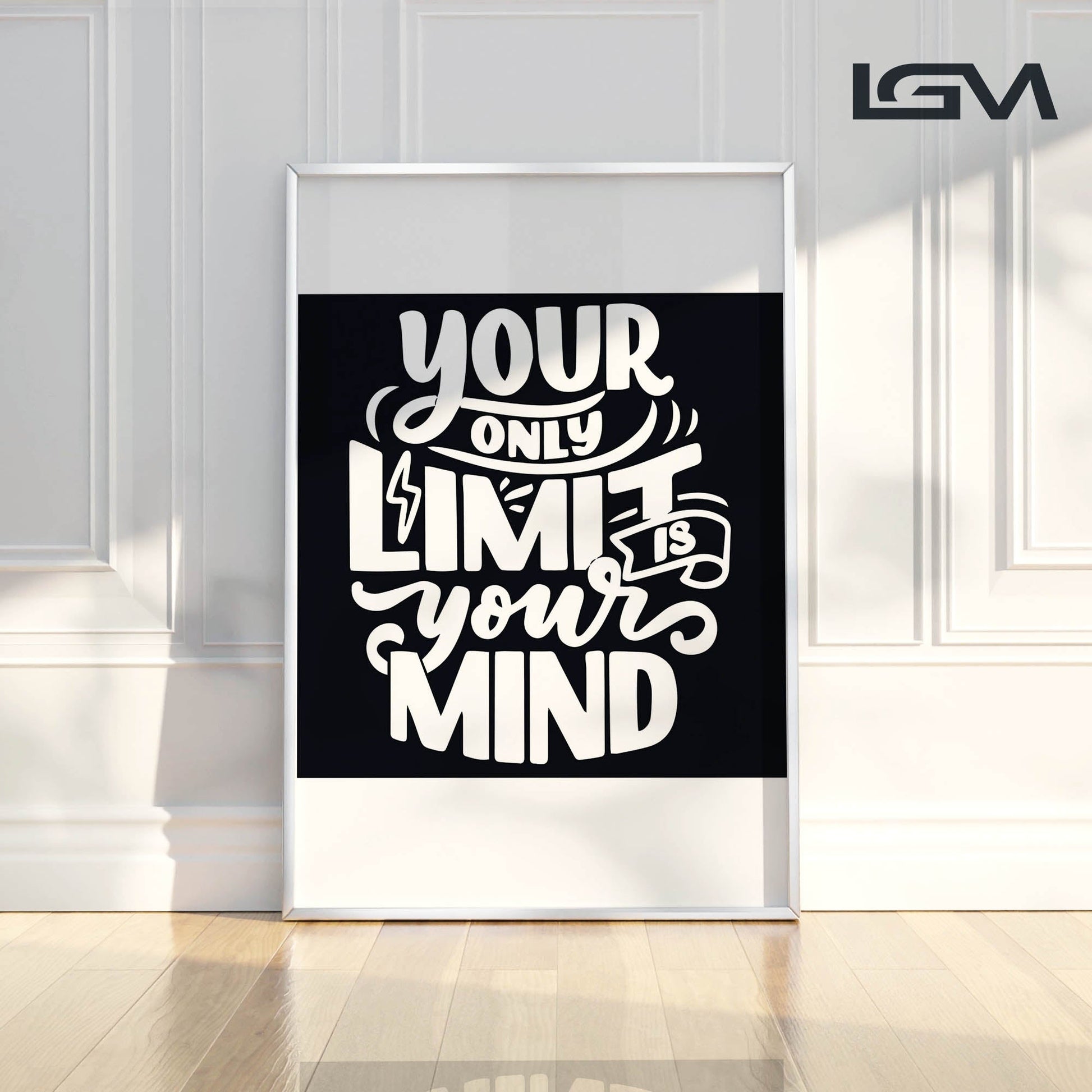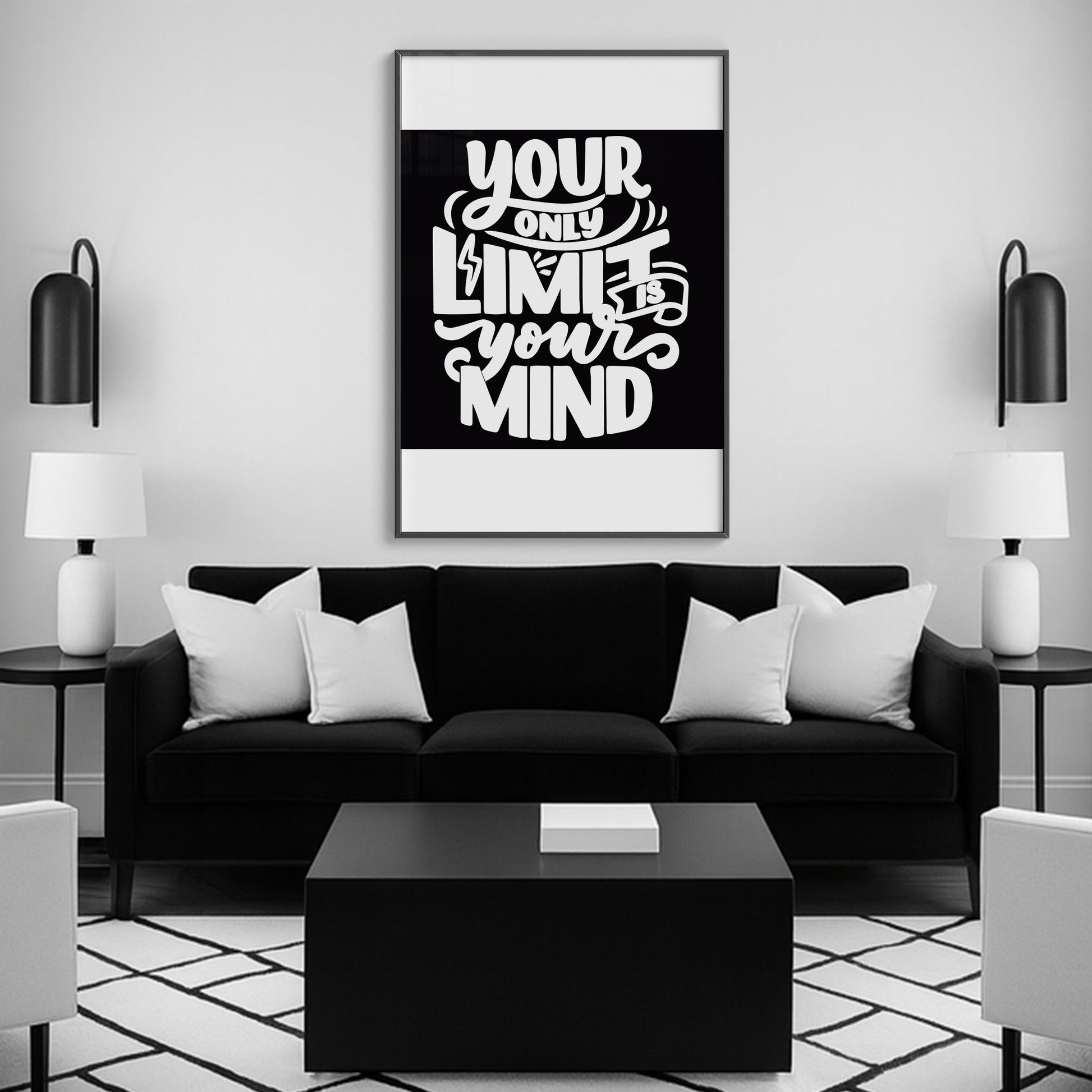 Push past boundaries with this bold statement piece. This powerful typography design is a constant reminder that success starts in the mind. A perfect visual for goal-setters and dreamers alike.