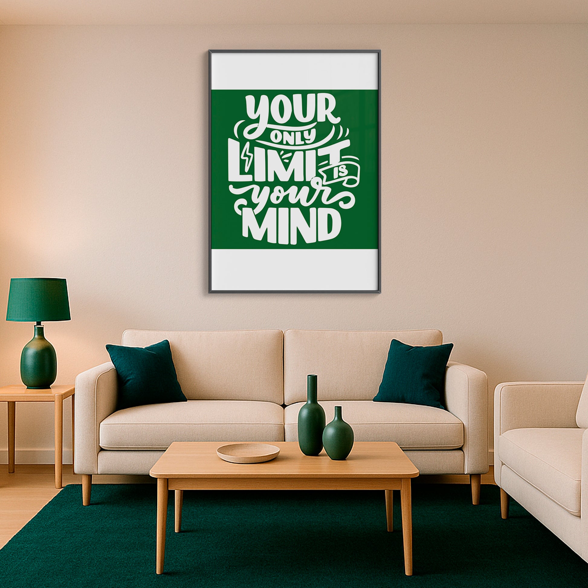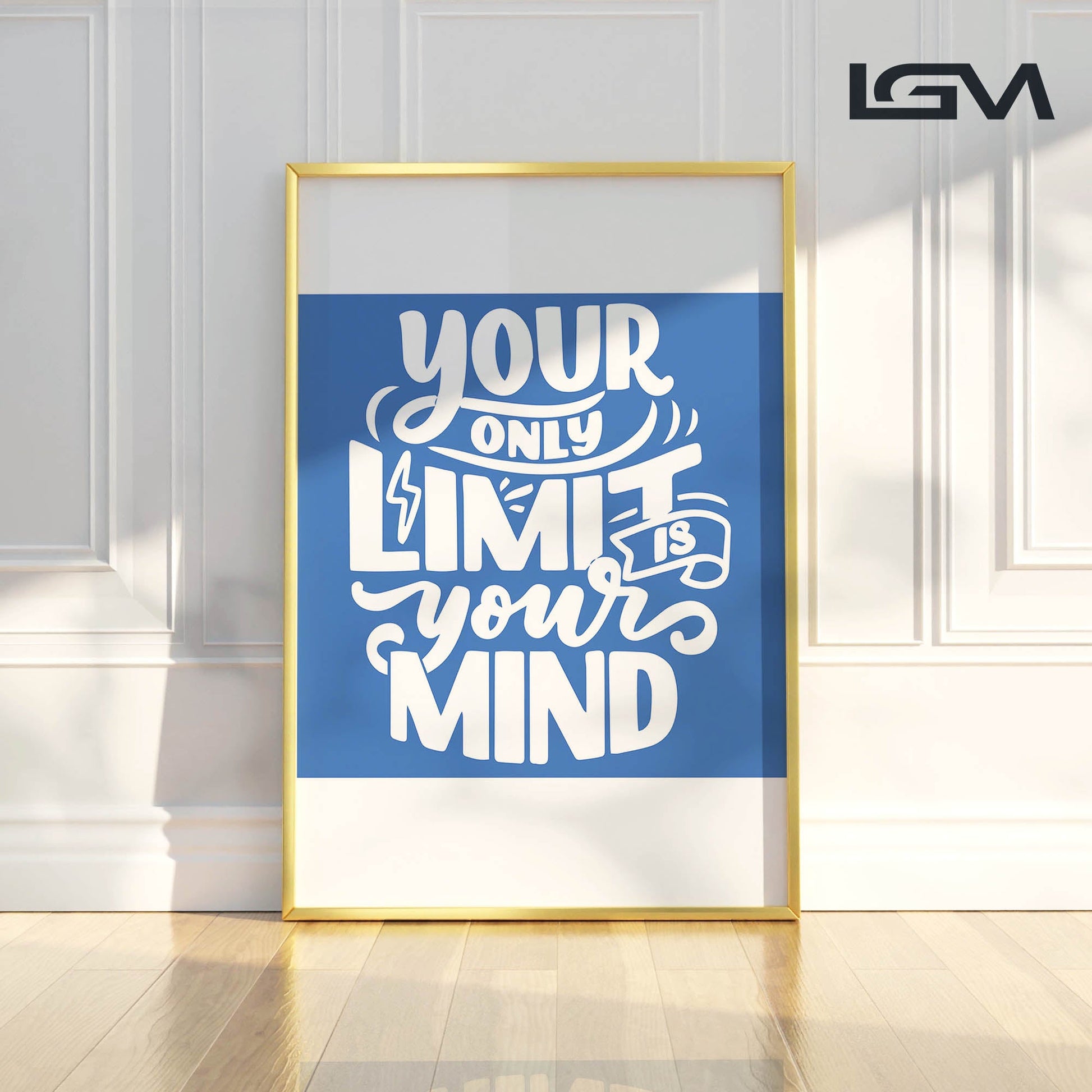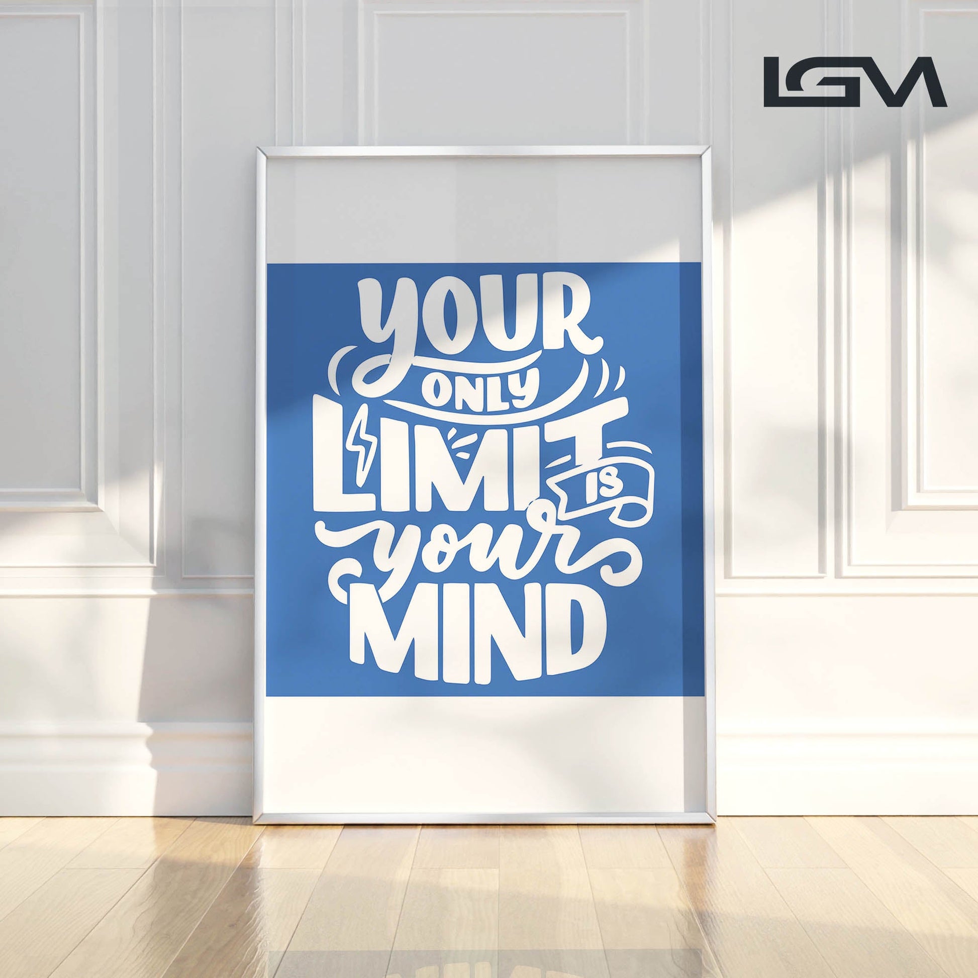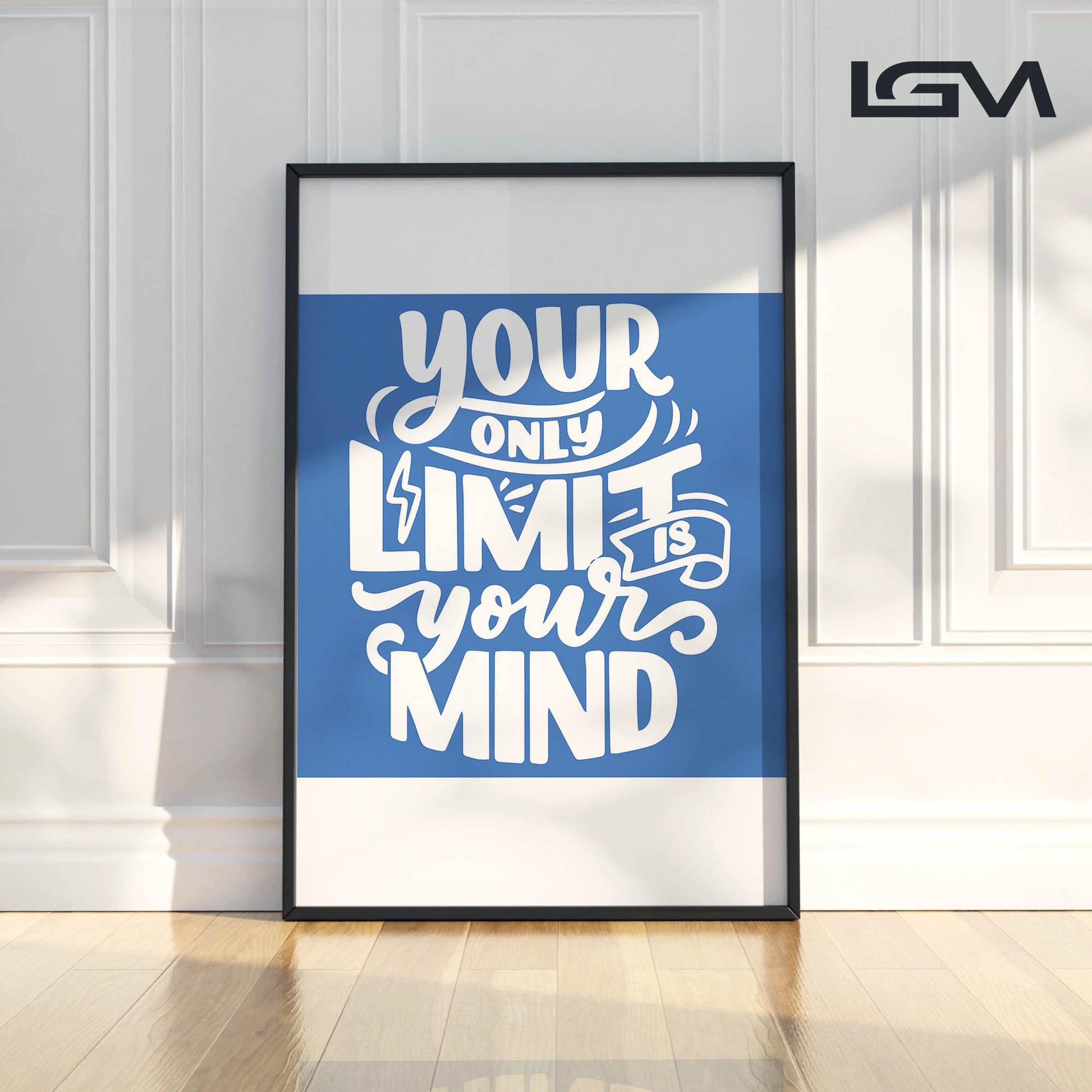 Push past boundaries with this bold statement piece. This powerful typography design is a constant reminder that success starts in the mind. A perfect visual for goal-setters and dreamers alike.