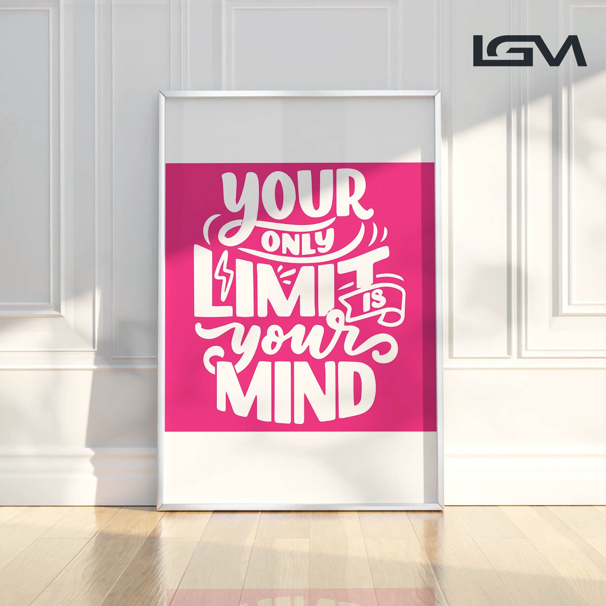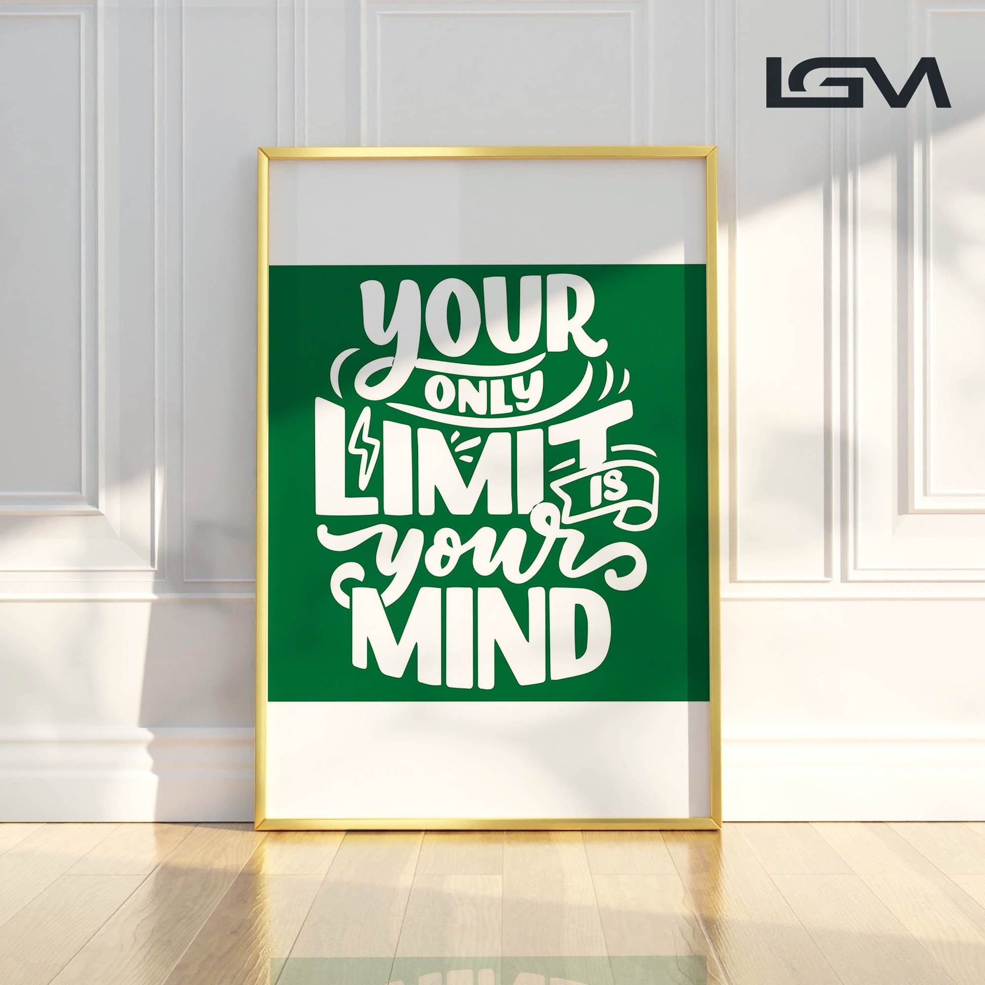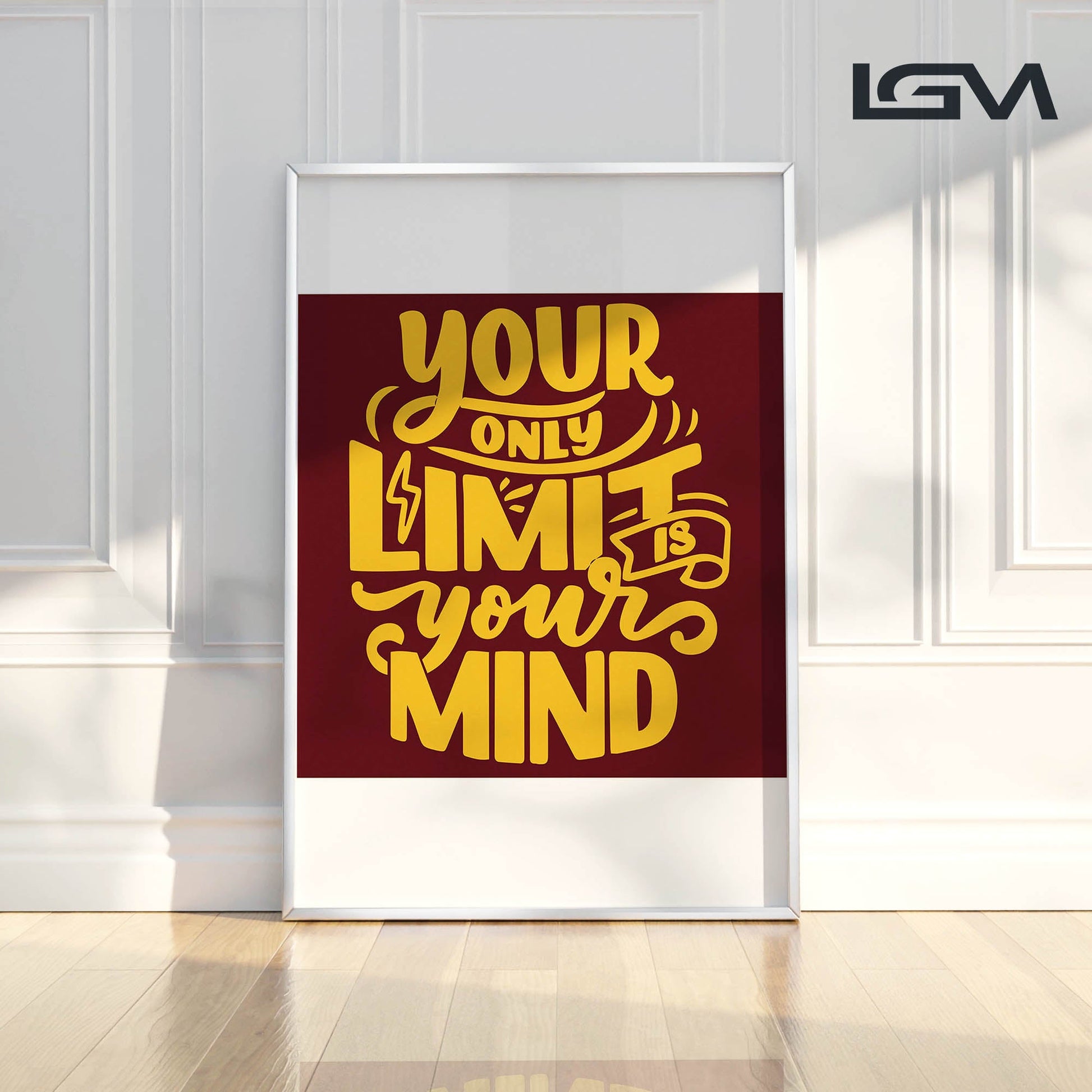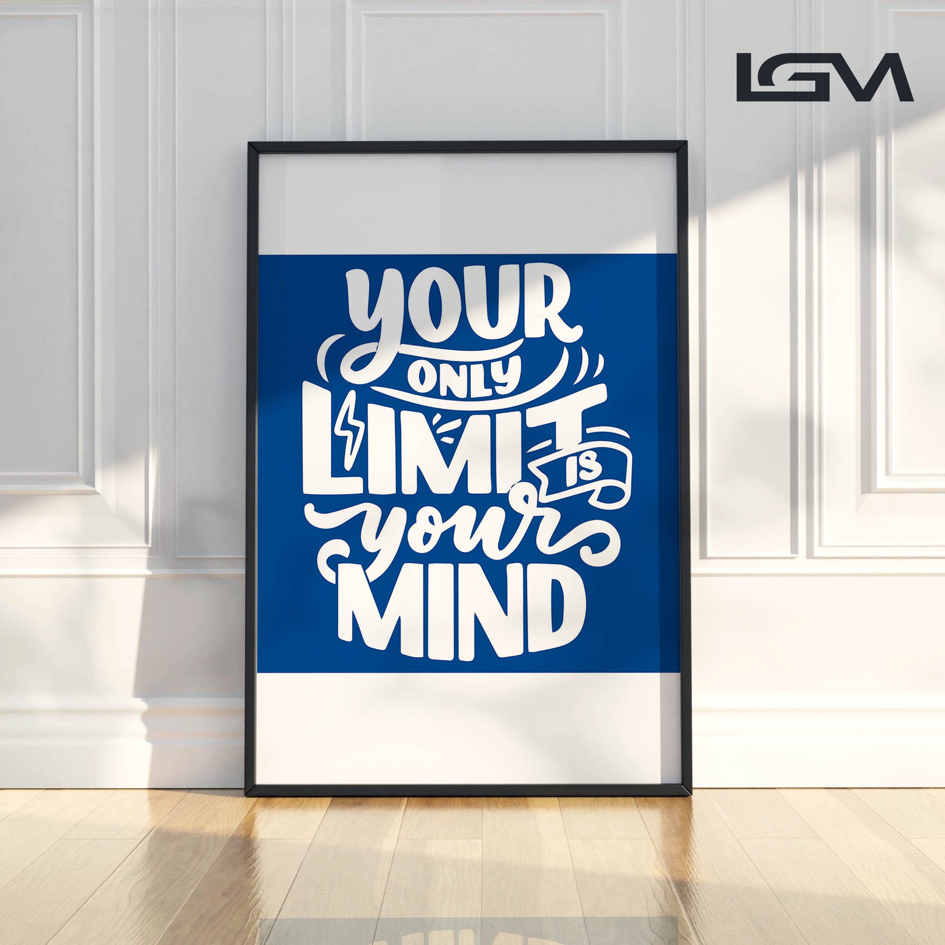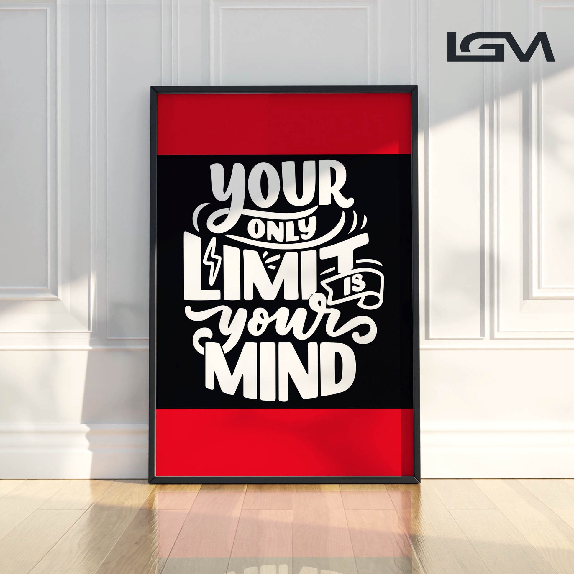 Push past boundaries with this bold statement piece. This powerful typography design is a constant reminder that success starts in the mind. A perfect visual for goal-setters and dreamers alike.