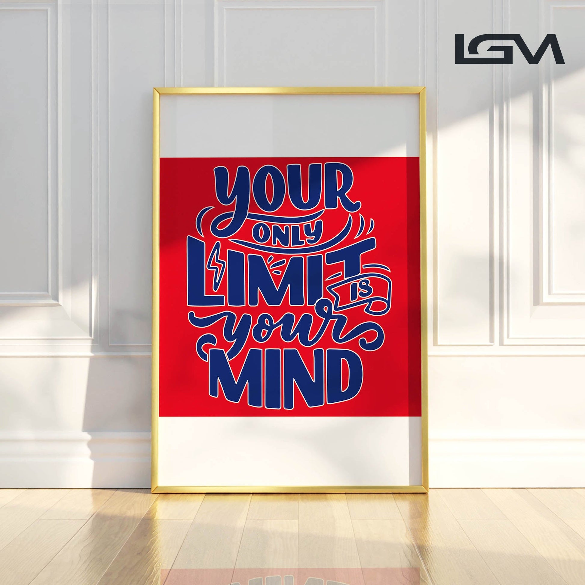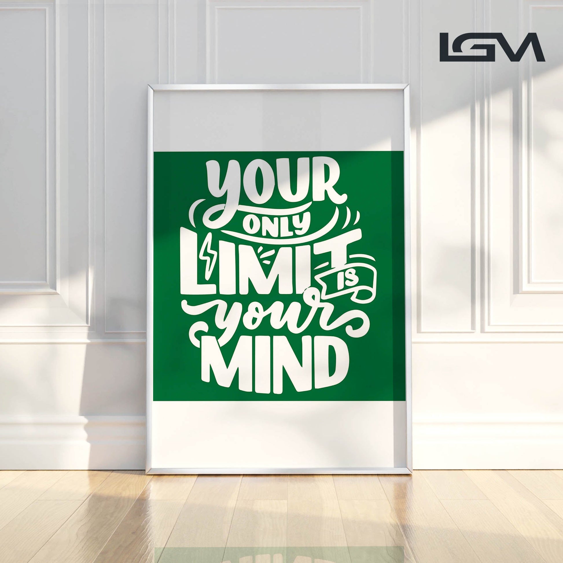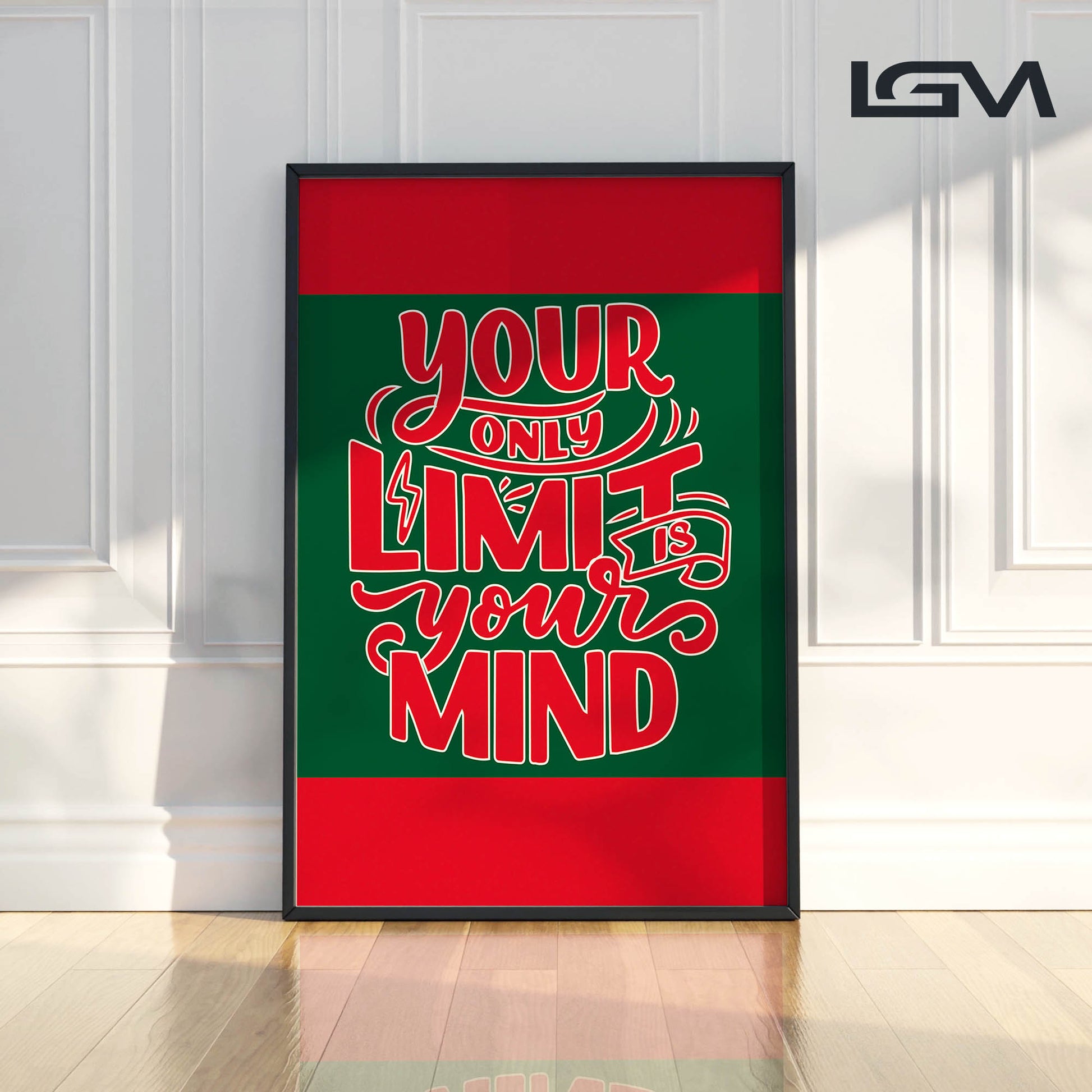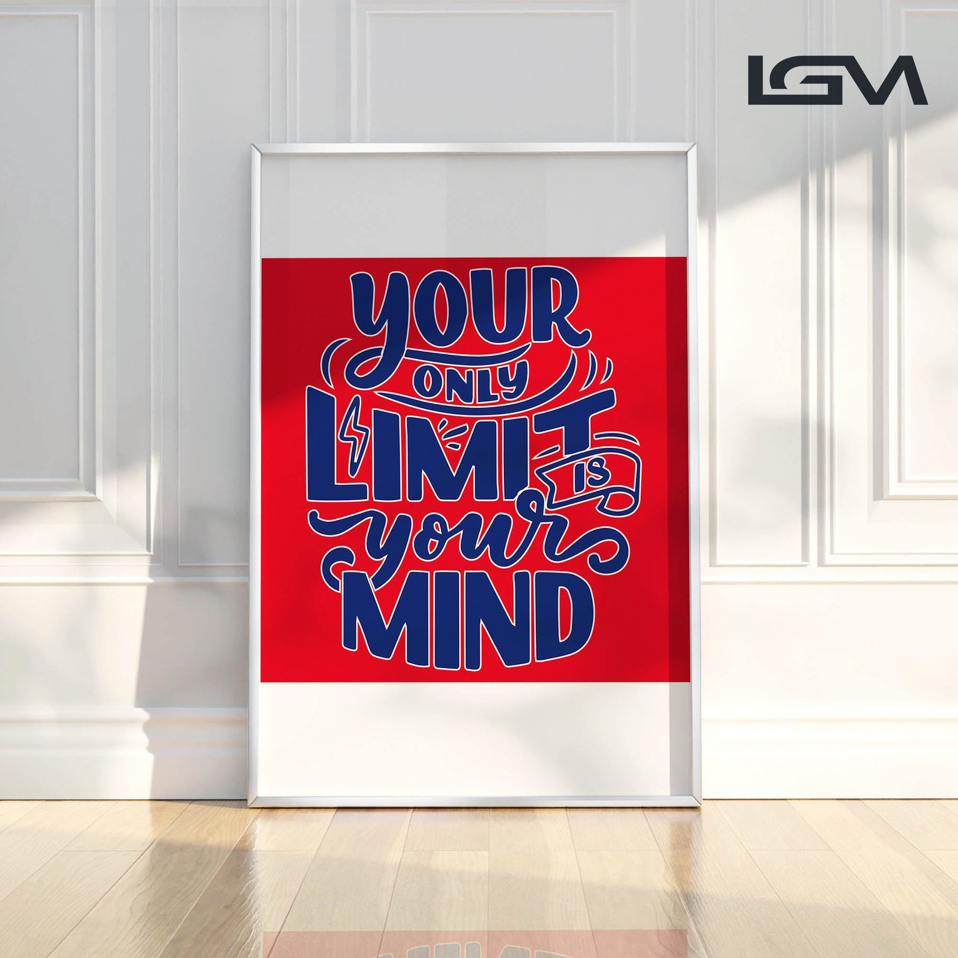 Push past boundaries with this bold statement piece. This powerful typography design is a constant reminder that success starts in the mind. A perfect visual for goal-setters and dreamers alike.
