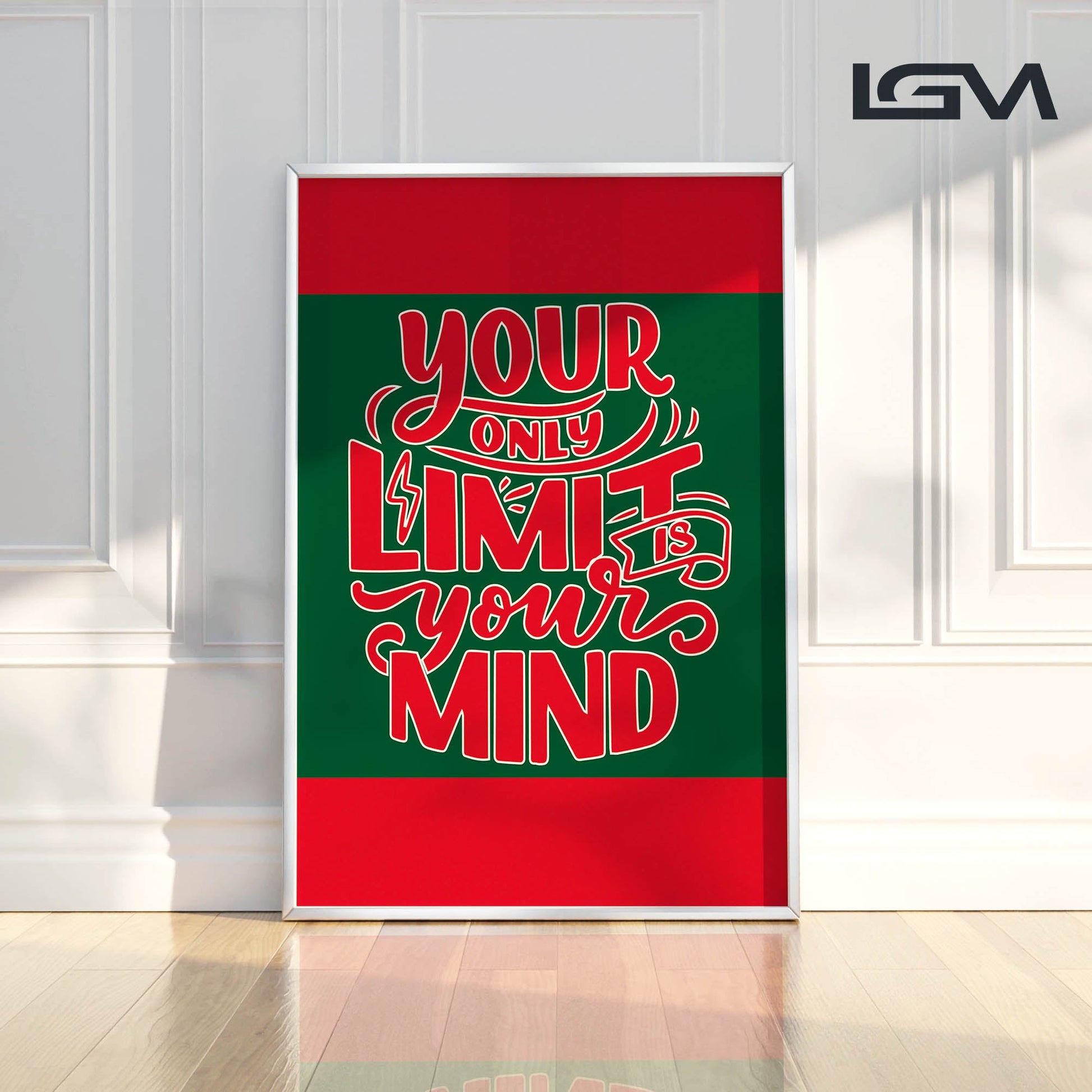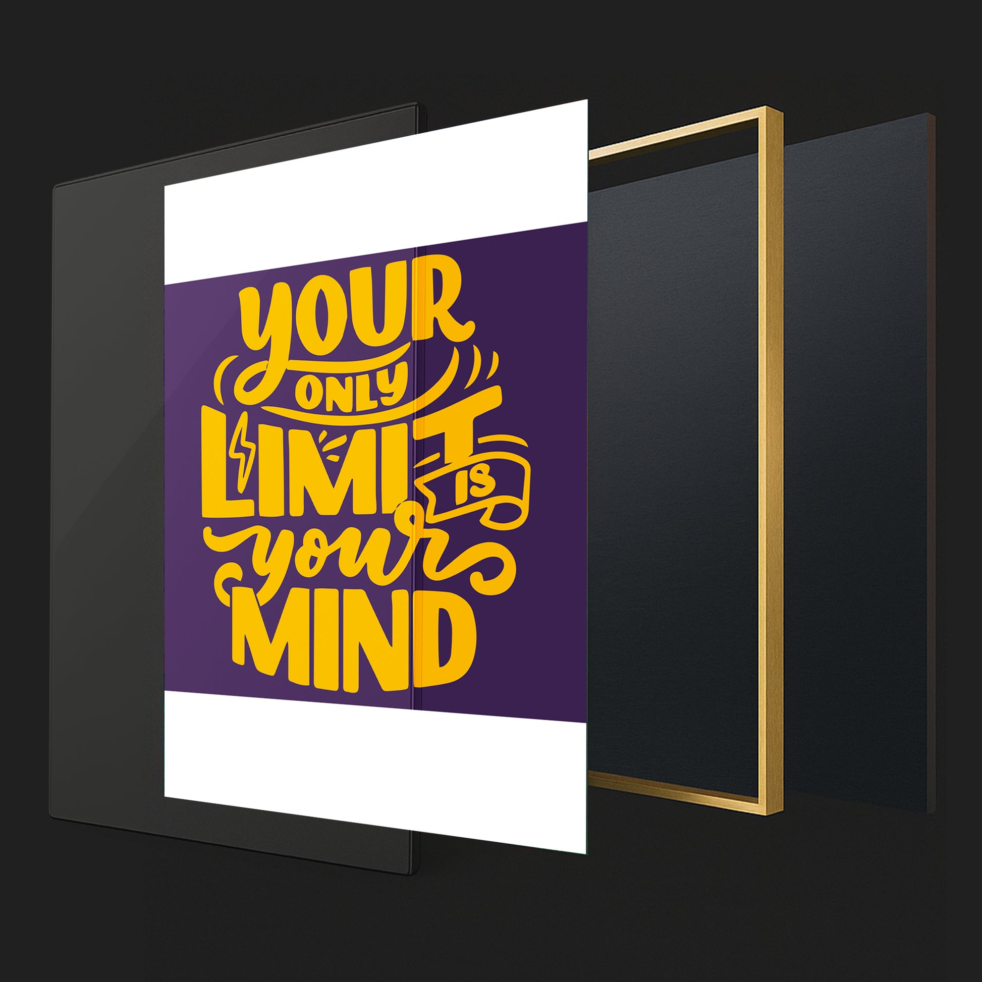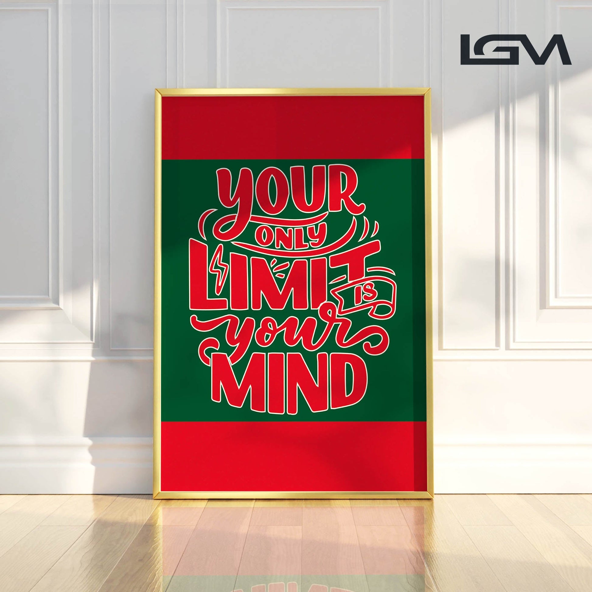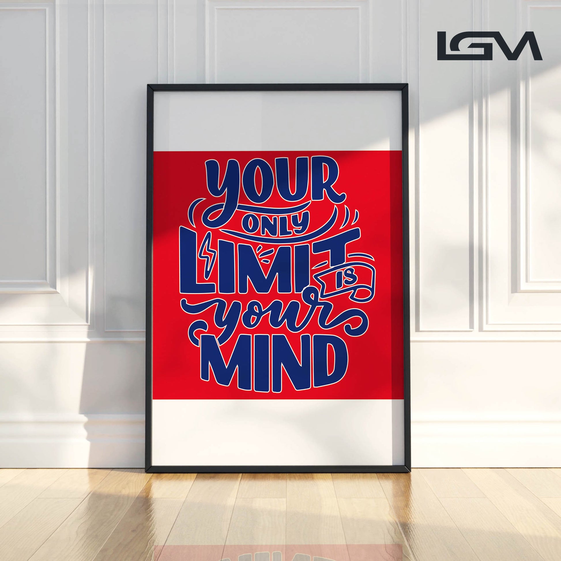 Push past boundaries with this bold statement piece. This powerful typography design is a constant reminder that success starts in the mind. A perfect visual for goal-setters and dreamers alike.